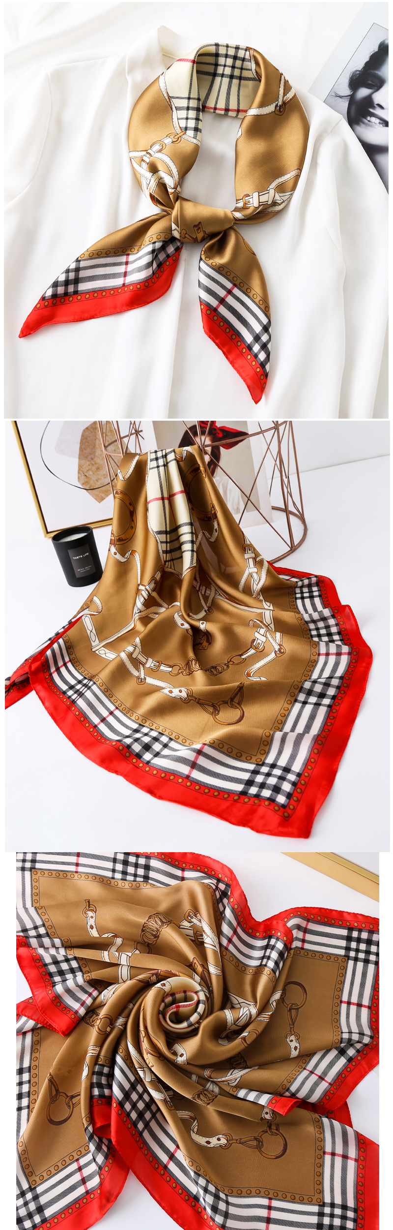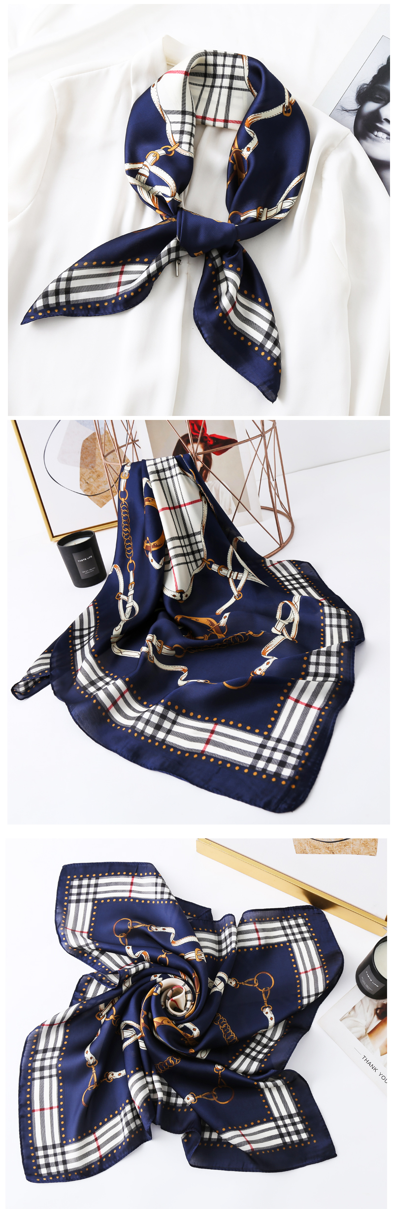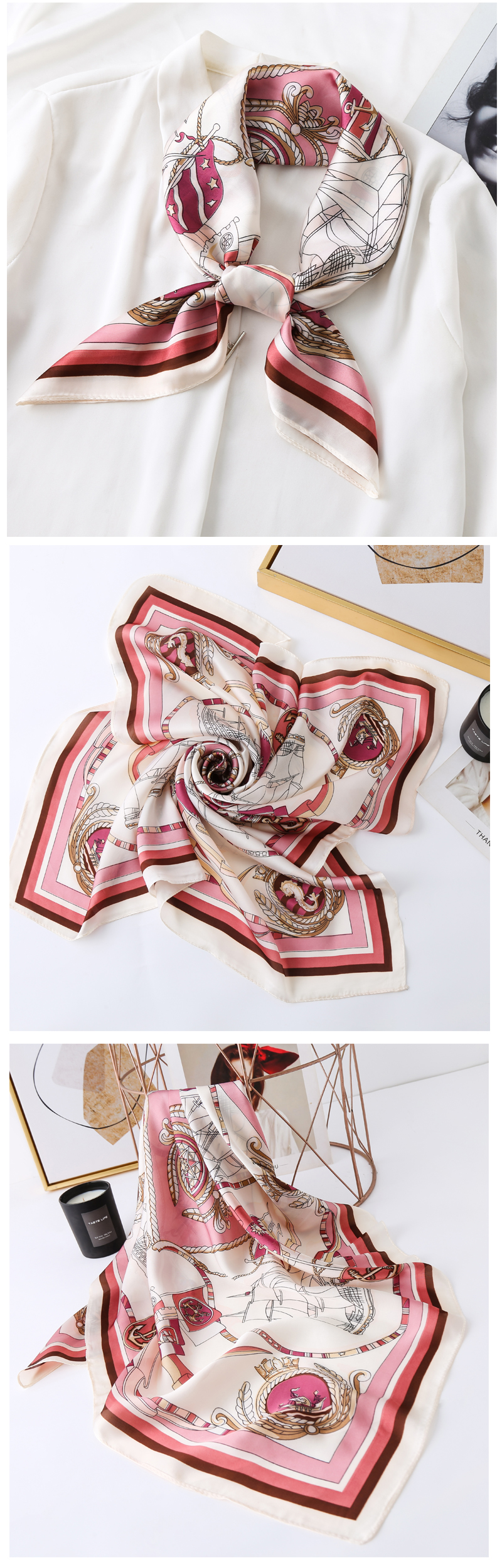 High-end decorative silk scarf, versatile spring and autumn new style 2025 summer small square scarf, women's scarf, thin, long, fashionable