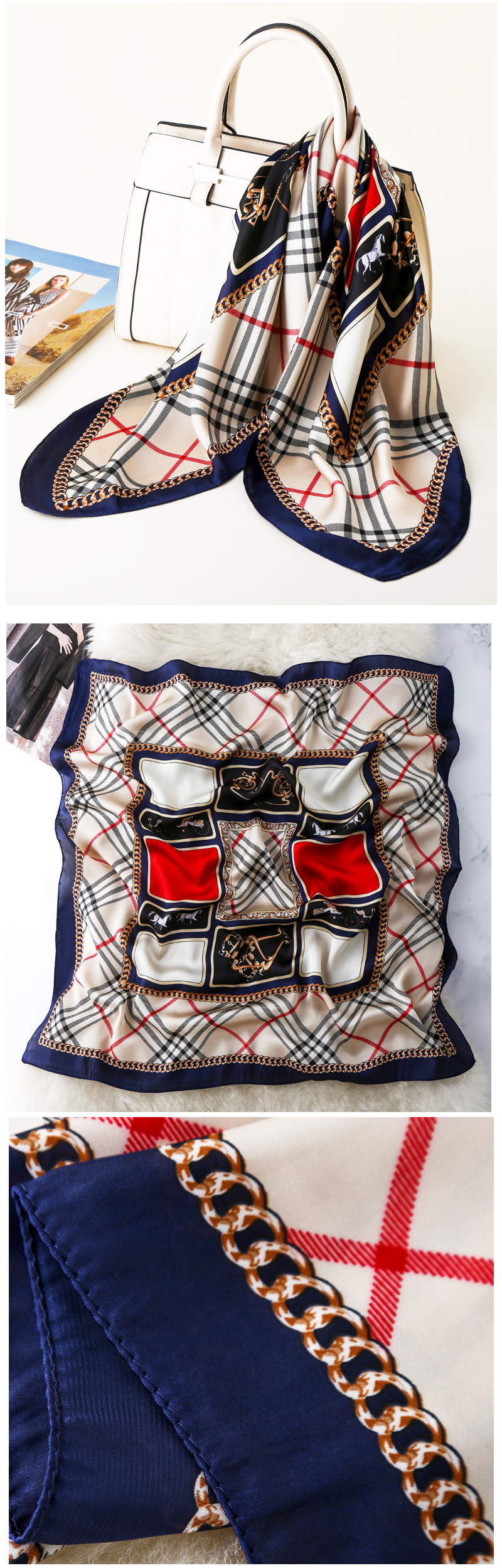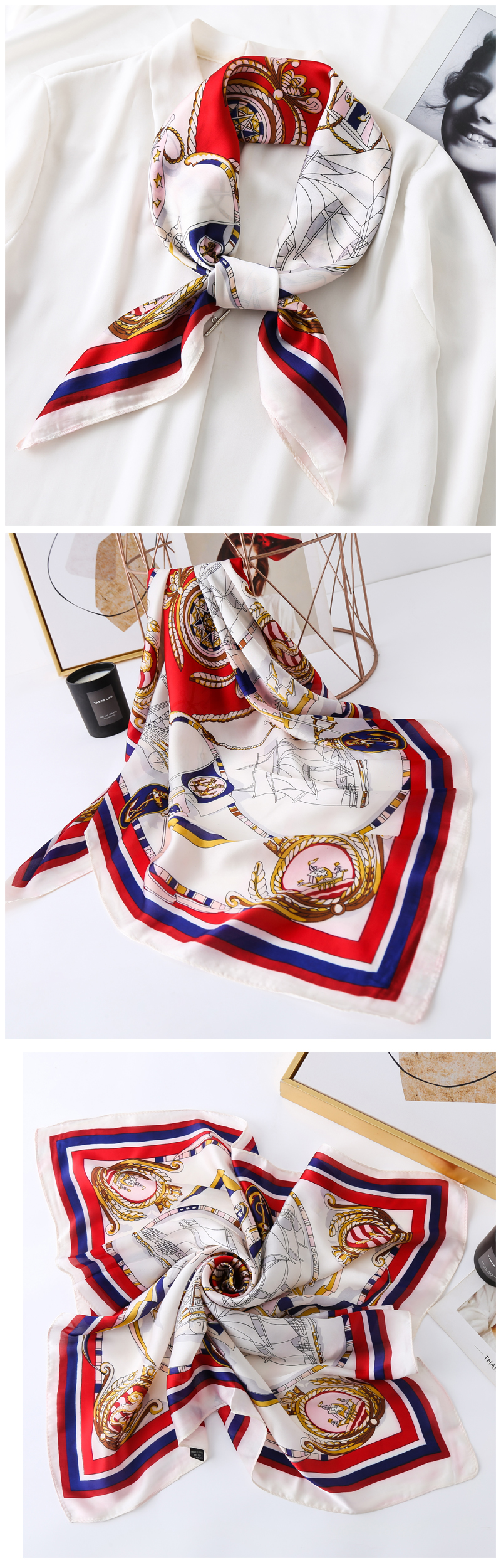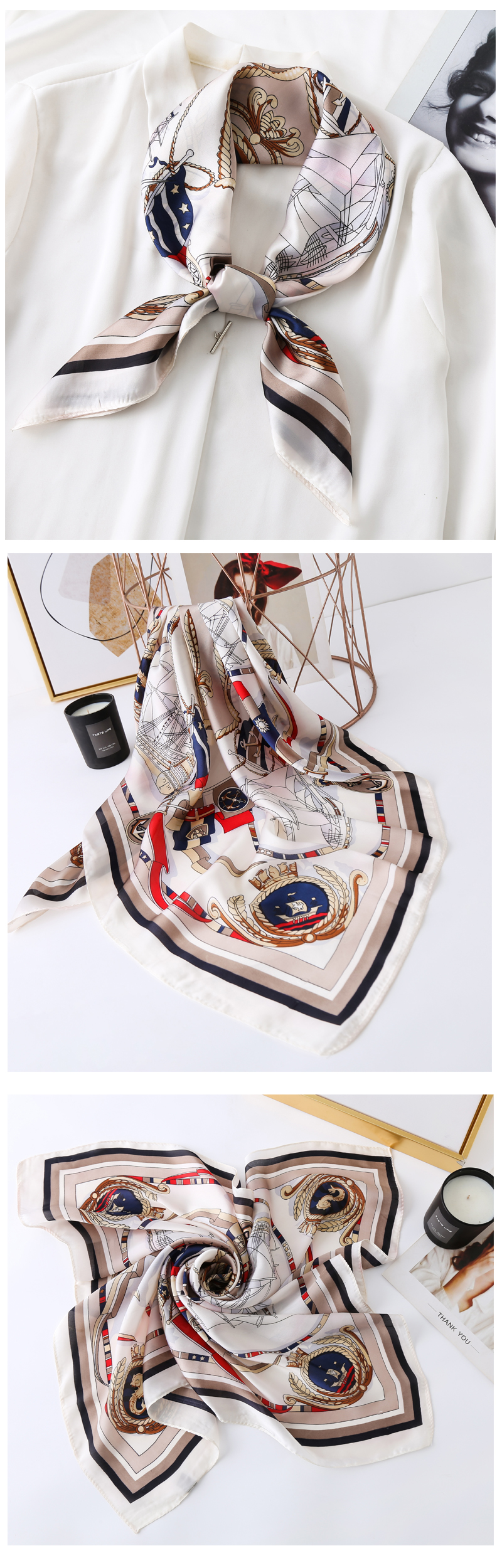 High-end decorative silk scarf, versatile spring and autumn new style 2025 summer small square scarf, women's scarf, thin, long, fashionable