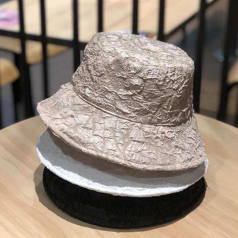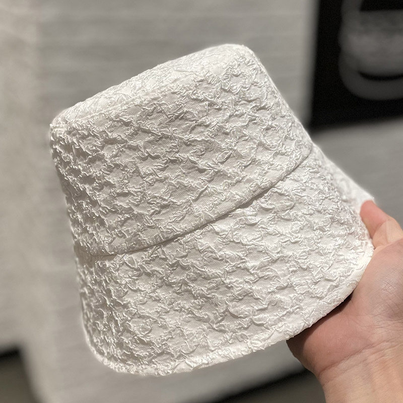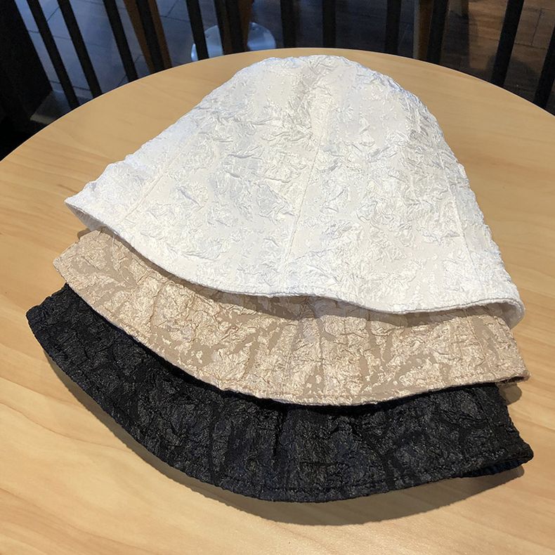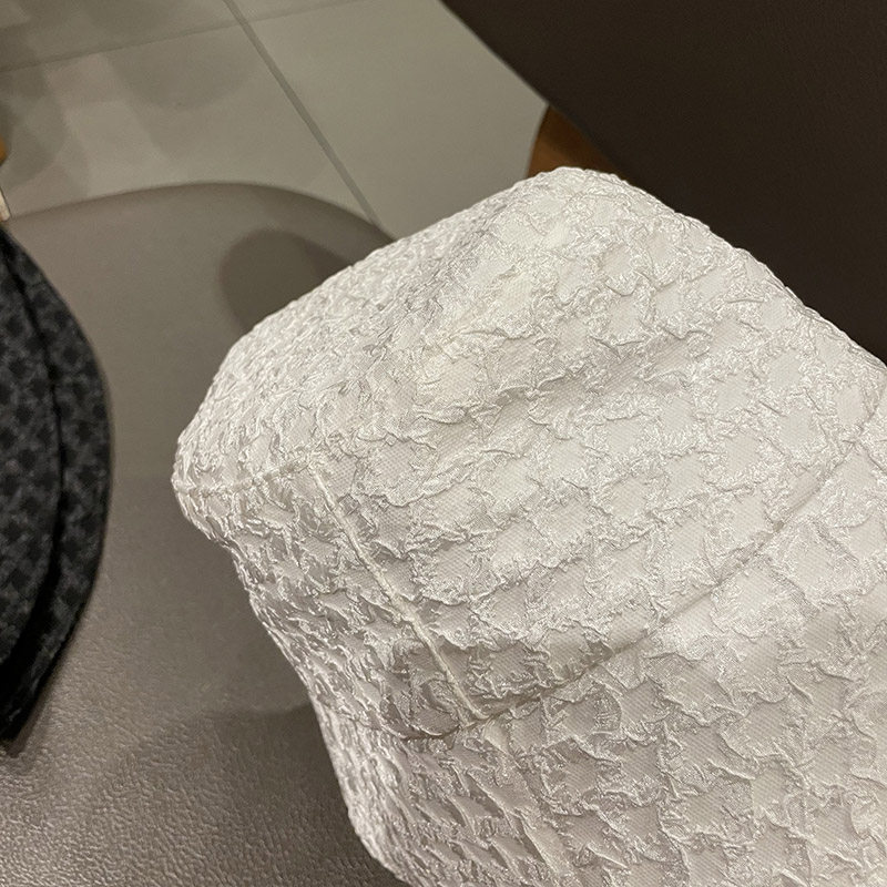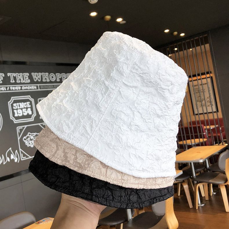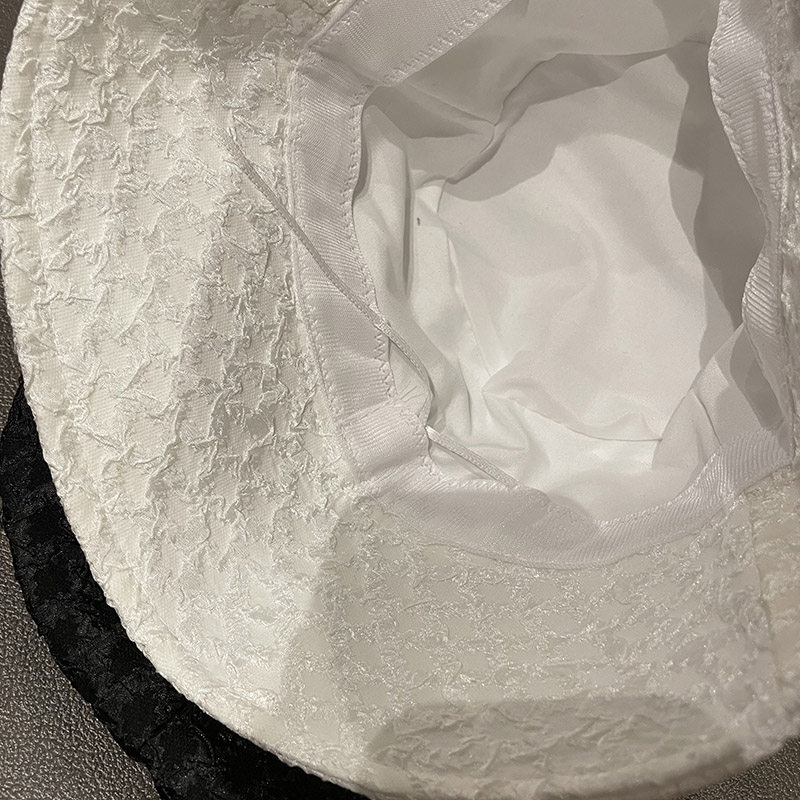 Sort by color White ruffled bucket hat,Black corrugated bucket hat,Khaki ruffled bucket hat,White ruffled brim bucket hat,Black ruffled brim bucket hat,Khaki ruffled brim bucket hat,White corrugated plaid bucket hat,Black corrugated check bucket hat