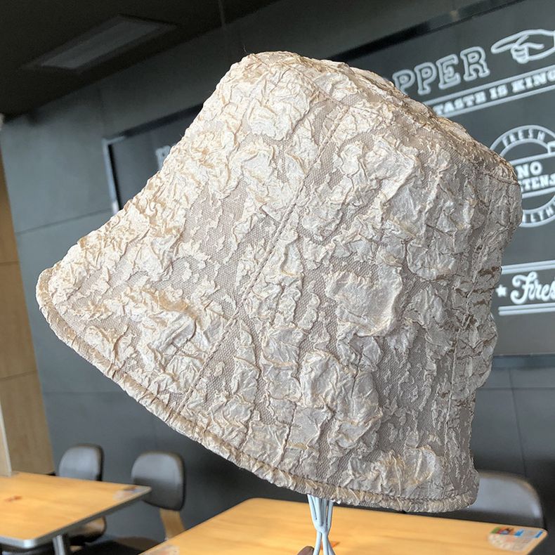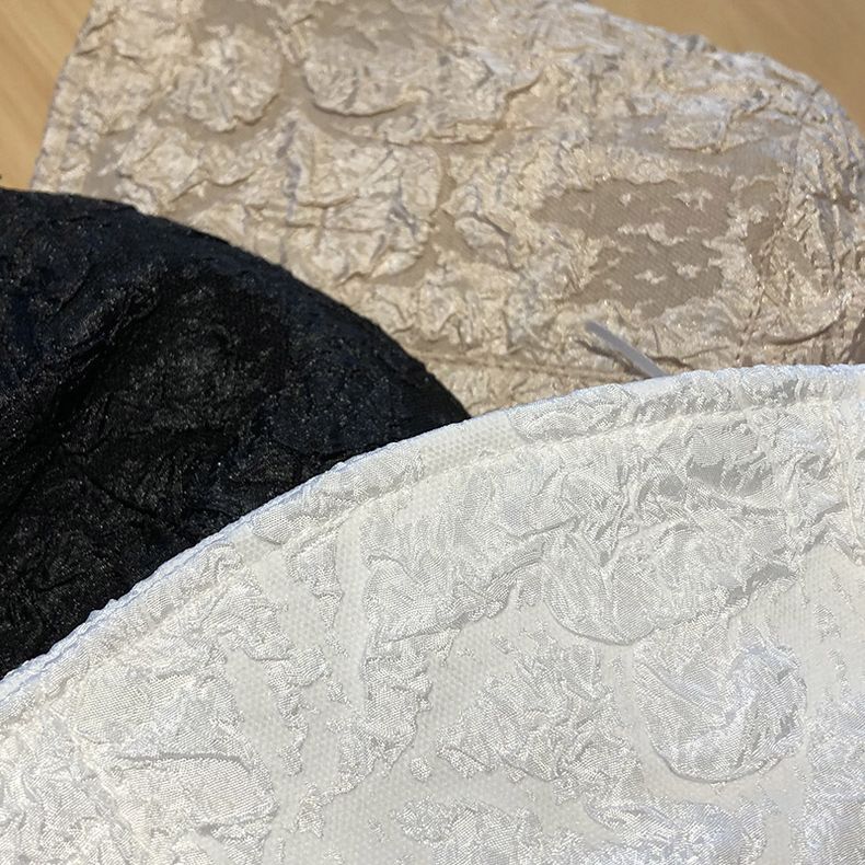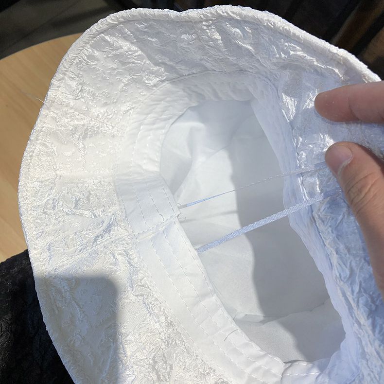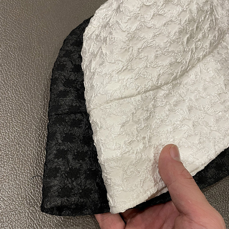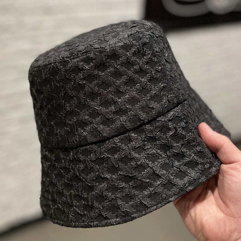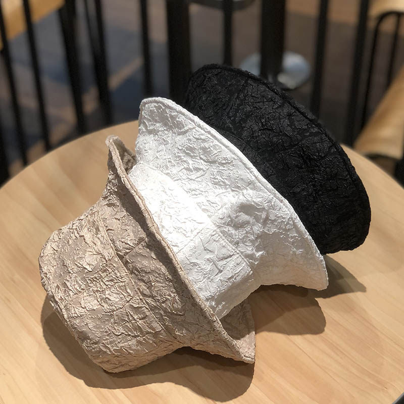 Sort by color White ruffled bucket hat,Black corrugated bucket hat,Khaki ruffled bucket hat,White ruffled brim bucket hat,Black ruffled brim bucket hat,Khaki ruffled brim bucket hat,White corrugated plaid bucket hat,Black corrugated check bucket hat