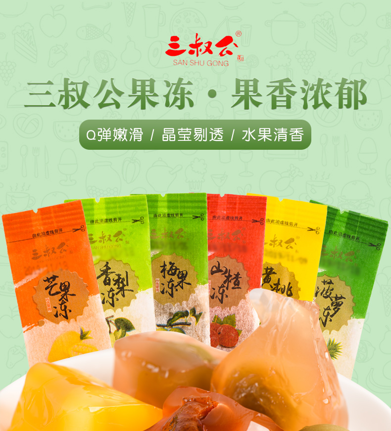 台湾风味三叔公纸果肉水果冻黄桃芒果山楂果冻1000g休闲零食品