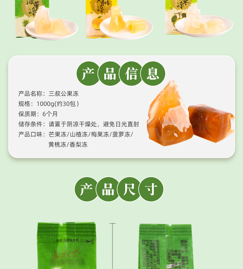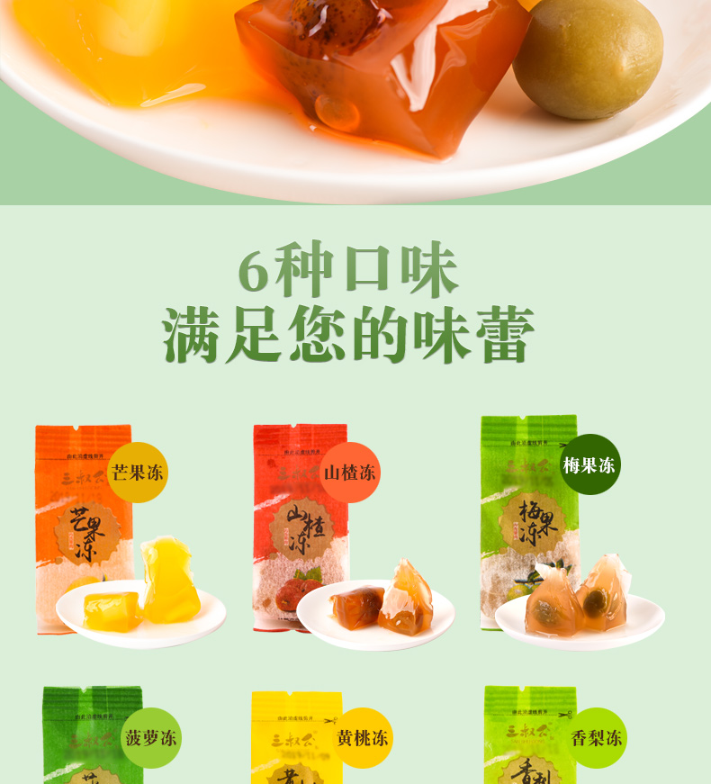口味 混合口味1000g,黄桃味1000g,芒果味1000g,菠萝味1000g,山楂味1000g,梅果味1000g,香梨味1000g,布丁系列(新款尝鲜)1000g(新品限量)