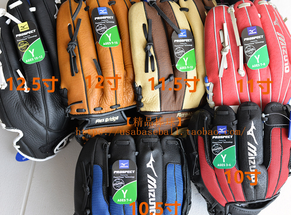 Mizuno Prospect youth ready-to-play leather baseball and softball gloves