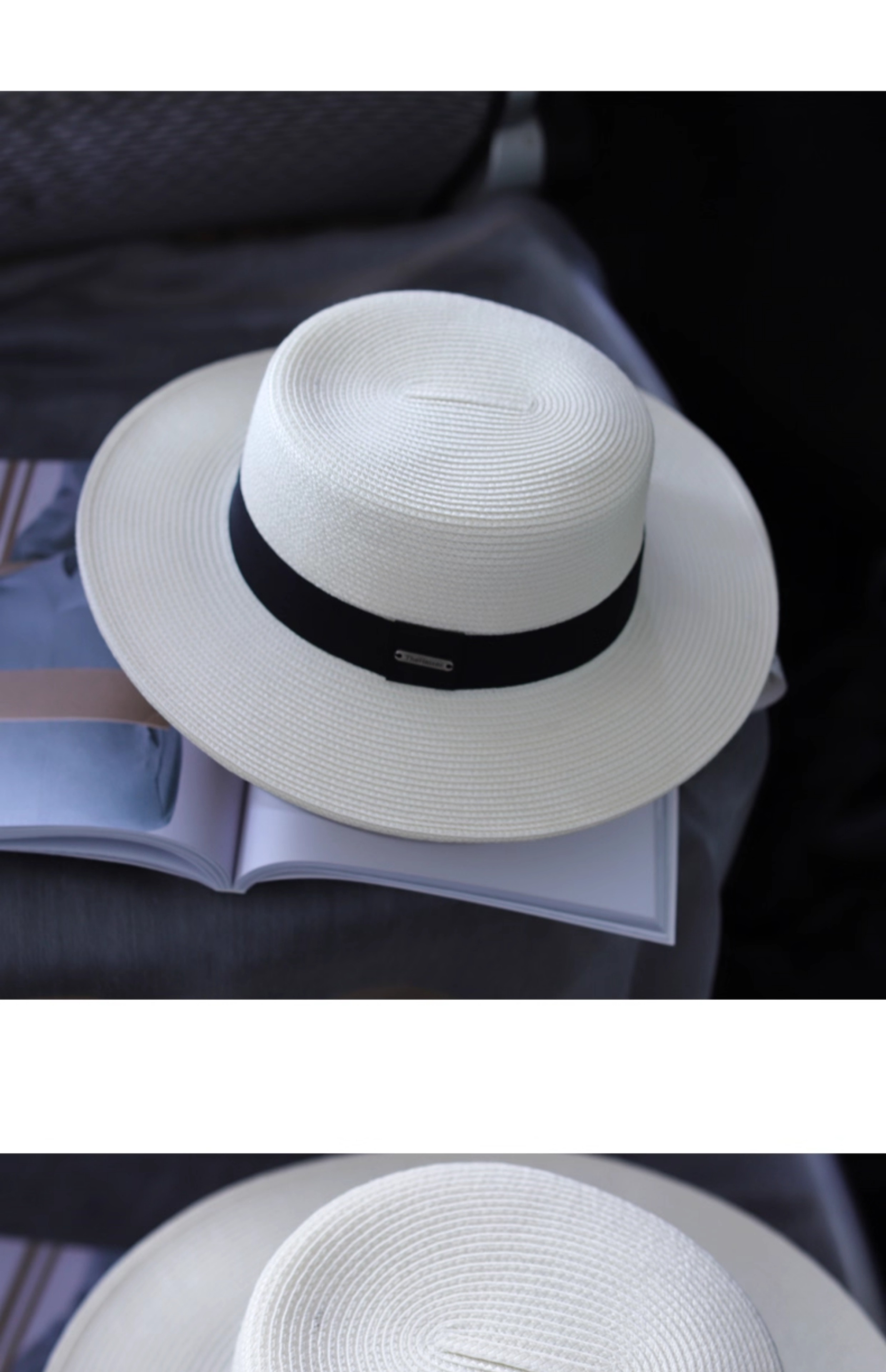 Tochino Internet celebrity same style flat top summer sun hat women's off-white large-brimmed top hat British retro male jazz hat