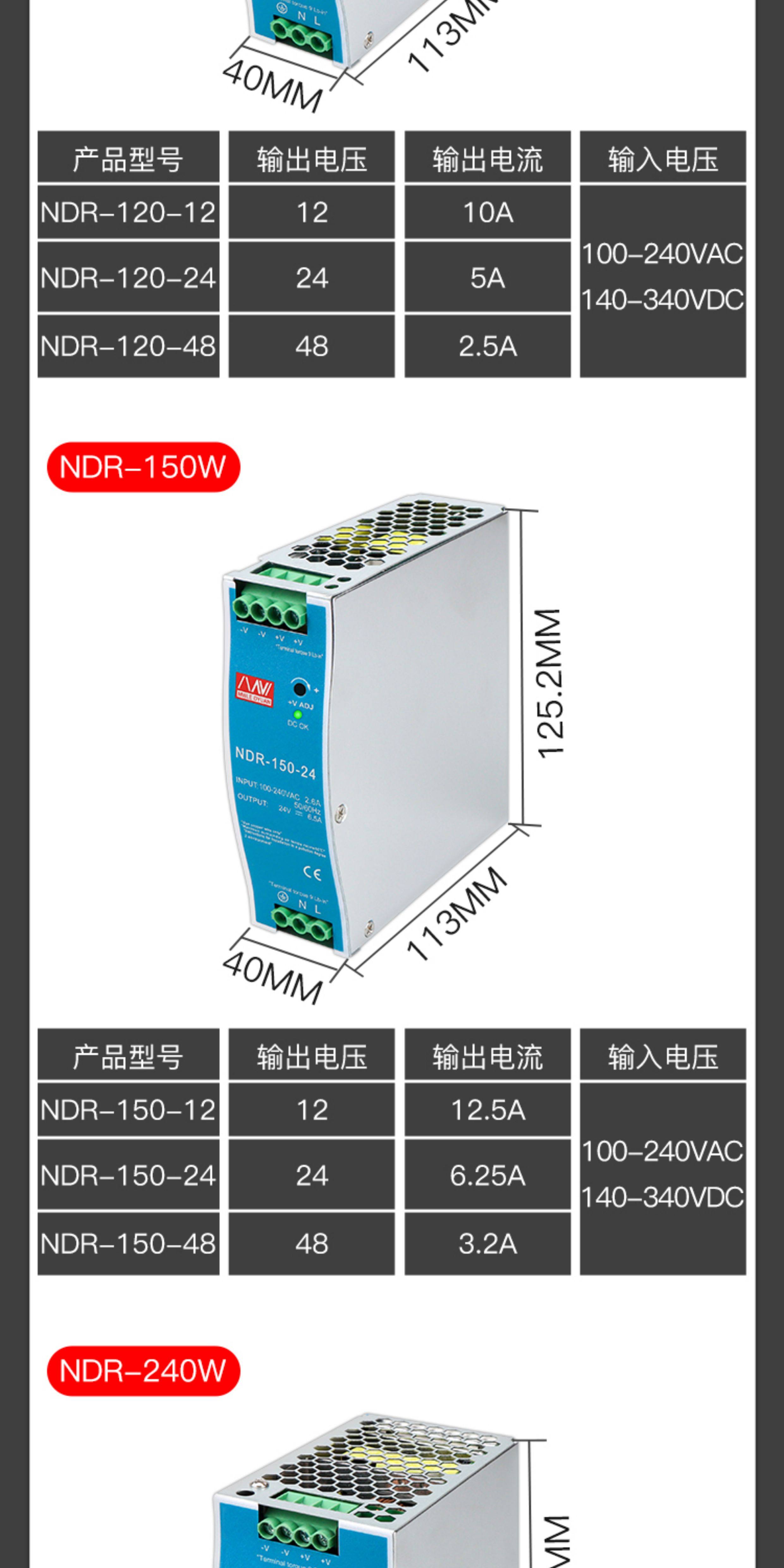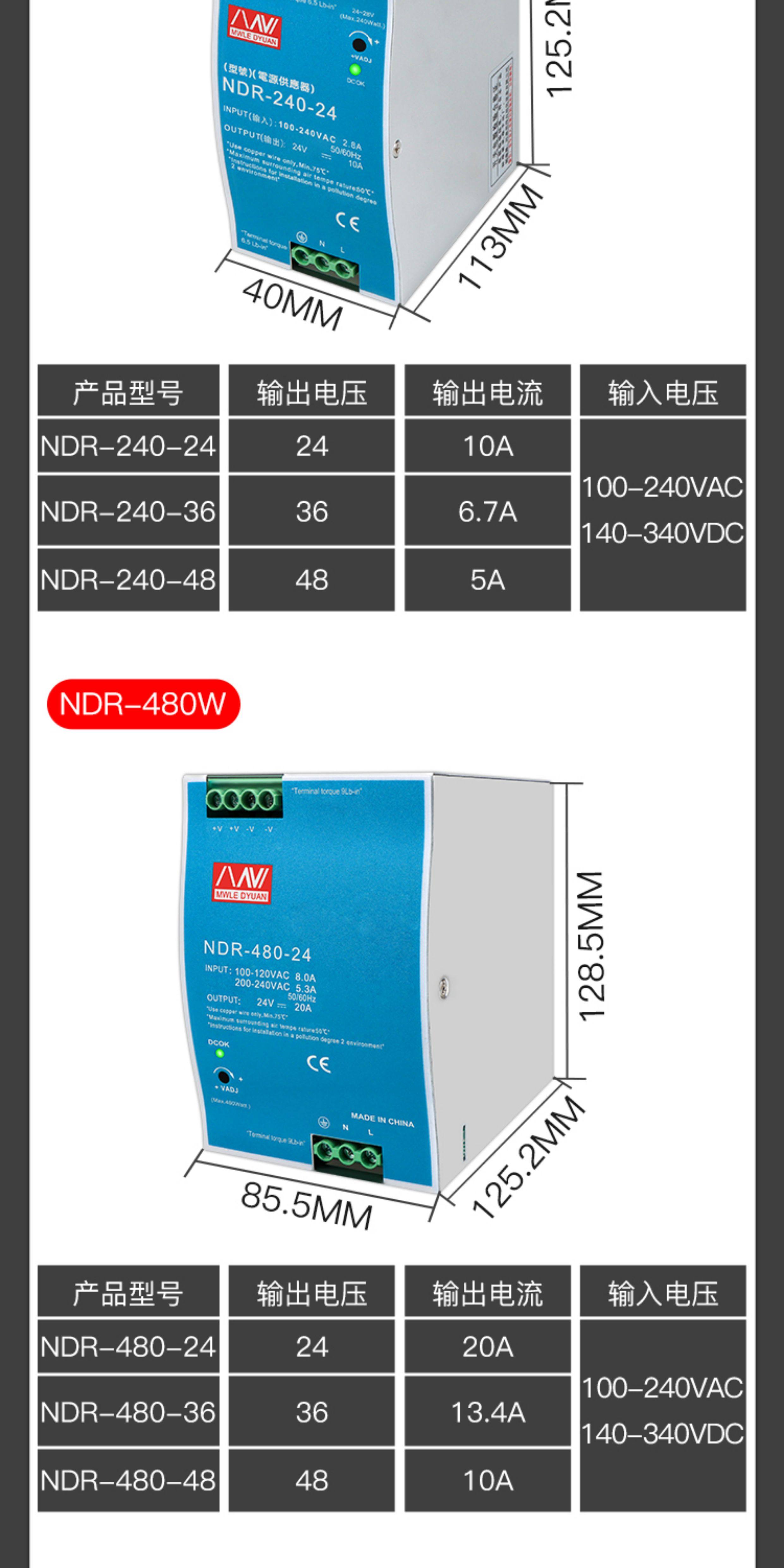 Color Classification Blue,Light Blue,Sky Blue,Royal Blue,Dark Blue,Navy Blue,Ndr-240-24 (24V10A) Constant Voltage and Constant Current,Ndr-480-24 (24V20A) Constant Voltage and Constant Current,Ndr-480-24 20A (Wide Pressure Version),DR-15-12(12V1.25A) Market Model,DR-15-24(24V0.63A) Market Model,DR-15-24(24V 0.63A),DR-15-12(12V 1.25A),DR-15-5 (5V 2.4A),DR-25-12(12V2.1A),DR-25-24(24V1A),DR-30-5 (5V 3A),DR-30-12 (12V 2A),DR-30-24 (24V 1.5A),DR-45-5 (5V 5A),DR-45-12 (12V 4A),DR-45-24 (24V 2A),DR-60-5 (5V 7A),DR-60-12 (12V 5A),DR-60-24(24V 2.5A),DR-60-36 (36V 1.7A),DR-60-48 (48V 1.25A),DR-75-12 (12V6.5A),DR-75-24 (24V3.2A),DR-120-12(12V 10A),DR-120-24(24V 5A),DRP-240-12(12V20A),DRP-240-24(24V10A),EDR-75-12V 6.2A,EDR-75-24V 3.2A,EDR-120-12V 10A,EDR-120-24V 5A,EDR-150-12V 12A,EDR-150-24V 6.5A,NDR-75-12V 6.2A/Constant Voltage and Constant Current,NDR-75-24V 3.2A/Constant Voltage and Constant Current,Ndr-120-12V 10A/Constant Voltage and Constant Current,Ndr-120-24V 5A/Constant Voltage and Constant Current,Ndr-150-12V 12A/Constant Voltage and Constant Current,NDR-150-24V 6.5A/Constant Voltage and Constant Current,Ndr-240-48 (48V5A)/Constant Voltage and Constant Current,MDR-10-12V 0.83A,MDR-10-24V 0.42A,MDR-20-5V 3A,MDR-20-12V 1.67A,MDR-20-24V 1A,MDR-40-12V 3.3A,MDR-40-24V 1.7A,MDR-60-5V 10A,MDR-60-12(12V5A),MDR-60-24(24V2.5A),MDR-60-36V 1.7A,MDR-60-48V 1.25A,MDR-100-12V 7.5A,MDR-100-24V 4A,NDR-480-48(48V10A),Ndr-480-48 10A (Wide Pressure Version)