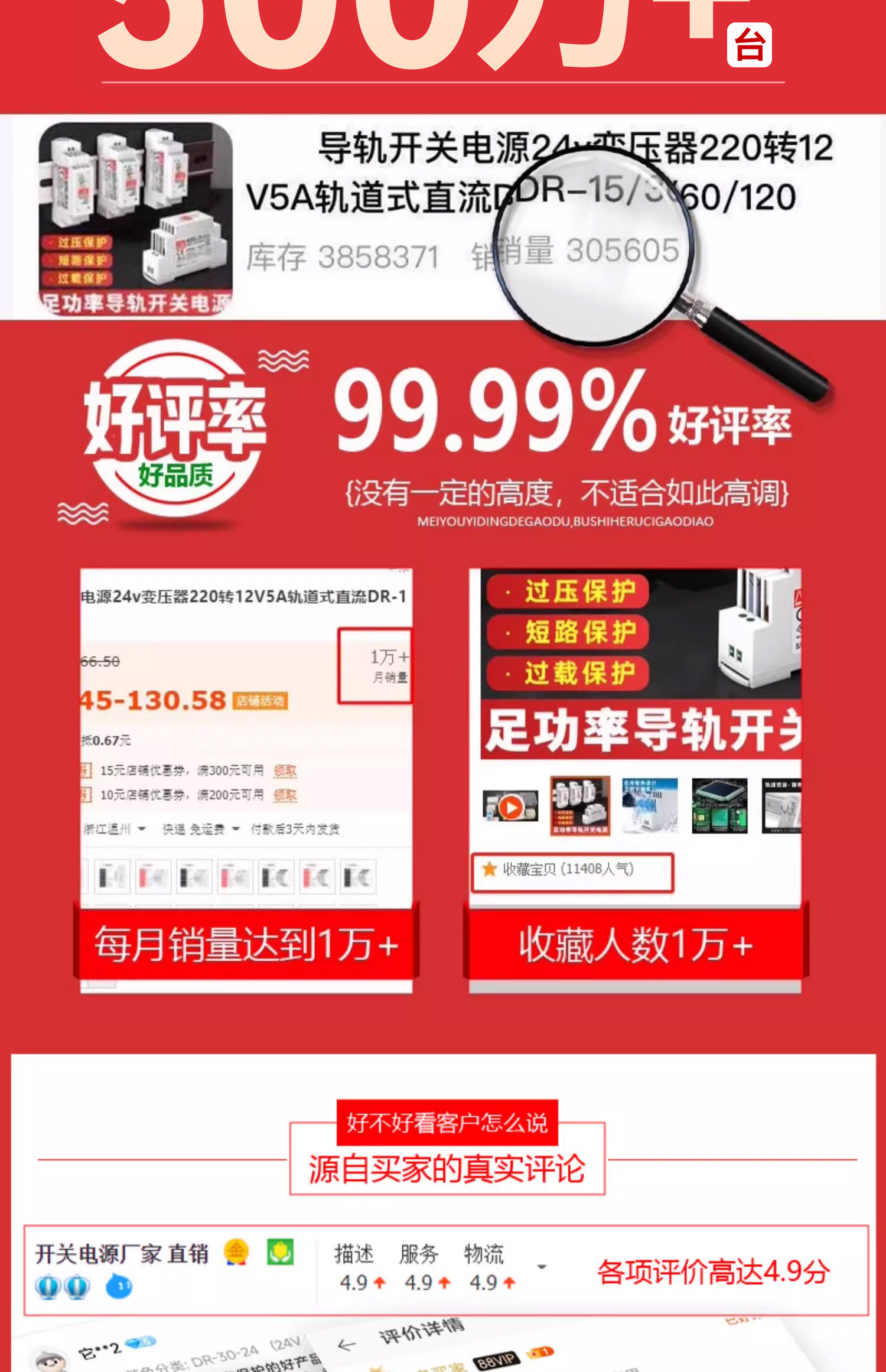Ndr Rail-Mounted Switching Power Supply 24V Transformer 220V to 12V 5A Dc Dr-15/30/60/120 Rail