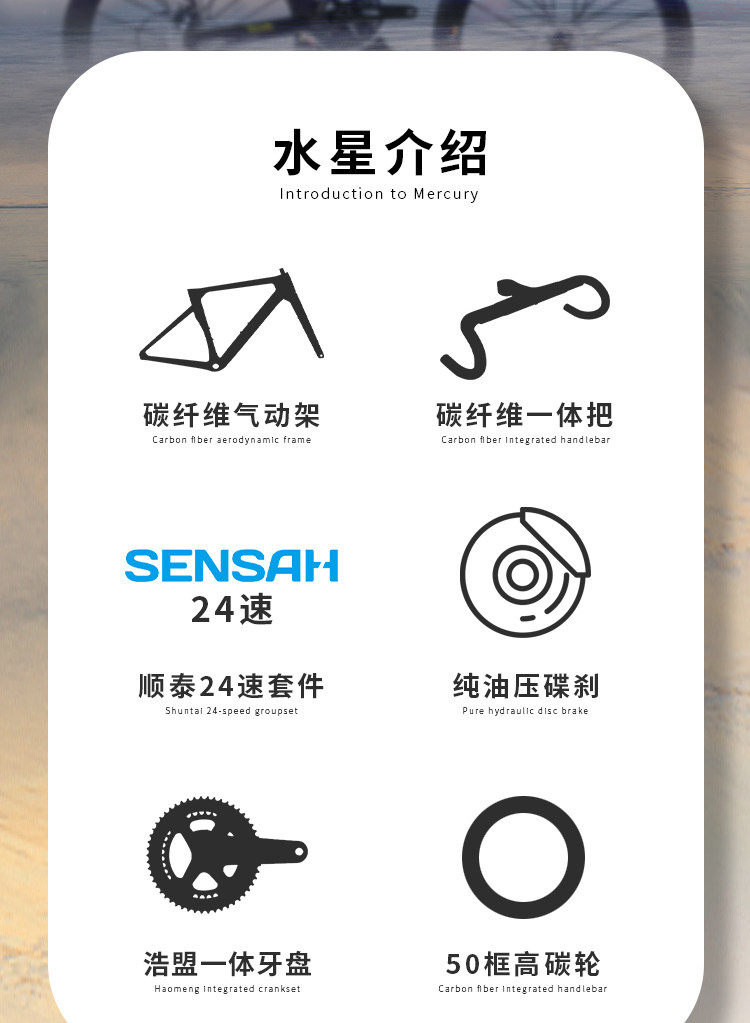 Missile missile road bike mercury 6000 carbon fiber shuntai 24-speed oil disc pneumatic men and women