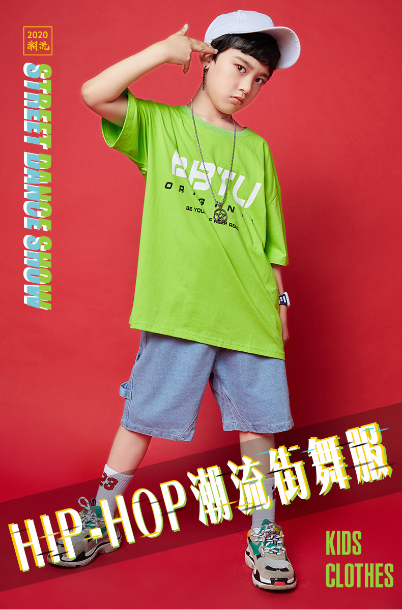 儿童街舞服男童嘻哈潮装宽松短袖夏装欧美风女童爵士舞服演出服帅