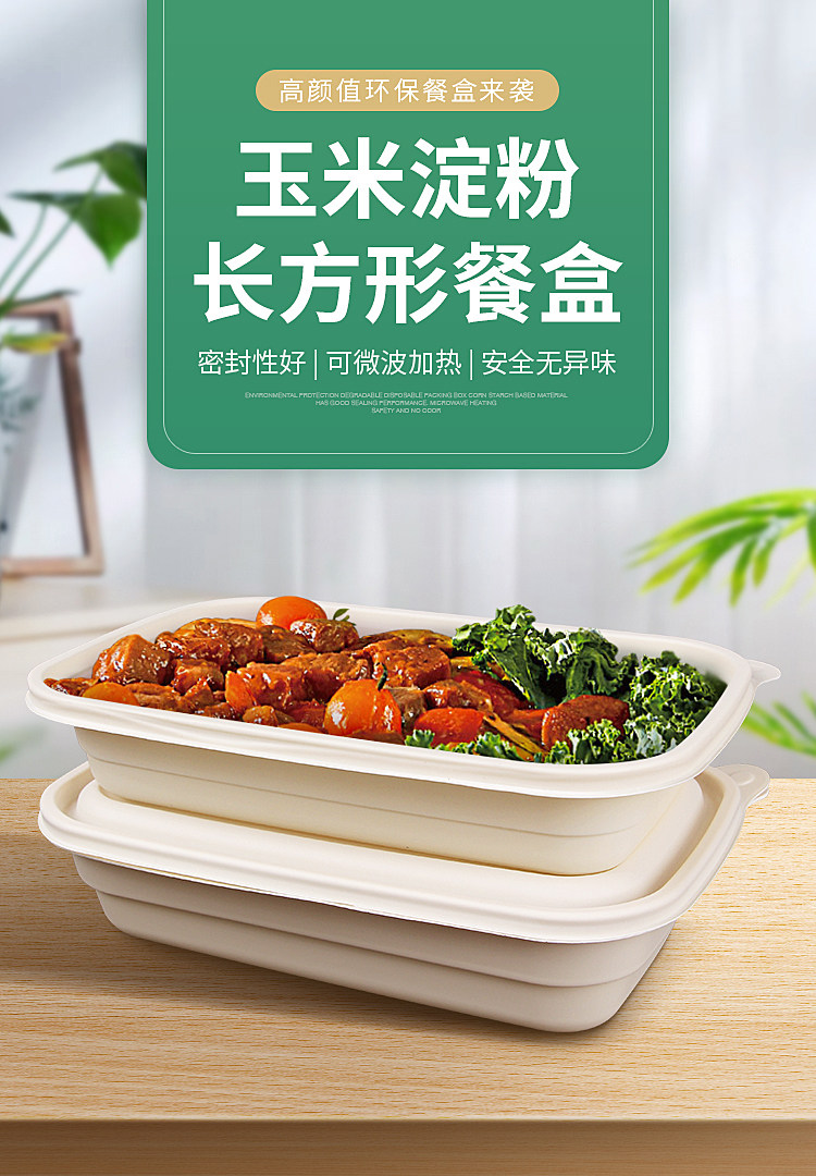 Saizhuo disposable packaging box, environmentally friendly and biodegradable corn starch take-out lunch box, rectangular lunch box, microwaveable