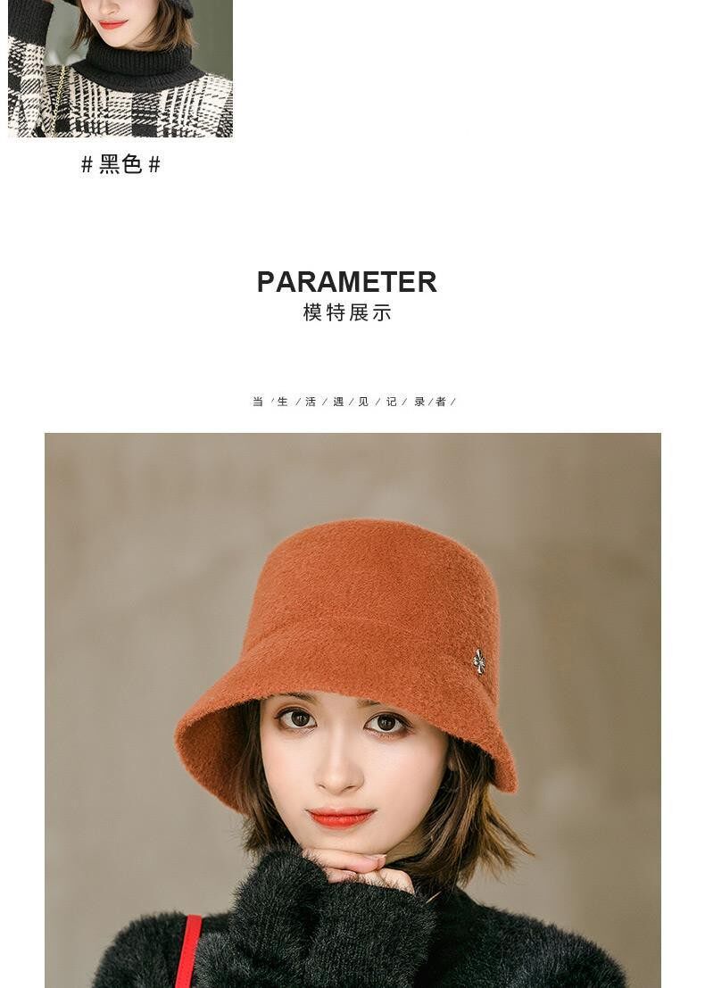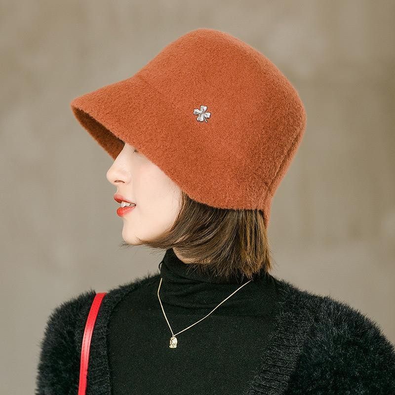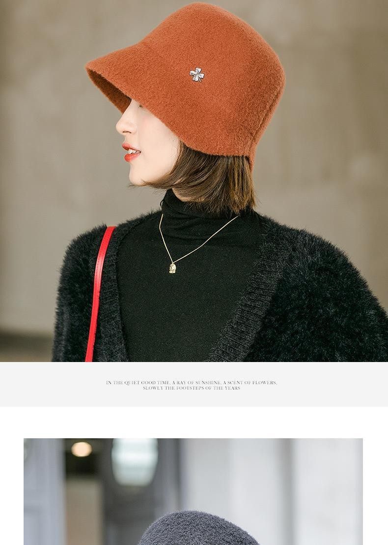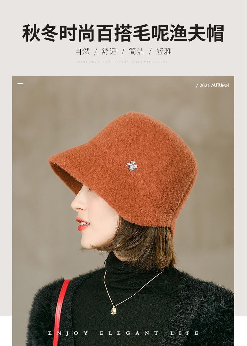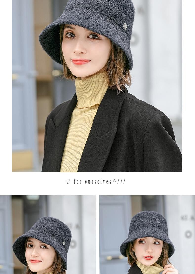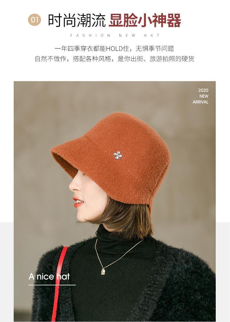 Hats for women, spring and autumn, versatile woolen short brim bucket hat, stylish small brim, fashionable big head circumference, winter fisherman hat
