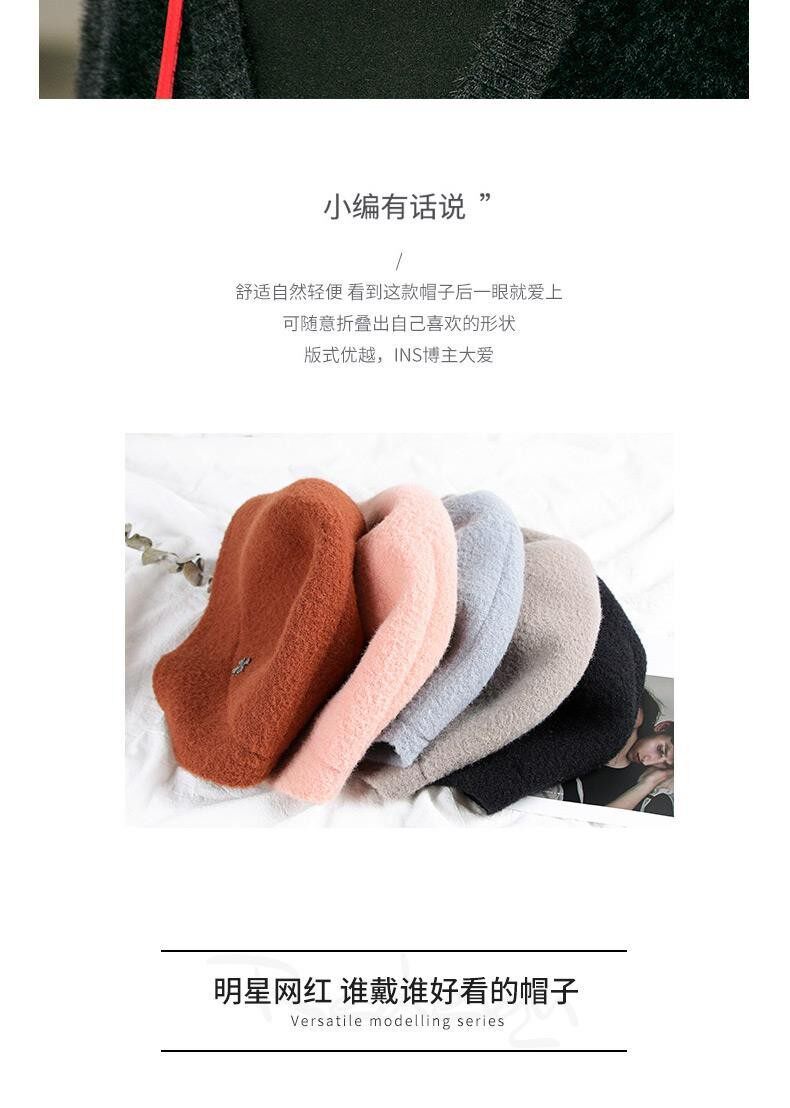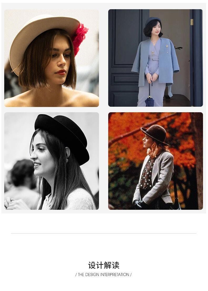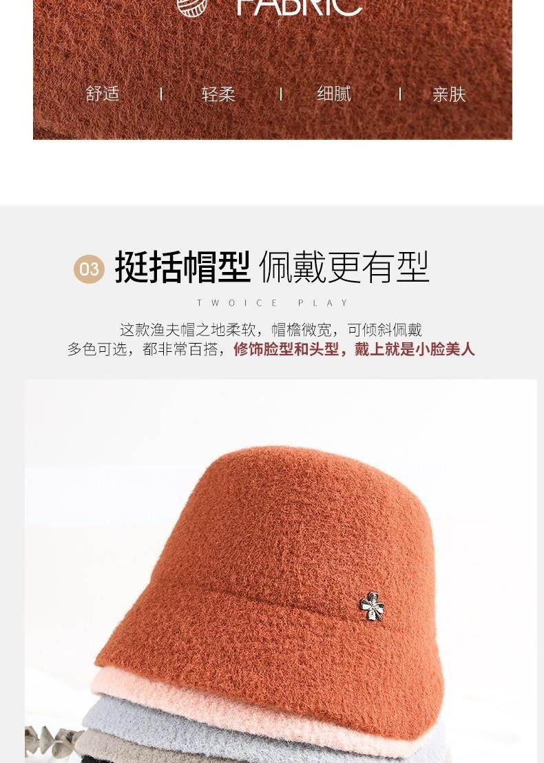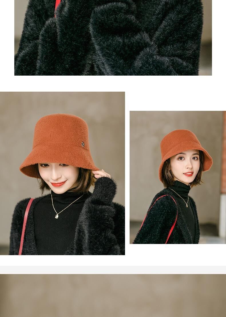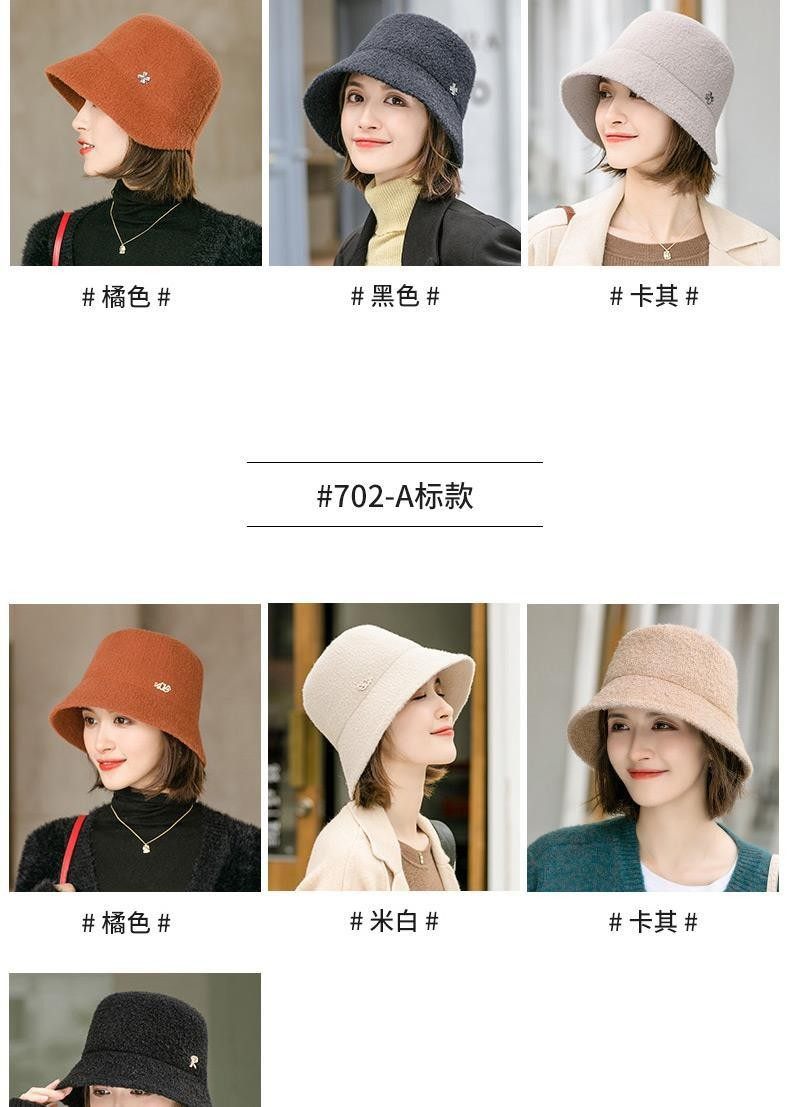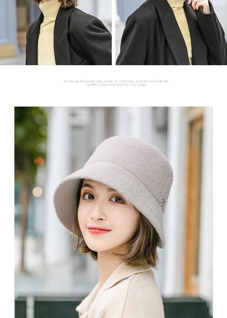 Hats for women, spring and autumn, versatile woolen short brim bucket hat, stylish small brim, fashionable big head circumference, winter fisherman hat