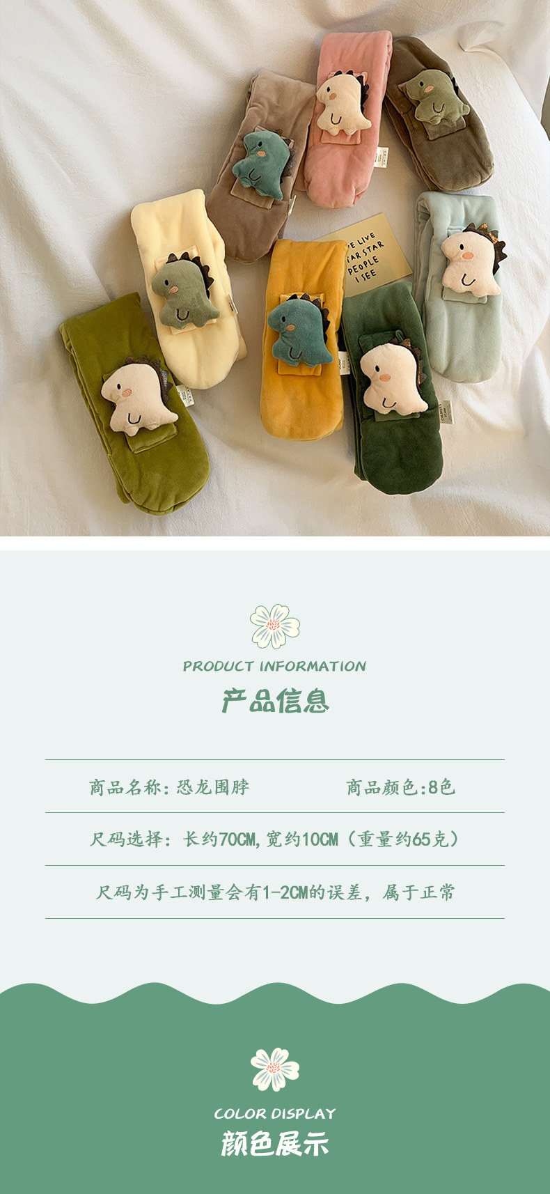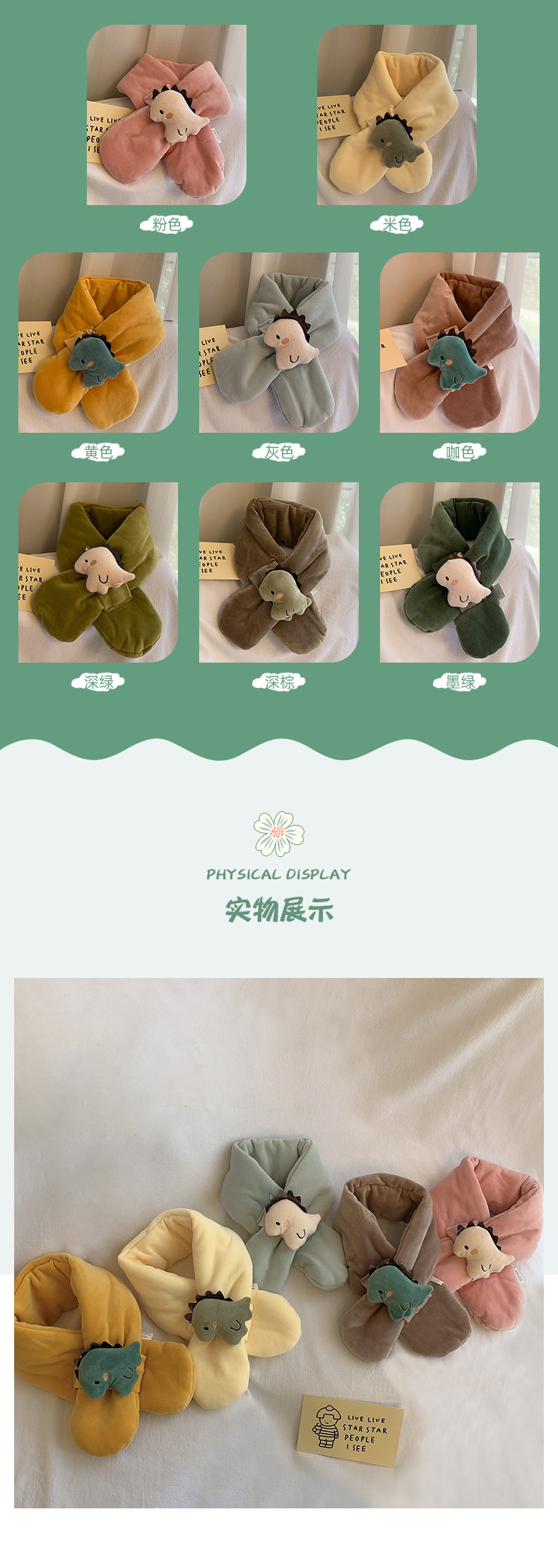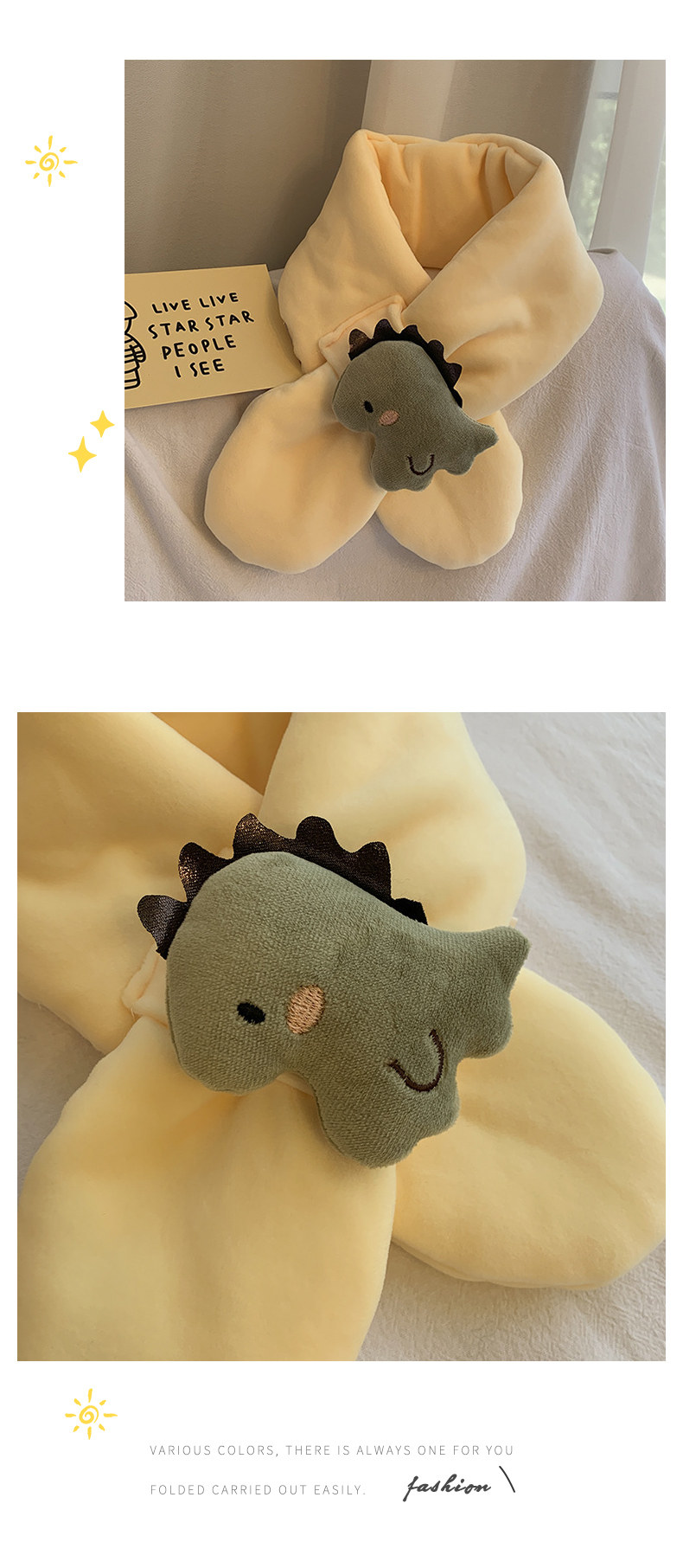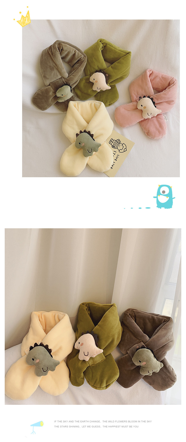Autumn and winter cute children's small scarf plush cartoon dinosaur cross baby scarf for boys and girls to keep warm