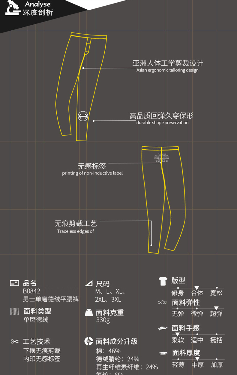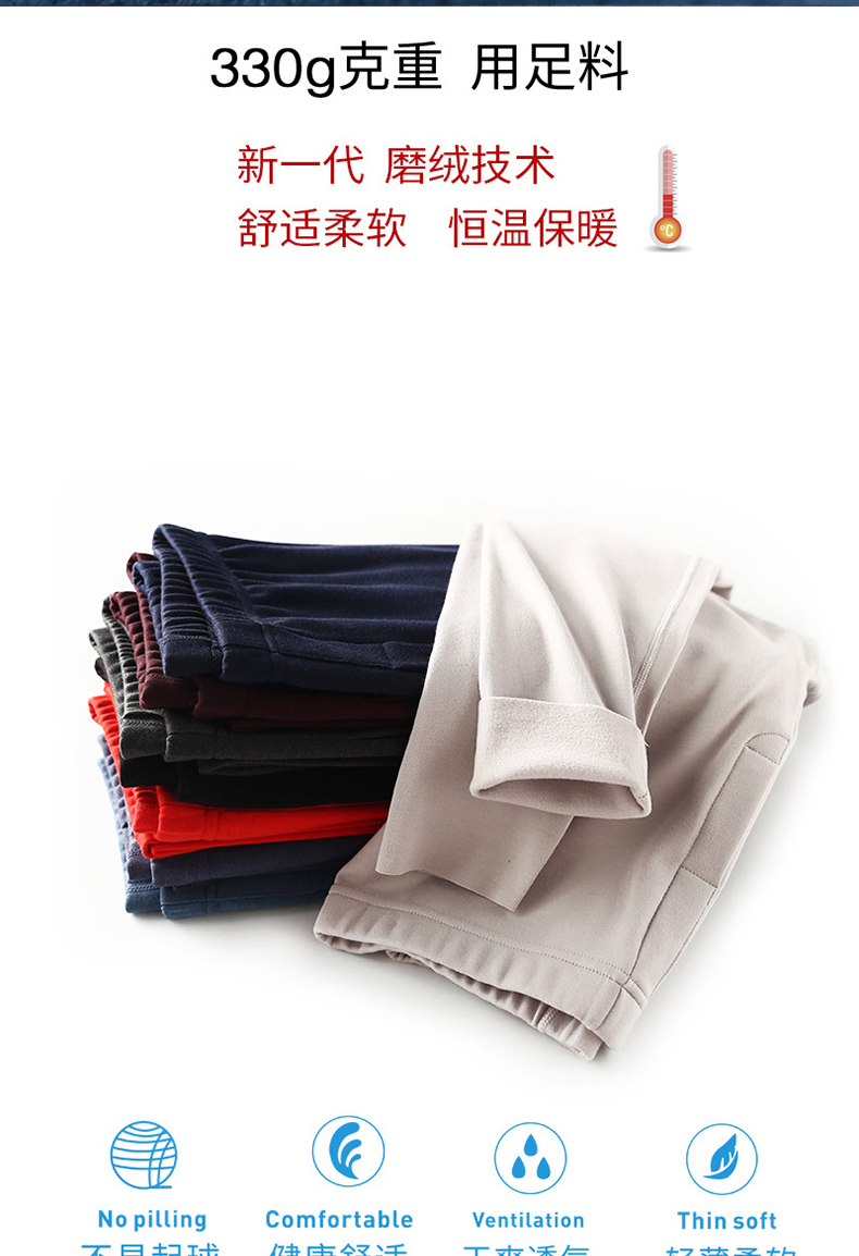 320g德绒无痕保暖裤男士加绒秋裤冬季修身加厚棉毛裤子单件