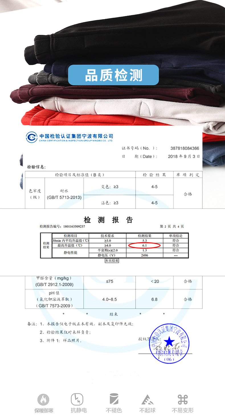 里料材质成分 棉46% 再生纤维素纤维24% 聚丙烯腈纤维(腈纶)24% 聚氨酯弹性纤维(氨纶)6%