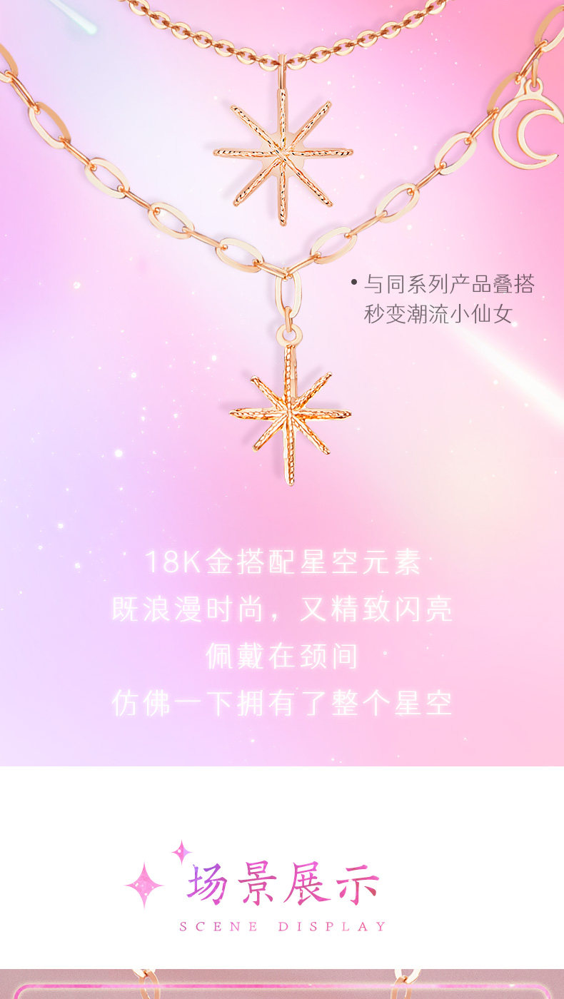 Cai Bai Jewelry Galaxy Ripple Series 18k Gold Necklace Fairy Style Shining Star Pendant Pendant Women's New Product
