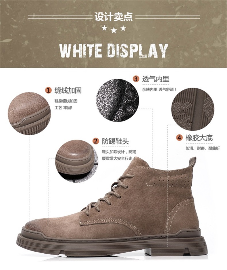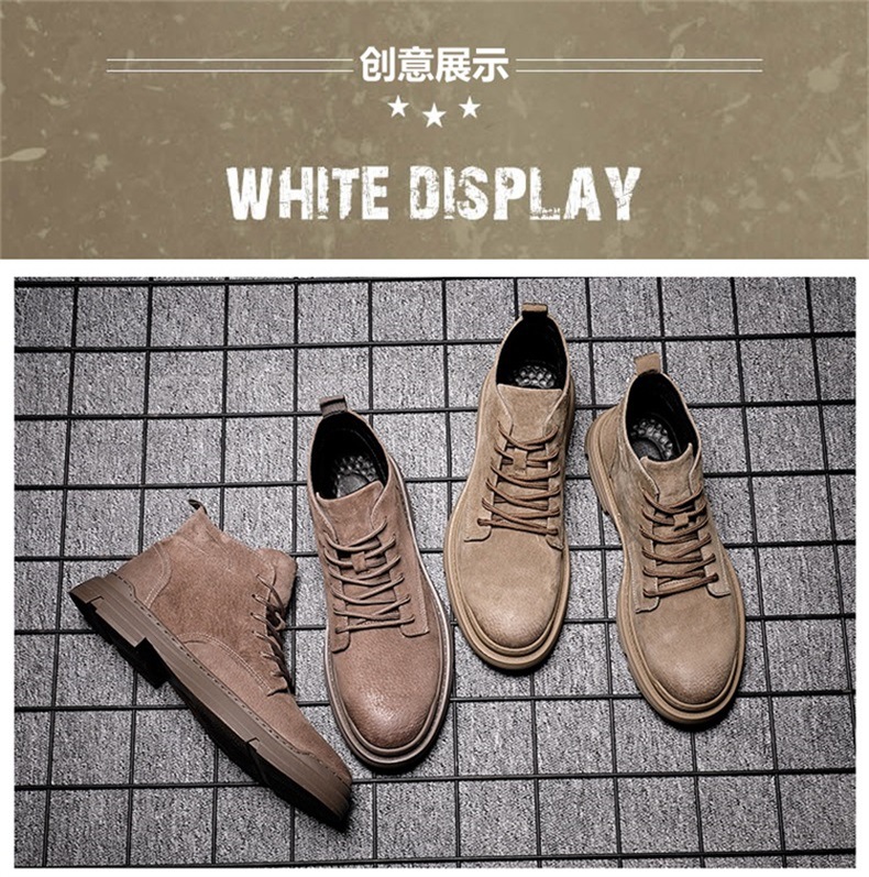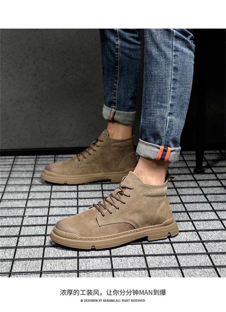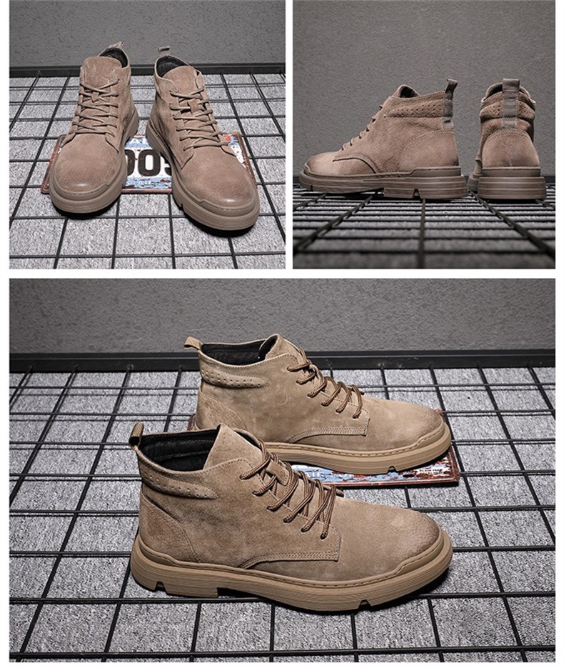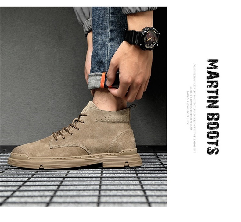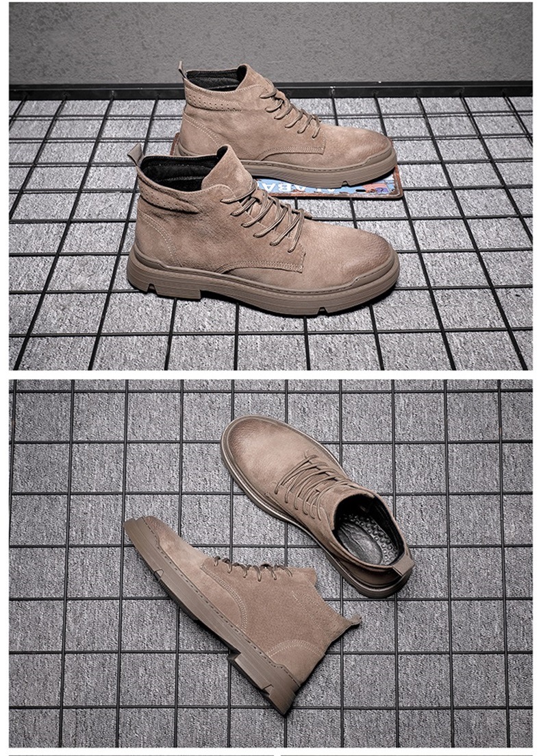 Brown Martin boots men's high-top British style genuine leather trendy winter velvet boots work shoes men's shoes desert short boots