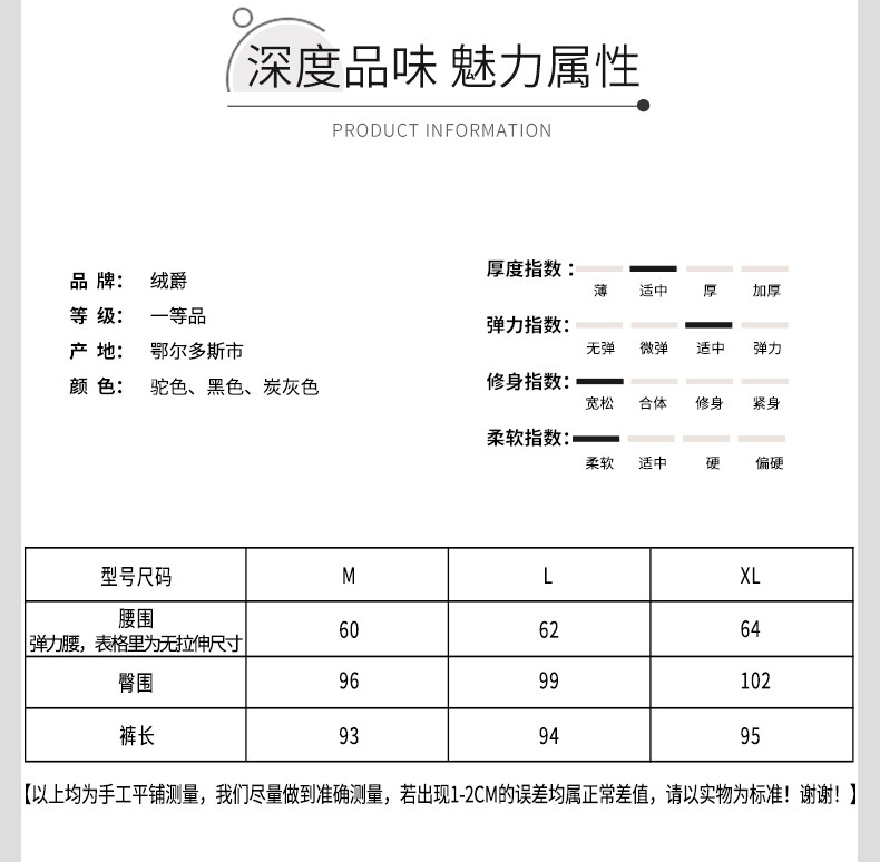 绒爵鄂尔多斯市产女秋冬时尚休闲显瘦保暖运动型哈伦羊绒裤K1743