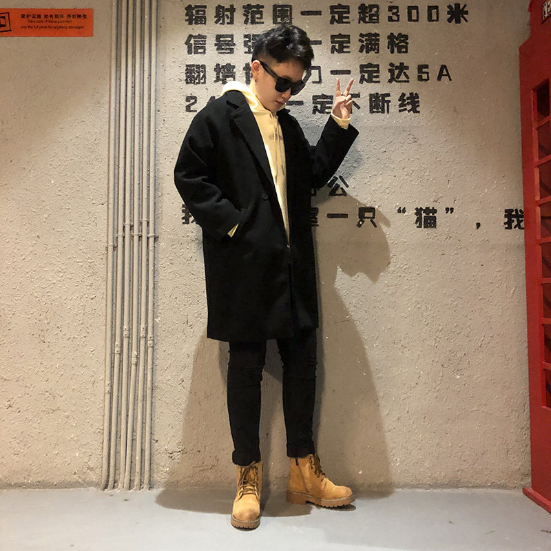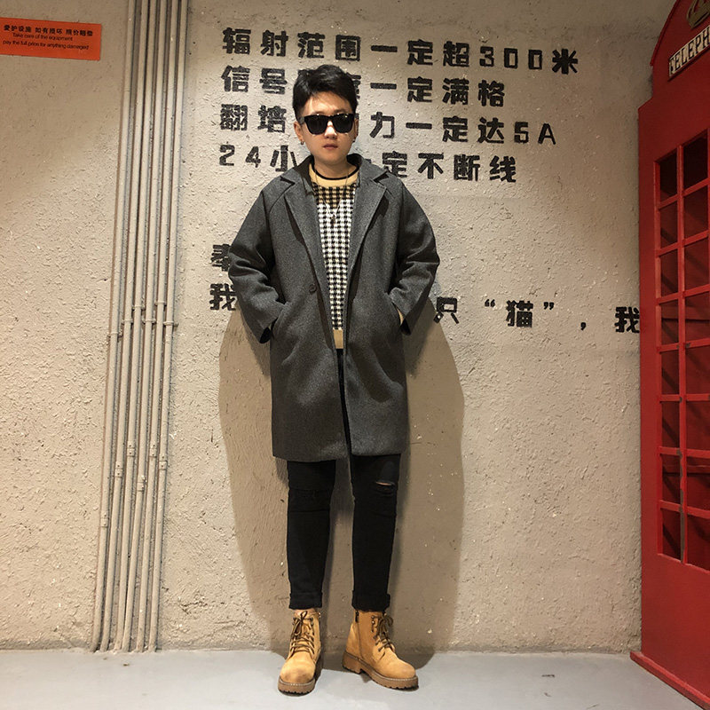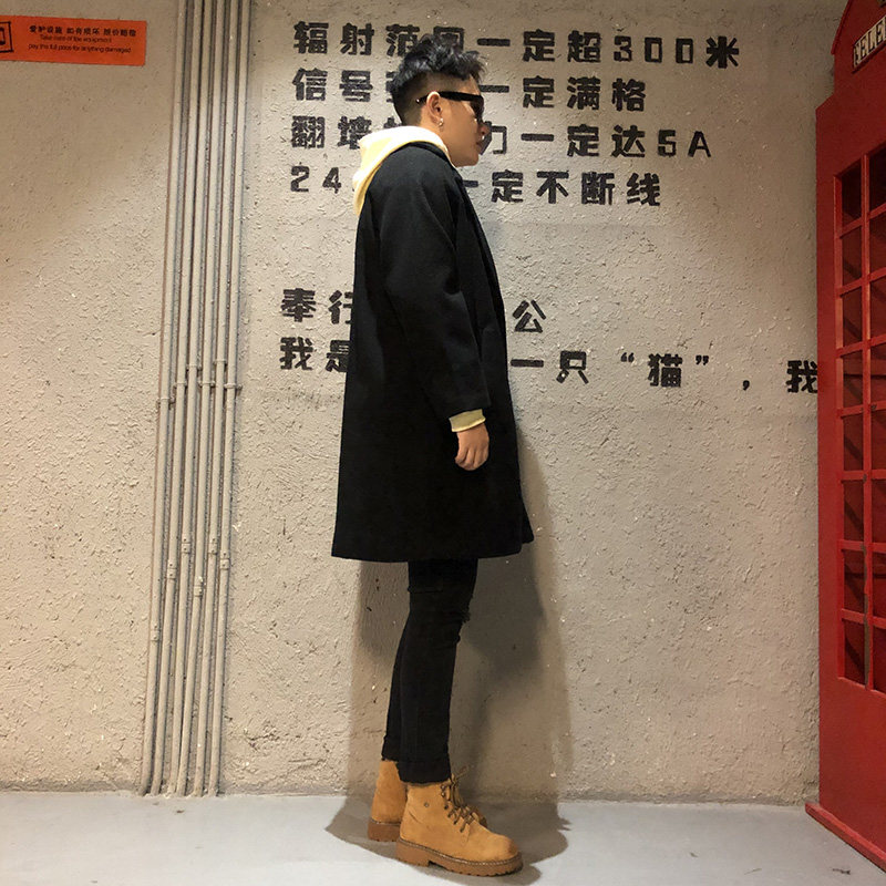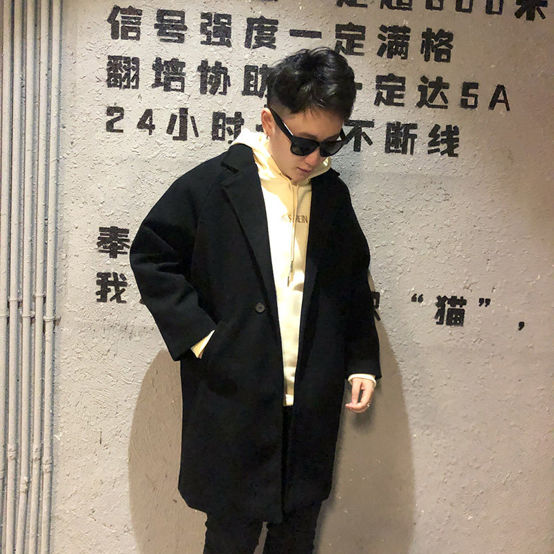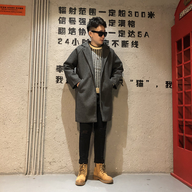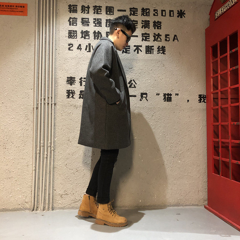 Freige Korean Style Casual Mid-Length Woolen Coat Casual Jacket Trendy Unisex