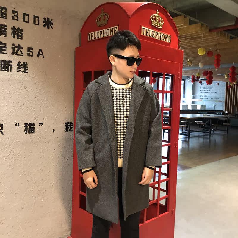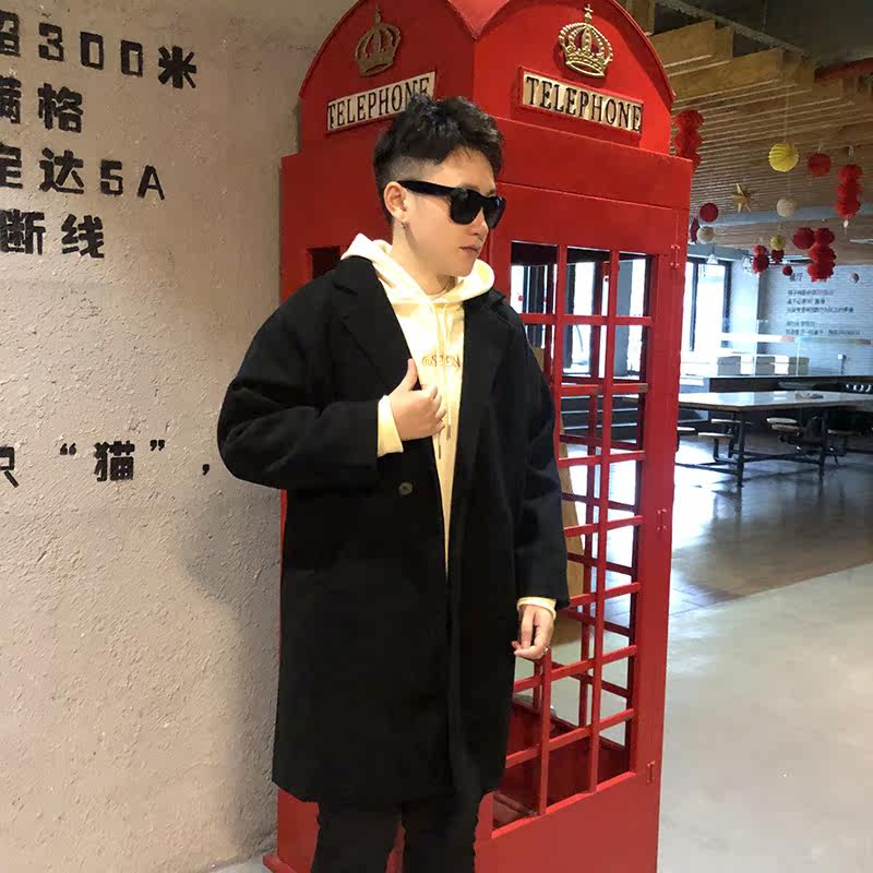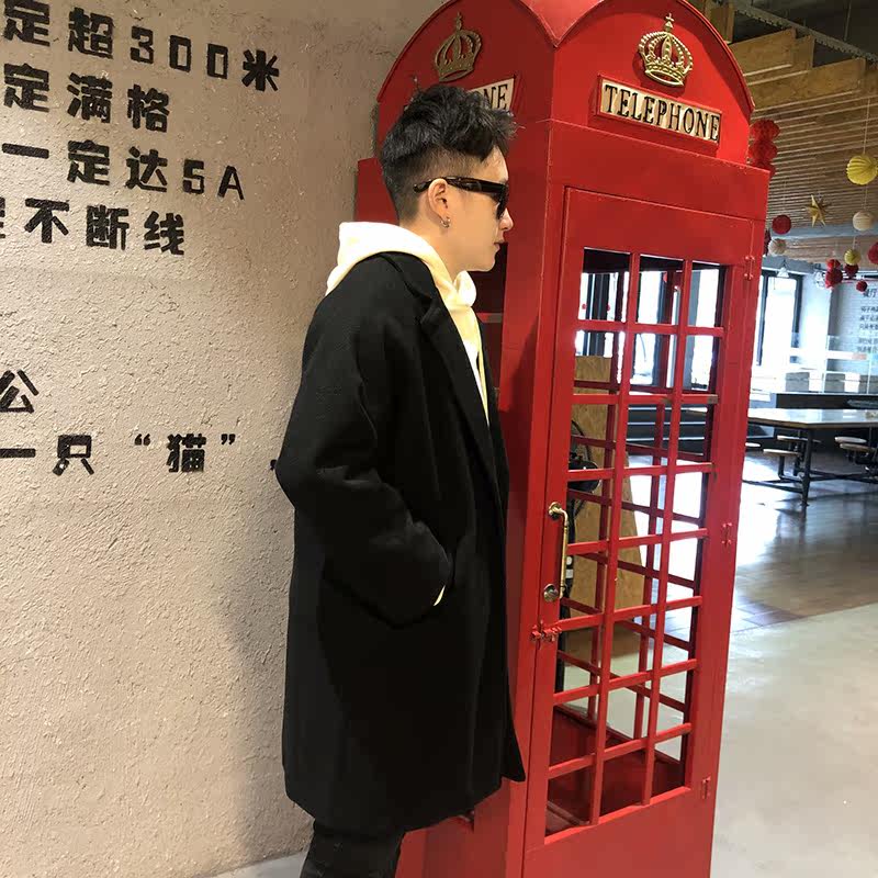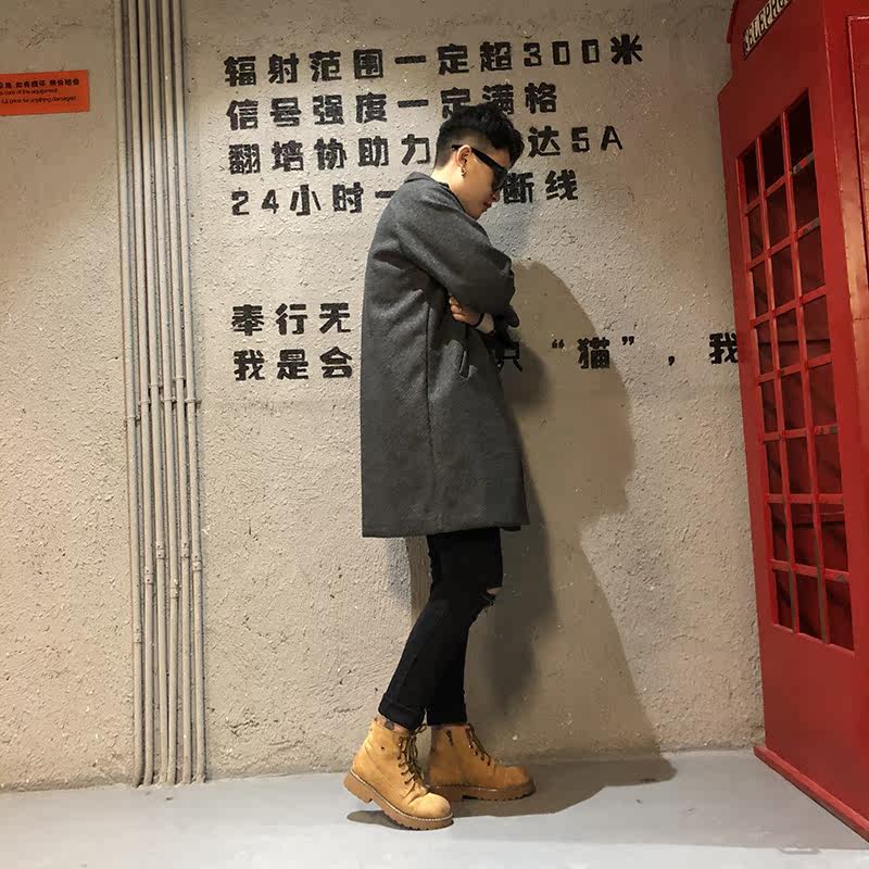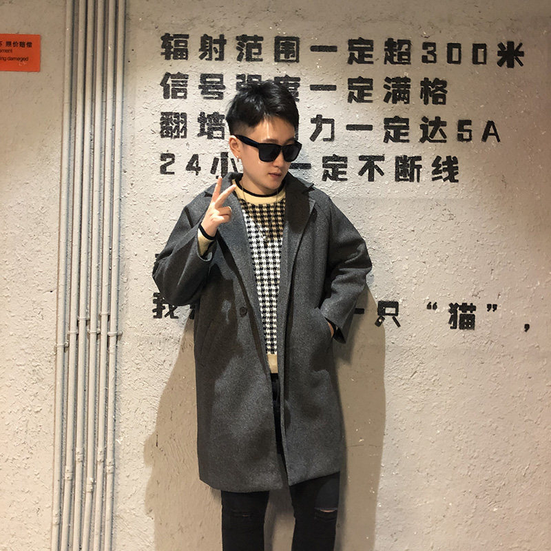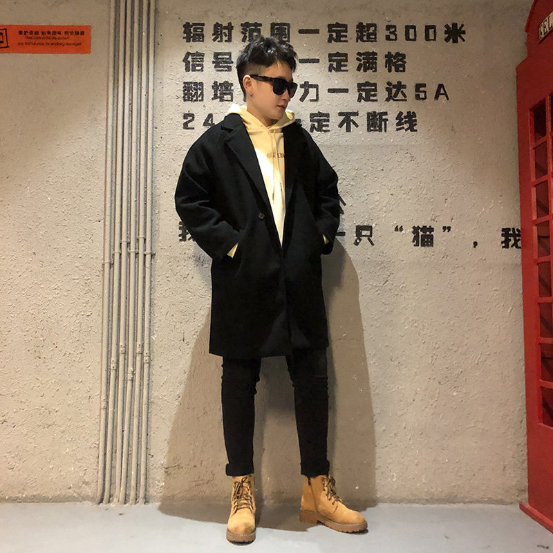 Freige Korean Style Casual Mid-Length Woolen Coat Casual Jacket Trendy Unisex