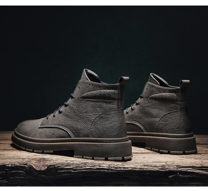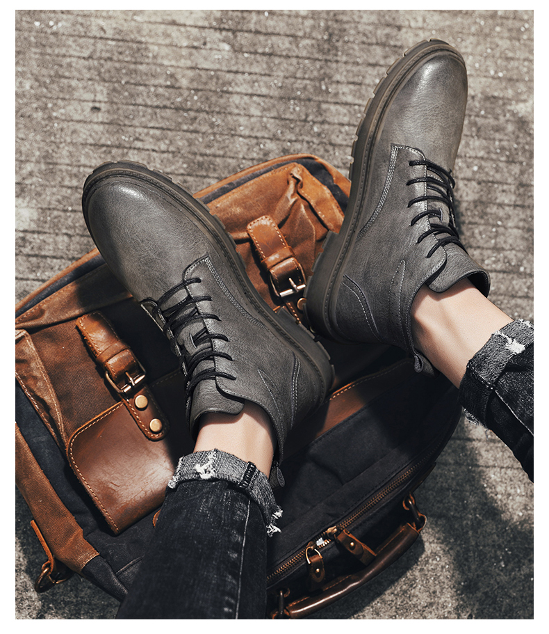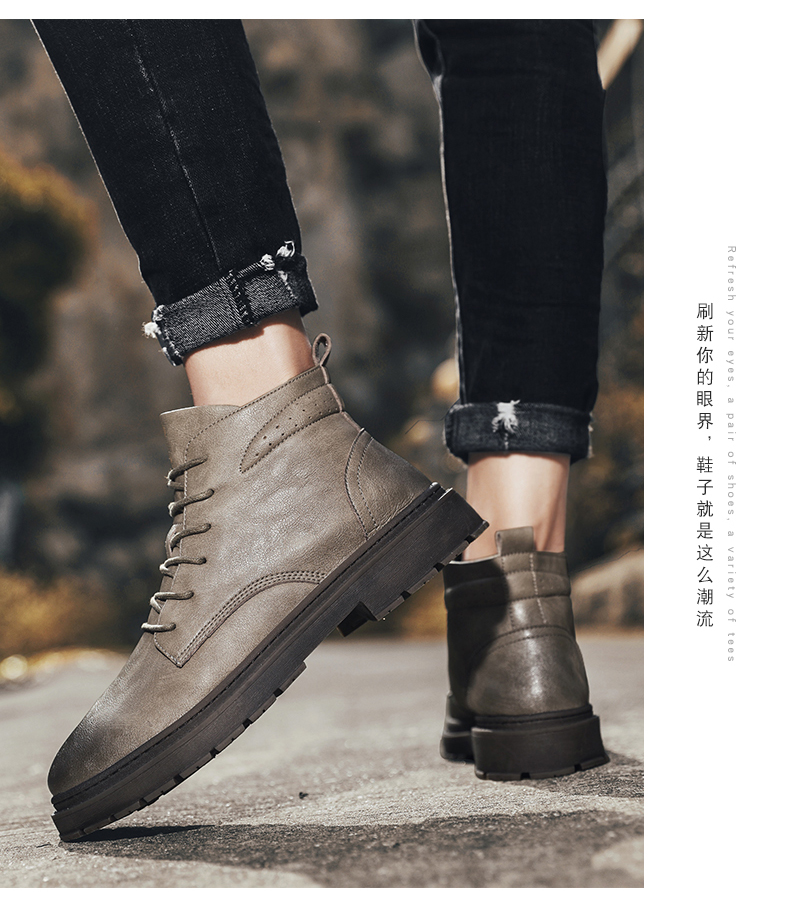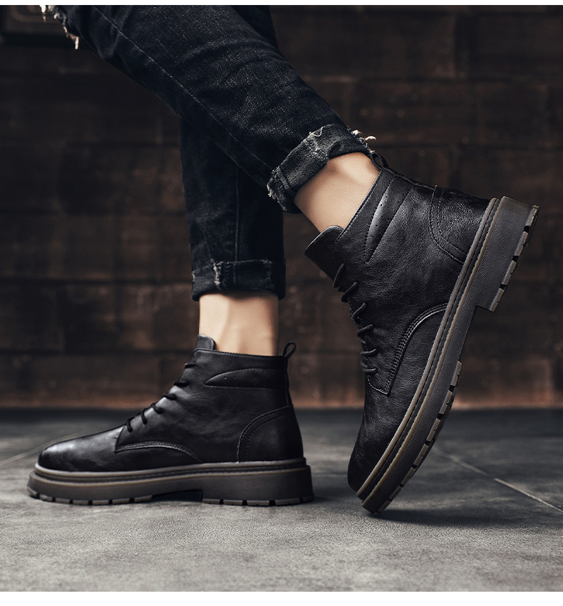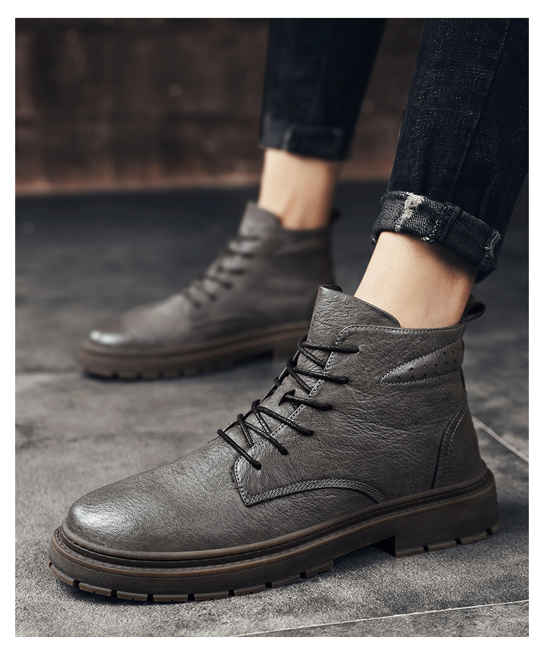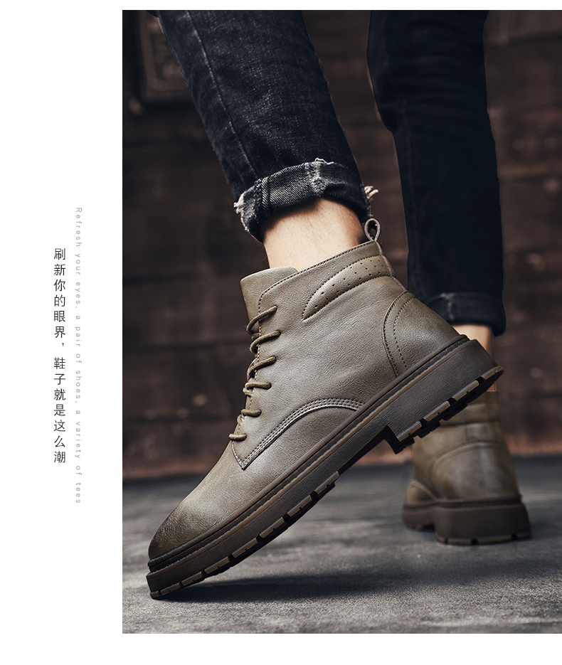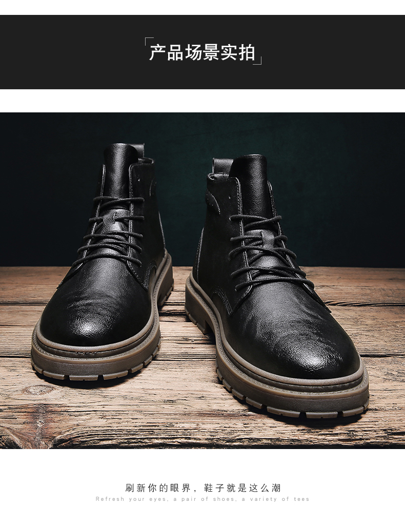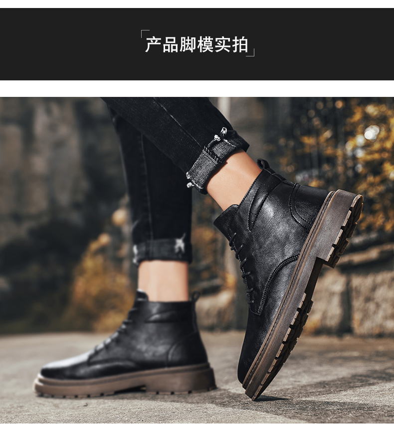 Martin boots men's high-top autumn and winter velvet warm mid-top leather boots British style trendy casual men's workwear short boots