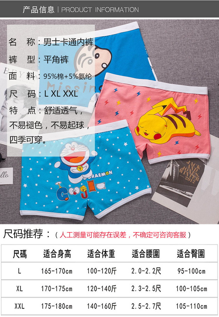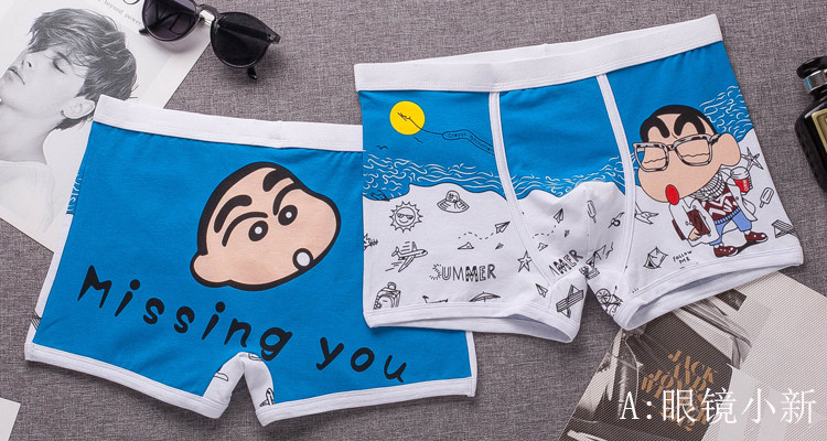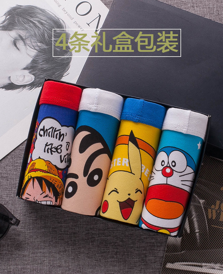 Underwear Men's Boxer Briefs Pure Cotton Breathable Cartoon Trendy Personalized Animation Medium Low Waist Cute Trendy Boxer Briefs