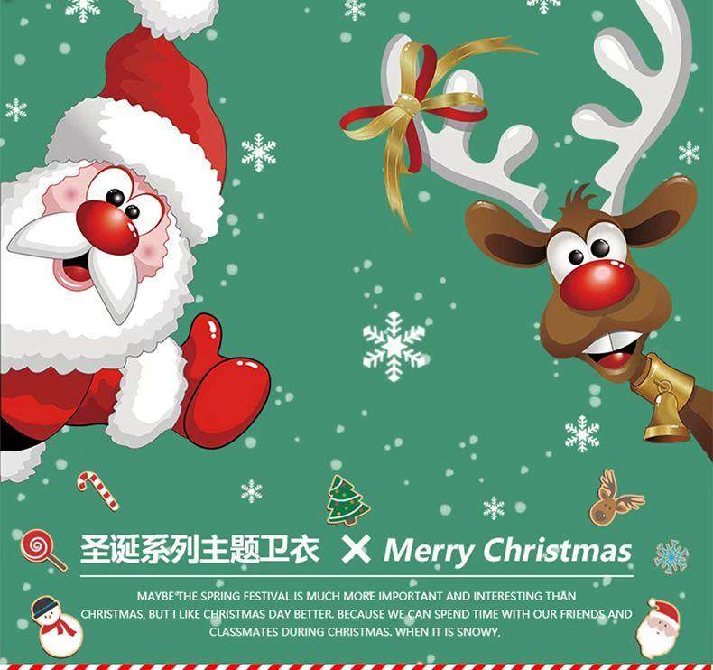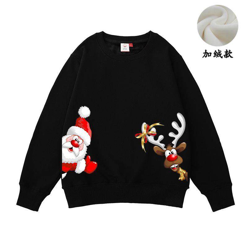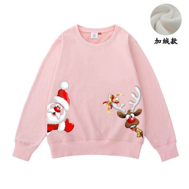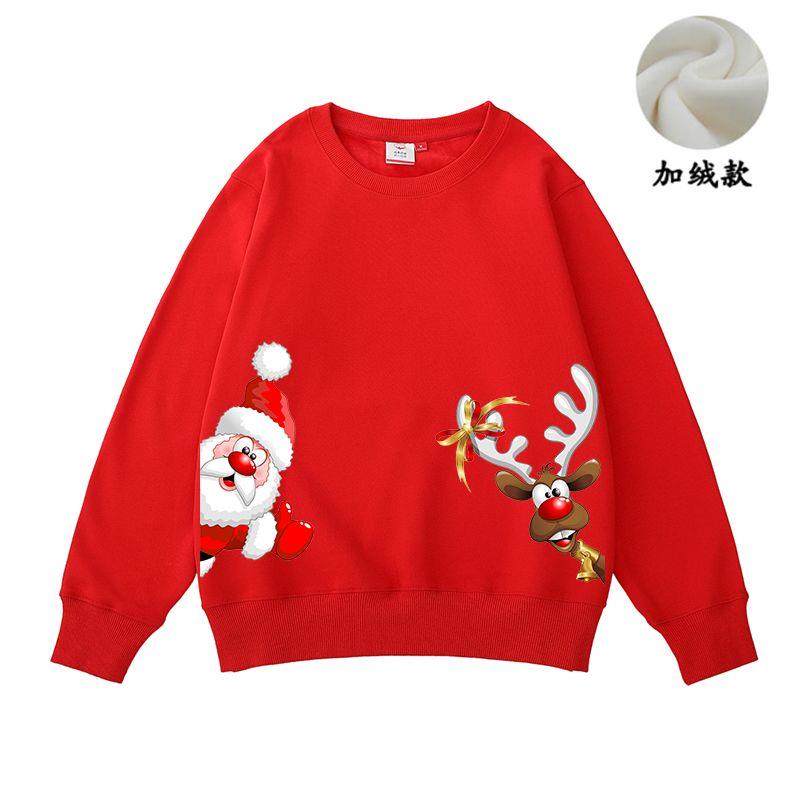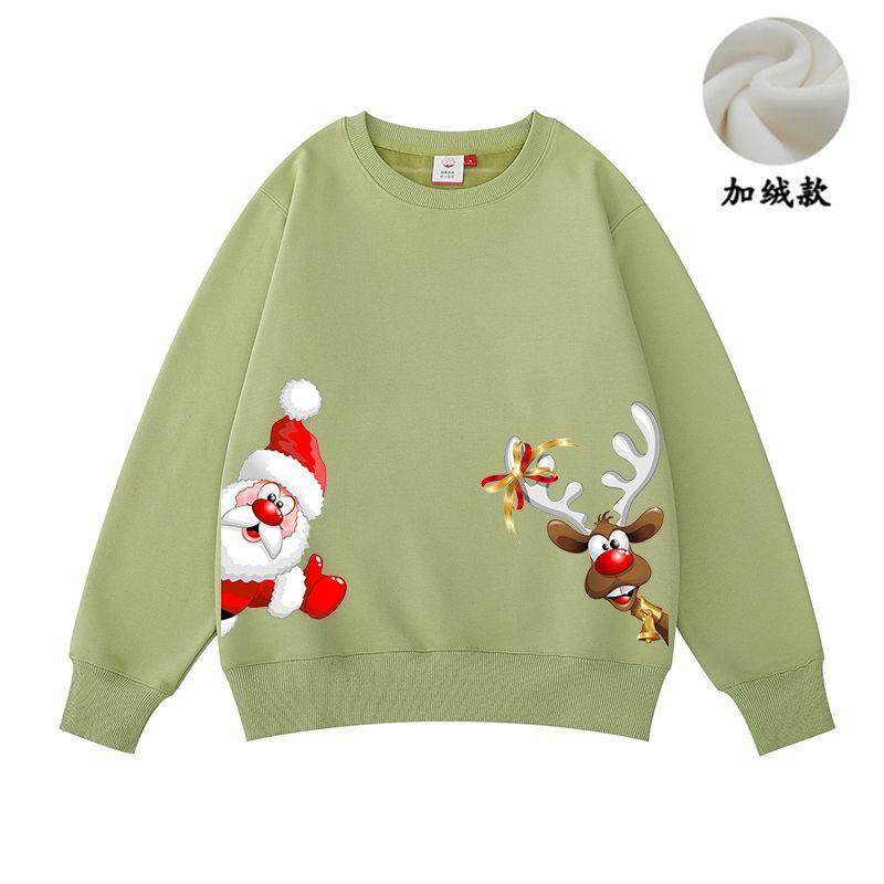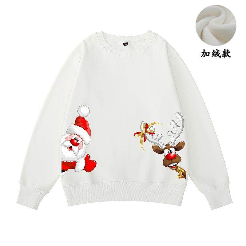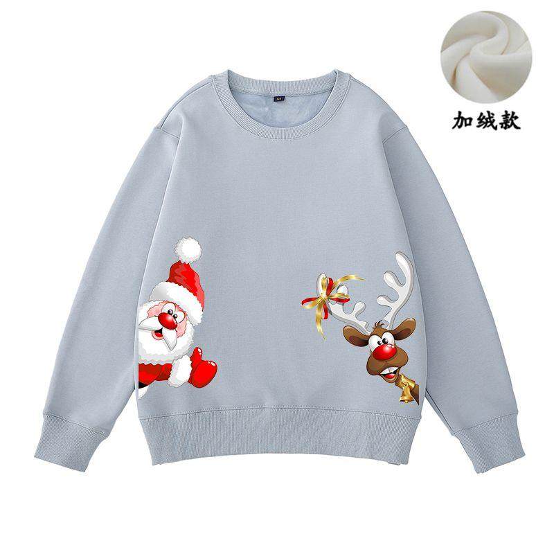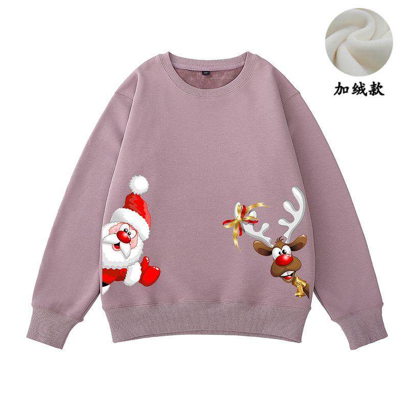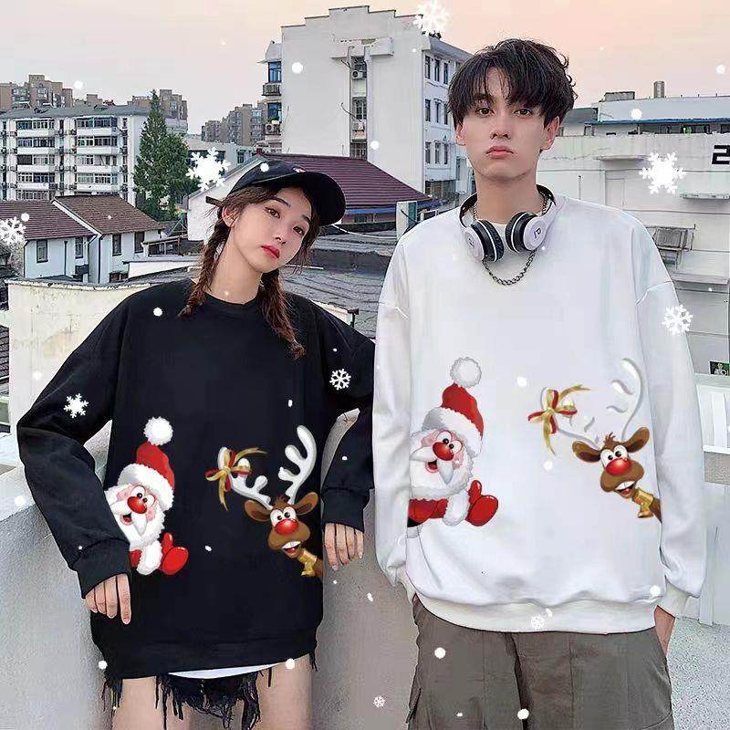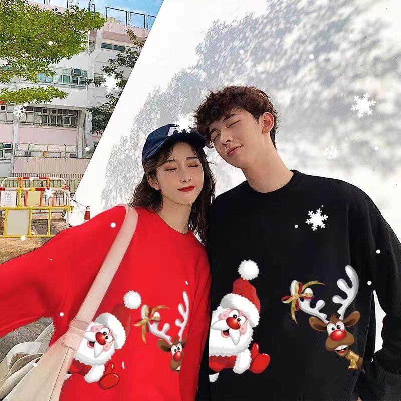 New christmas couple sweatshirt autumn and winter new loose plus velvet burgundy round neck printed elk set trendy