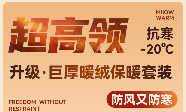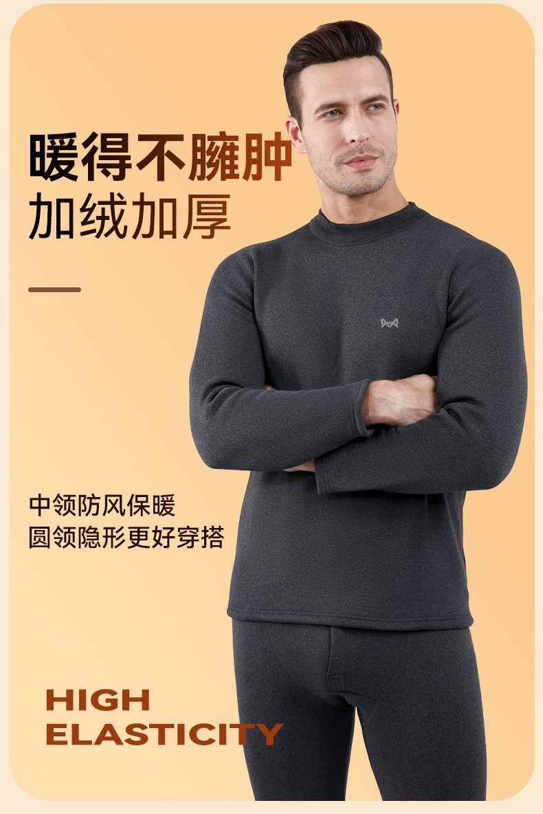 Catman thermal underwear men's suit thickened plus velvet cold-proof turtleneck cotton sweater autumn coat long trousers women's autumn and winter