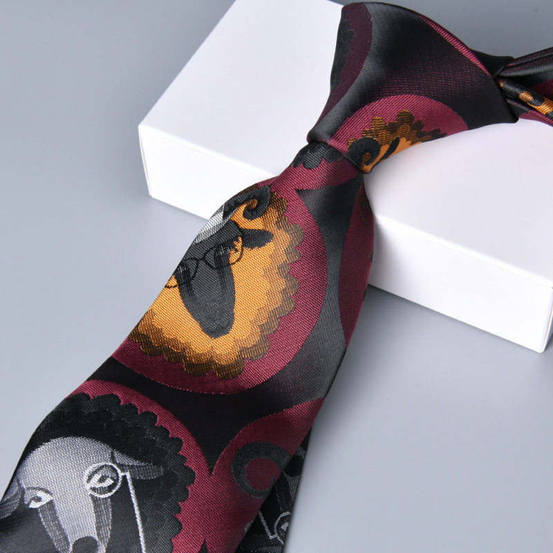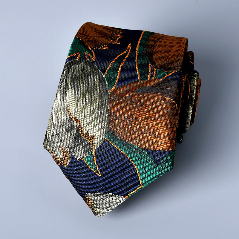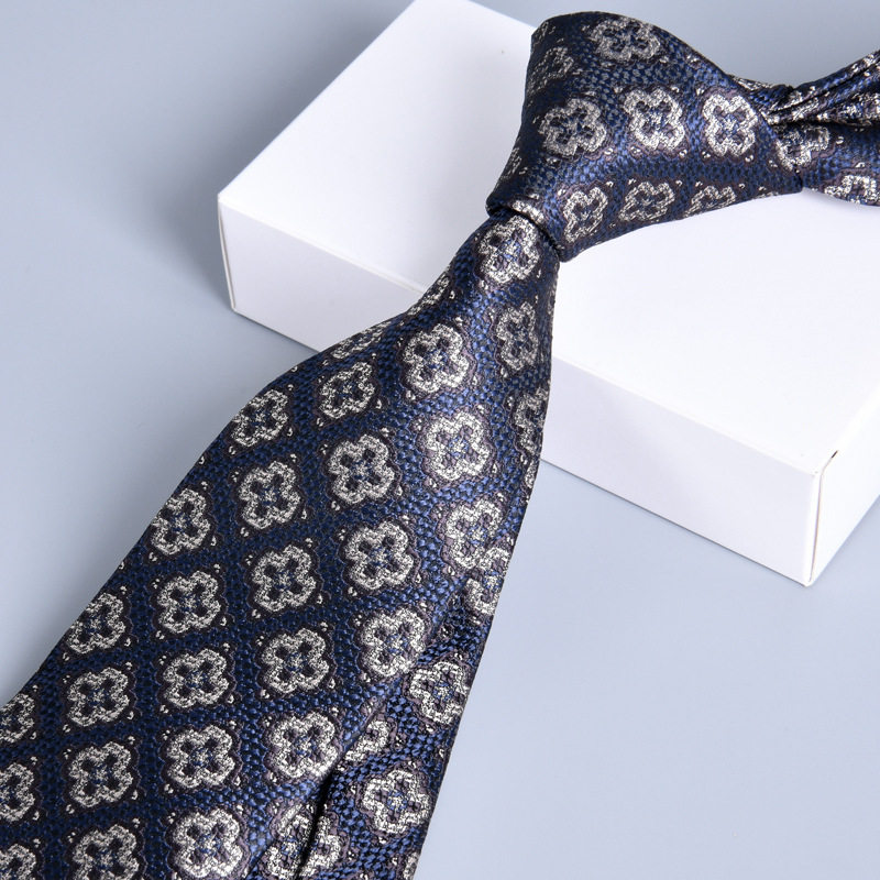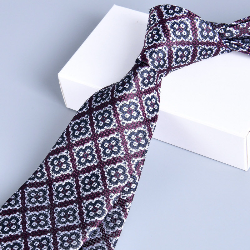 7cm高维密大提花领带男欧美复古正装商务英伦印花手打结婚新郎潮