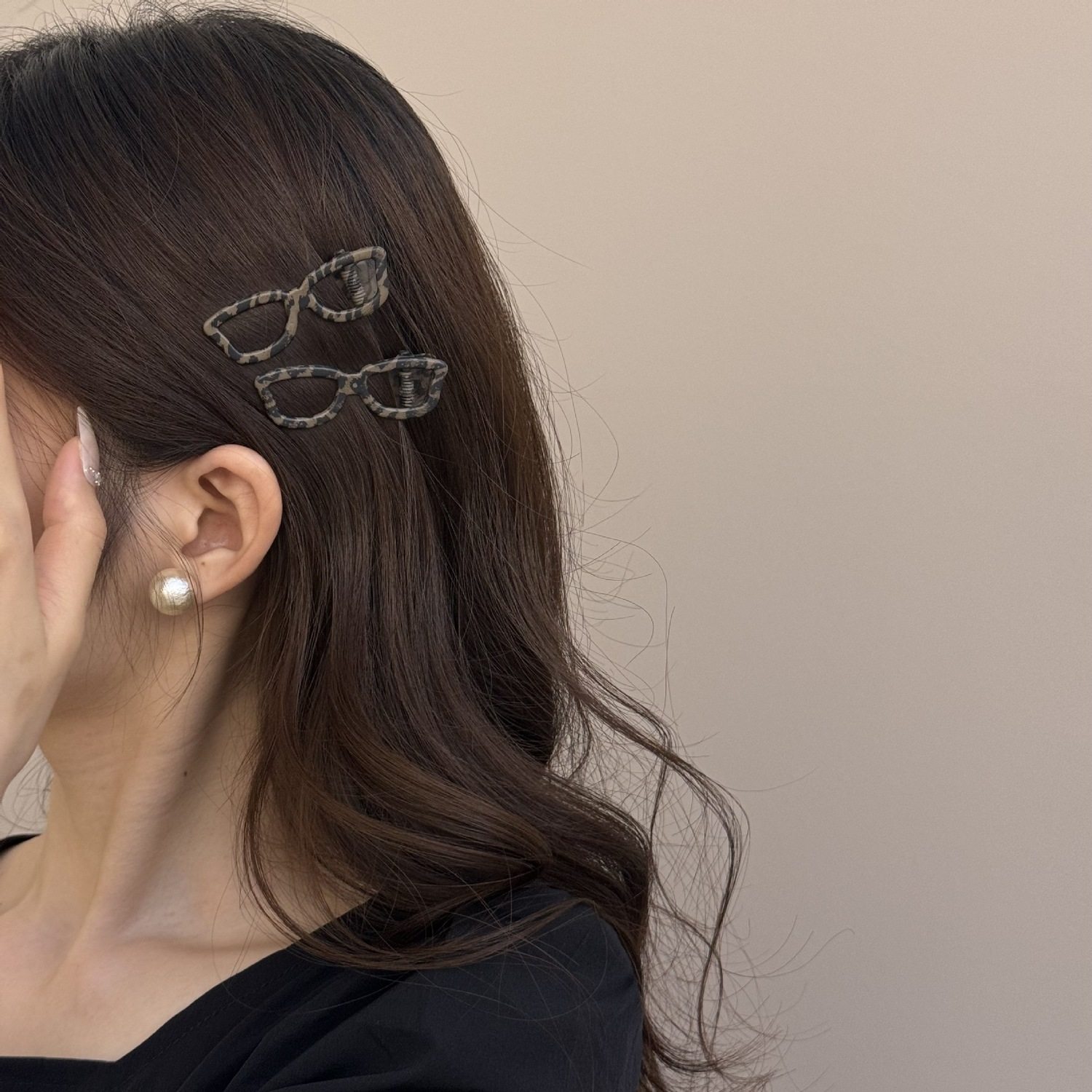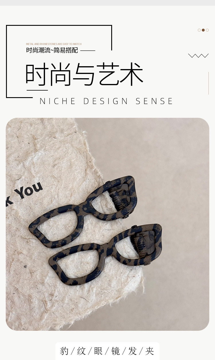 Korean new retro leopard print glasses side hair clip niche design 2025 summer fashion cute bangs clip
