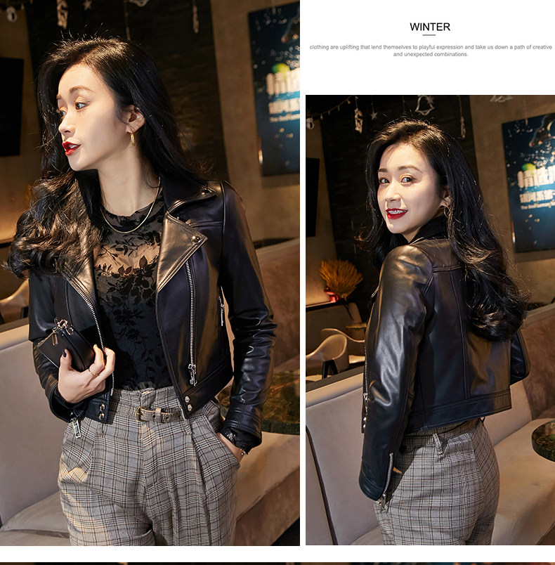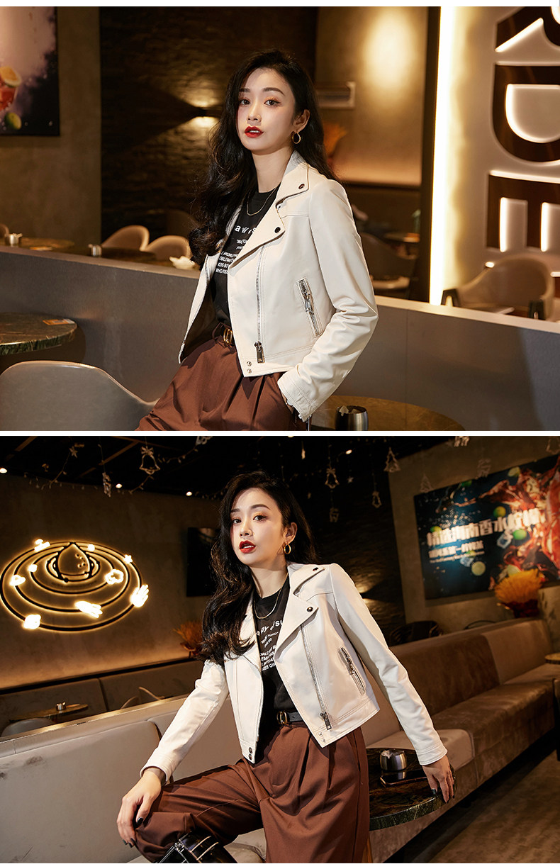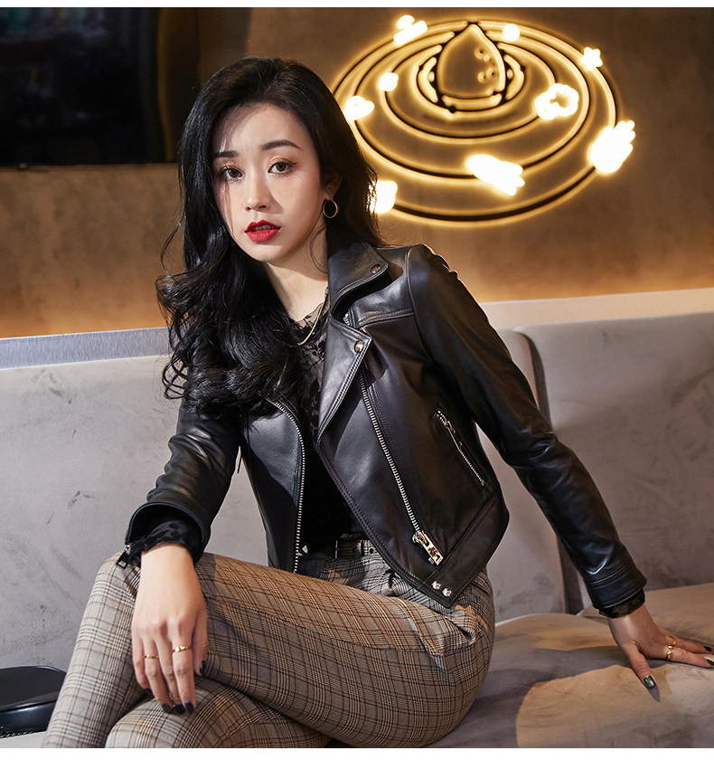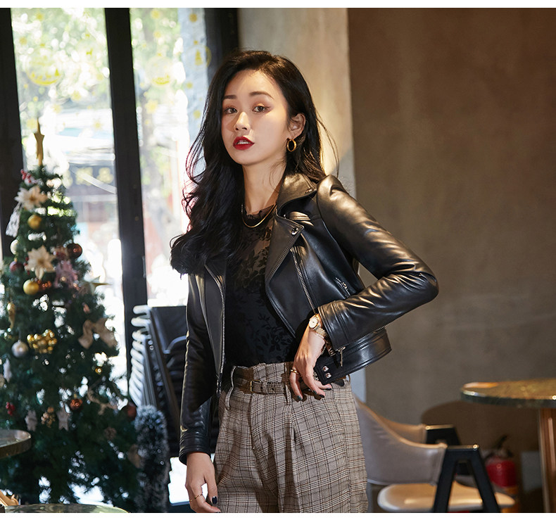 2025 new hot style European sheepskin leather jacket women's short motorcycle jacket jacket little man jacket