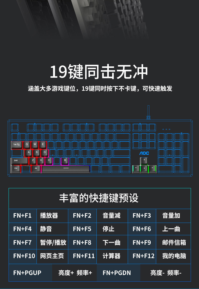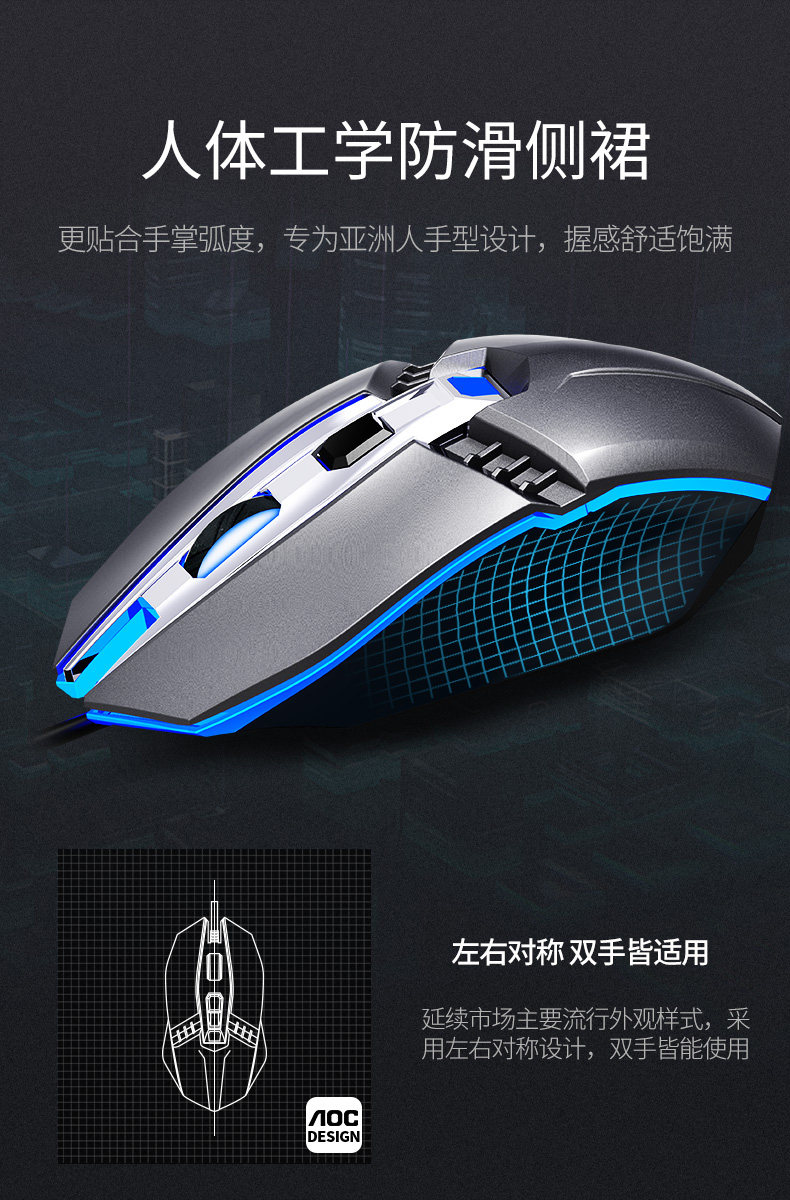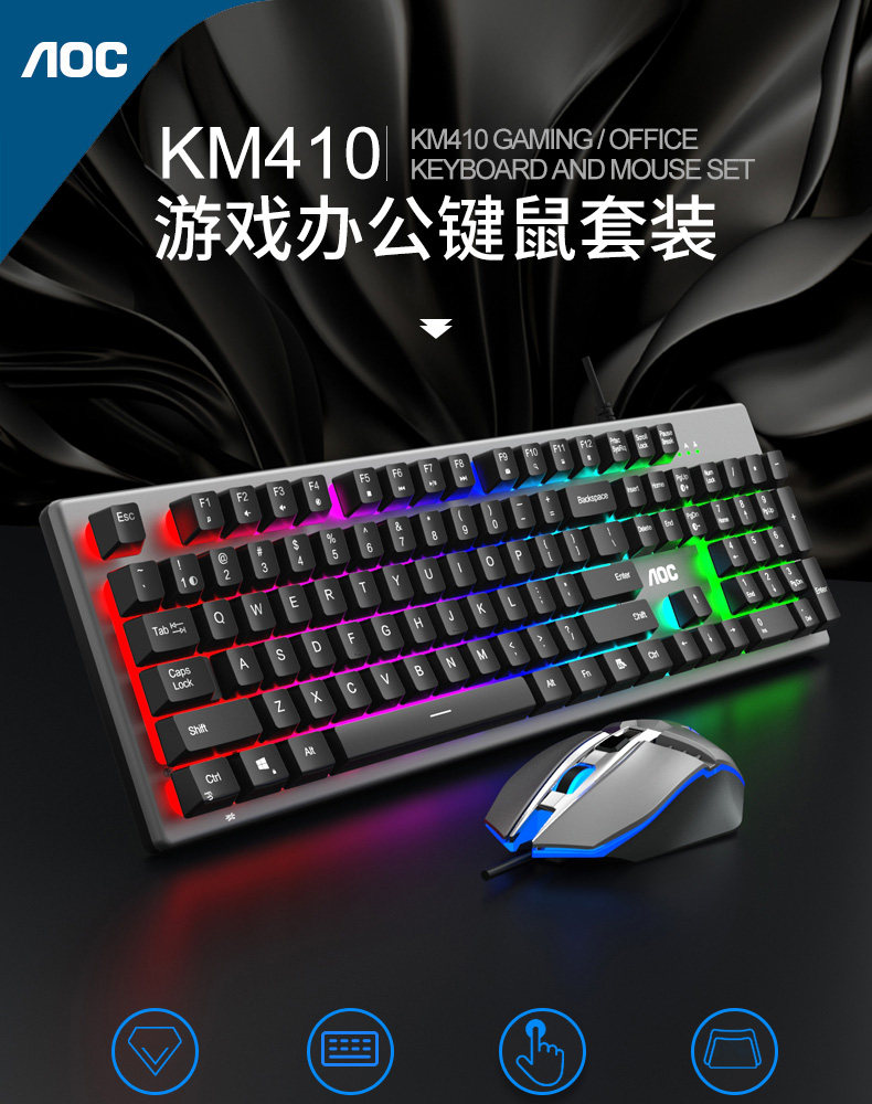 Aoc km410 gaming keyboard and mouse set aluminum alloy backlight e-sports game metal set eating chicken internet cafe e-sports