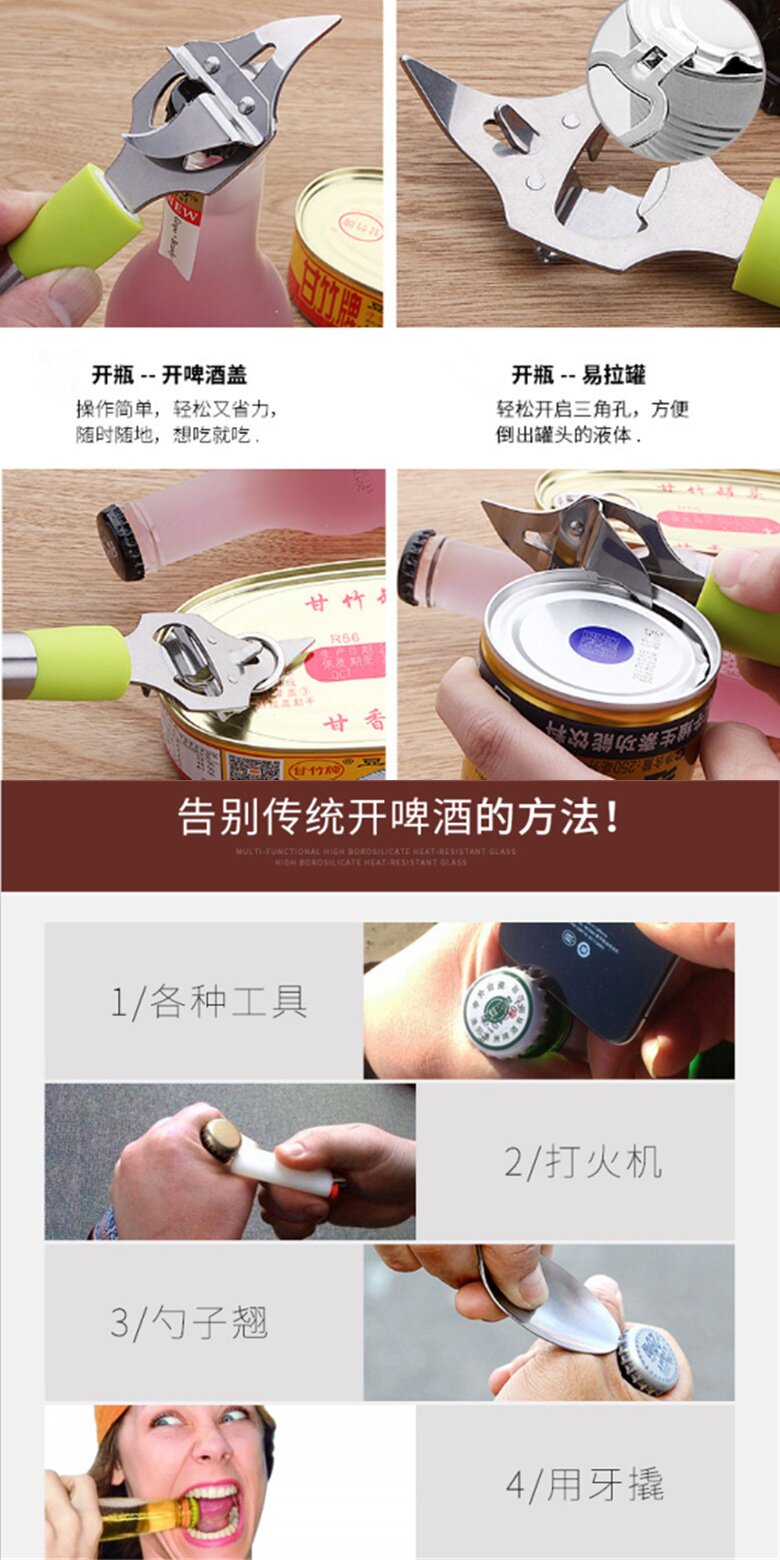 不锈钢啤酒开瓶器多功能开罐刀铁皮罐头刀罐器开罐刀多用开罐器