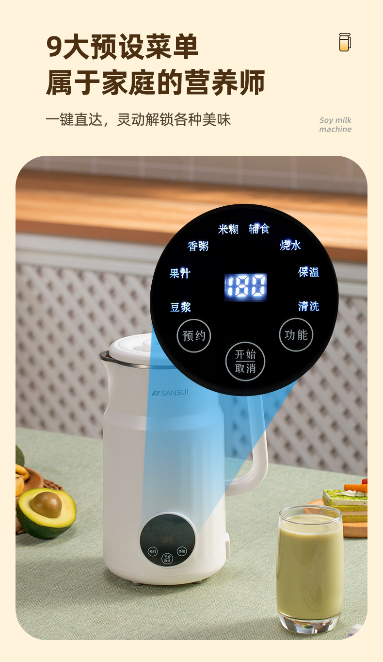 Japan's Shanshui Soybean Milk Maker Home Automatic Multi-Function Wall-breaking Small Mini Rice Porridge 1-2 People No Cooking No Filtration