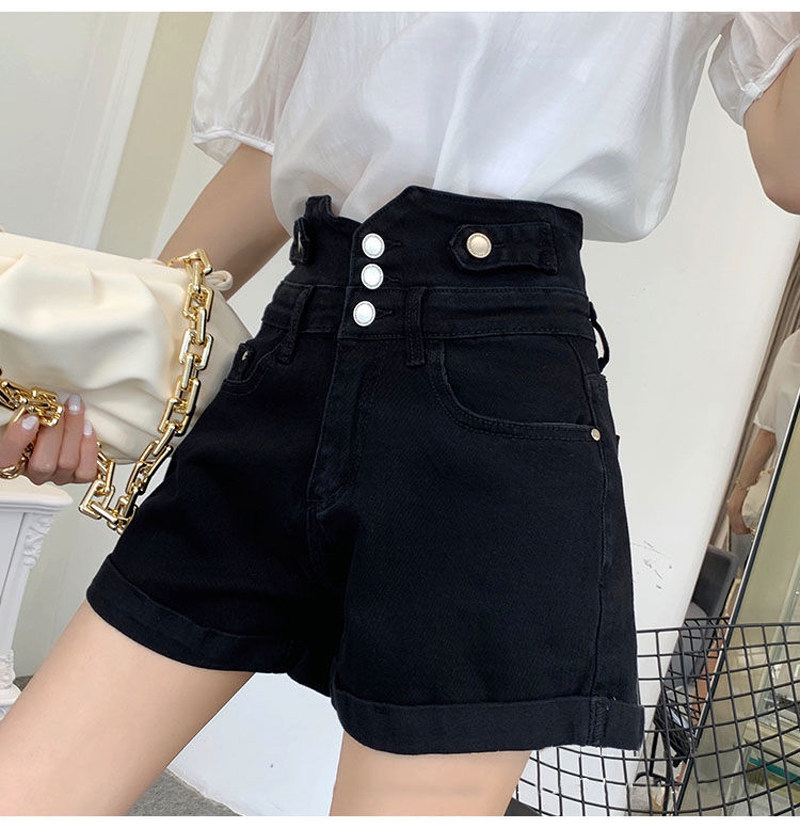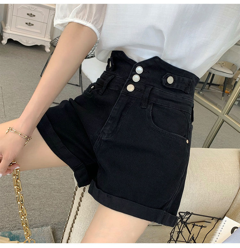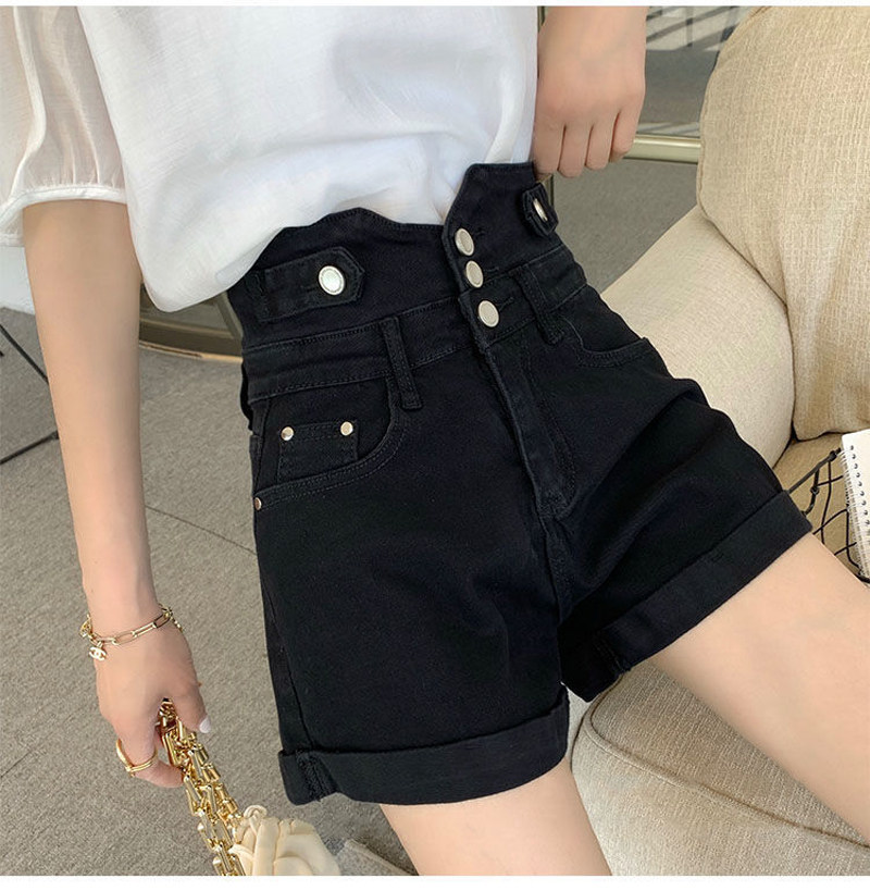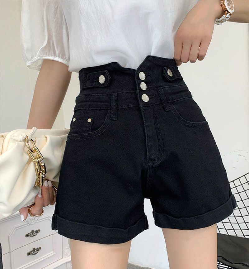 Джинсовые шорты с высокой талией для женщин, лето 2025, новинка большого размера, толстые мм, модные утягивающие черные шорты трапециевидной формы в корейском стиле