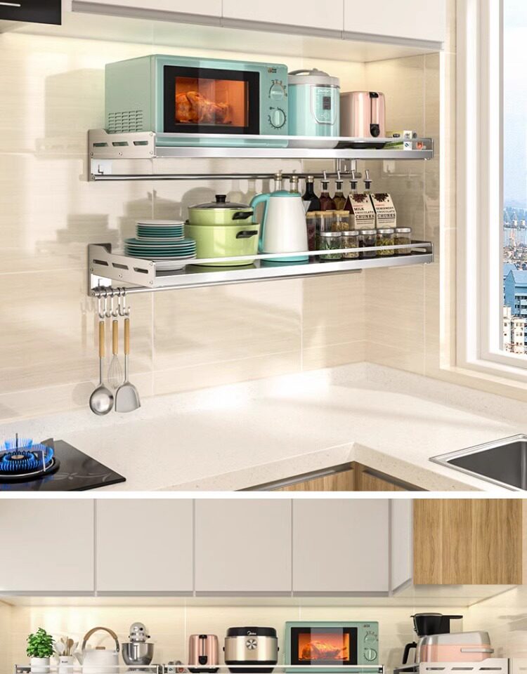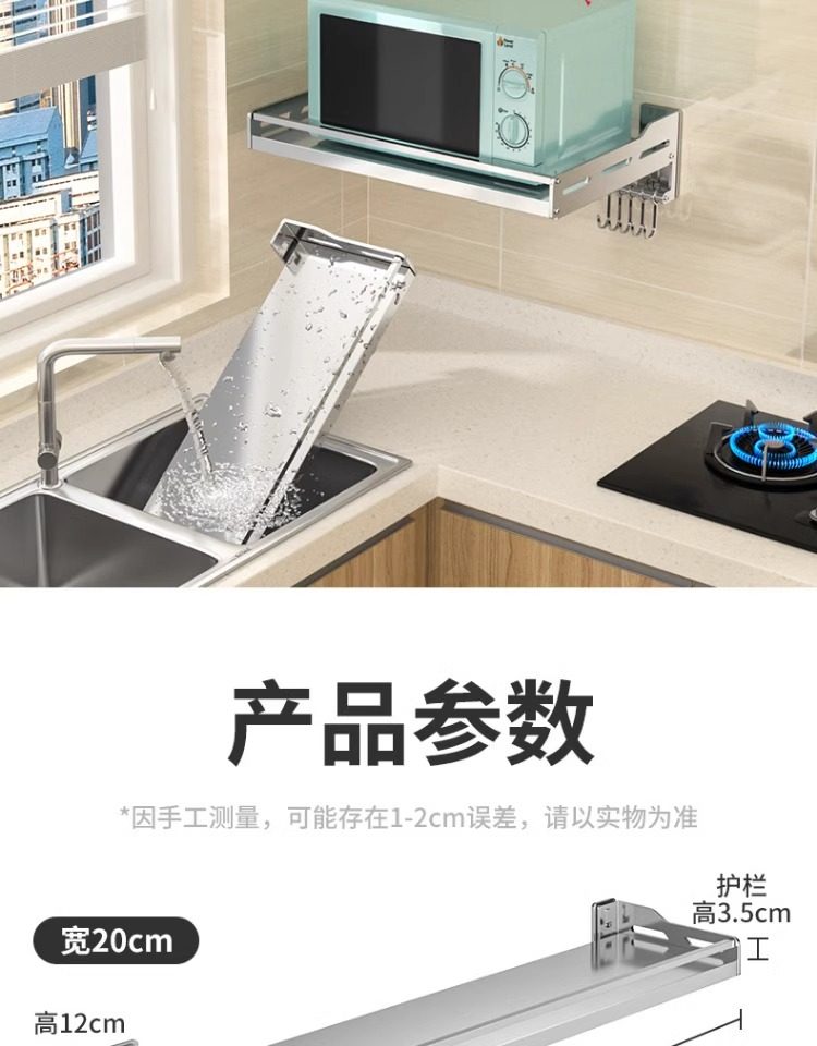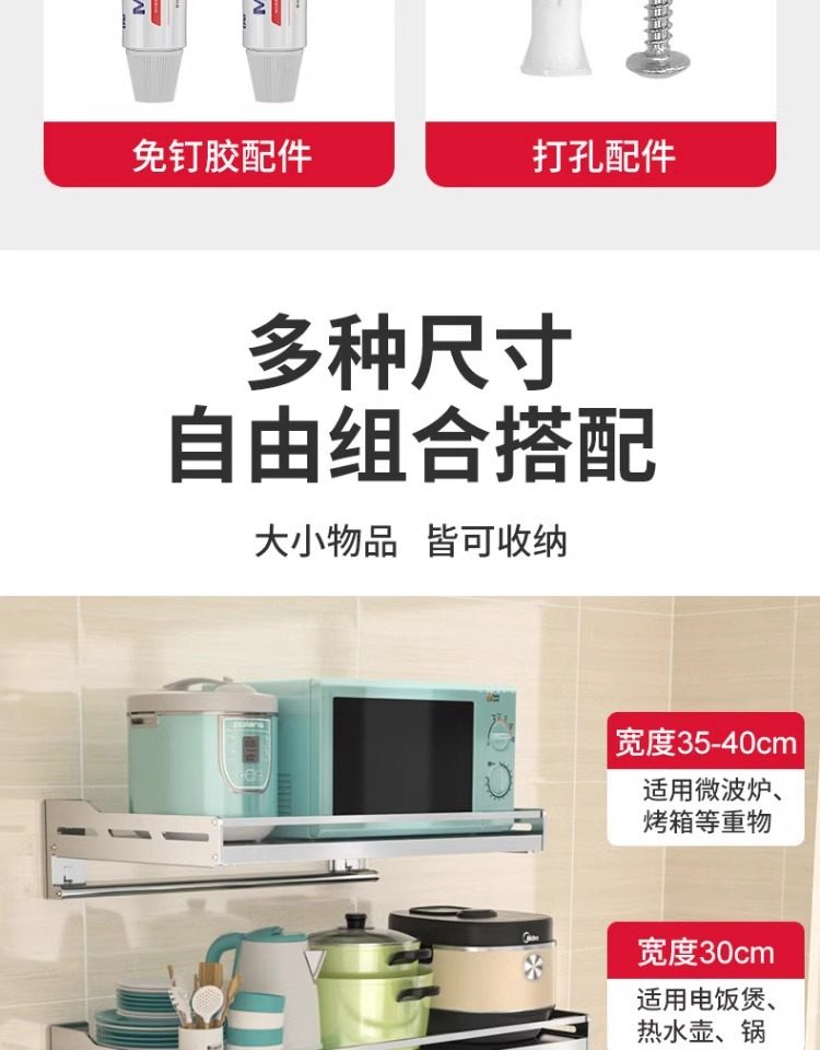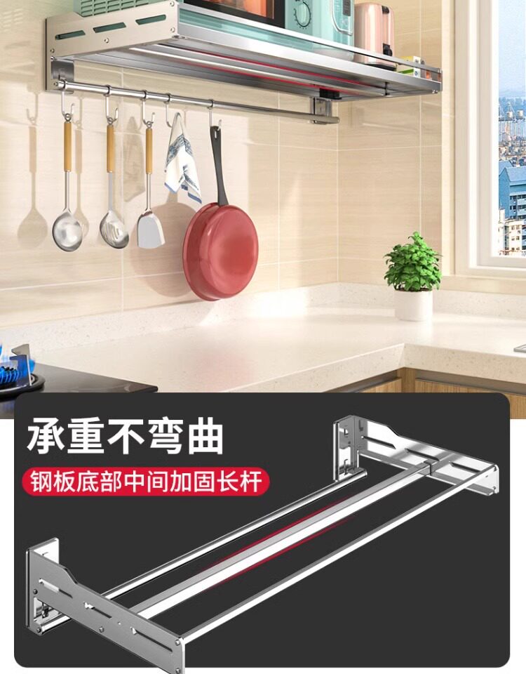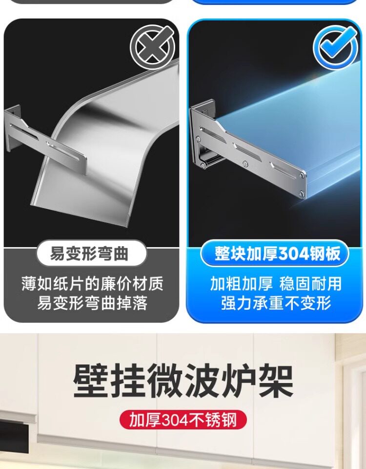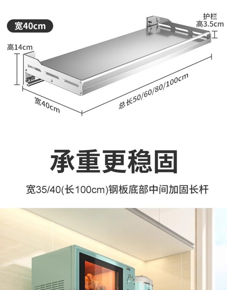 德国免打孔304不锈钢壁挂微波炉架子置物架墙上烤箱收纳支架挂墙