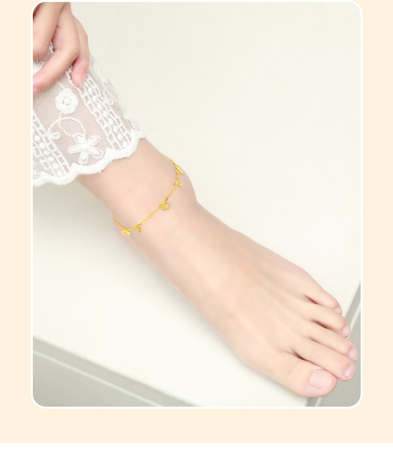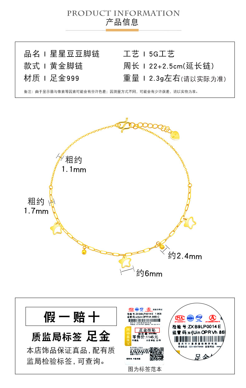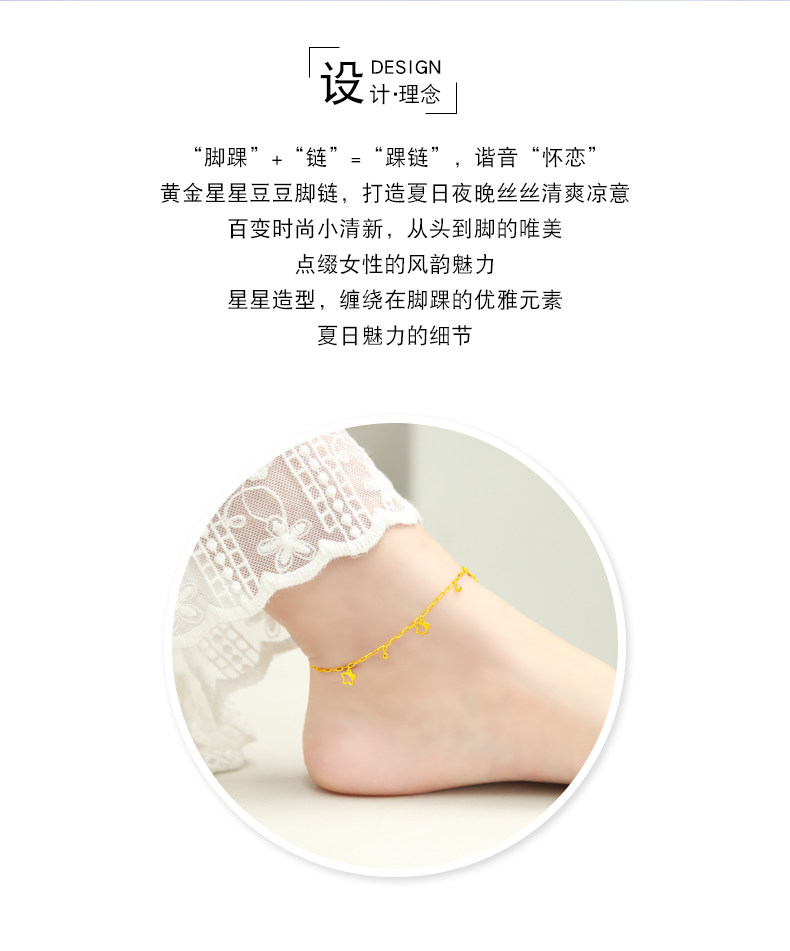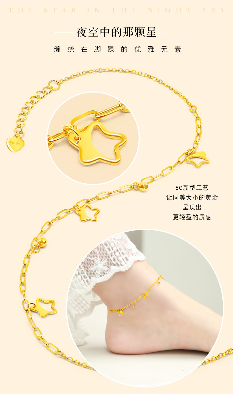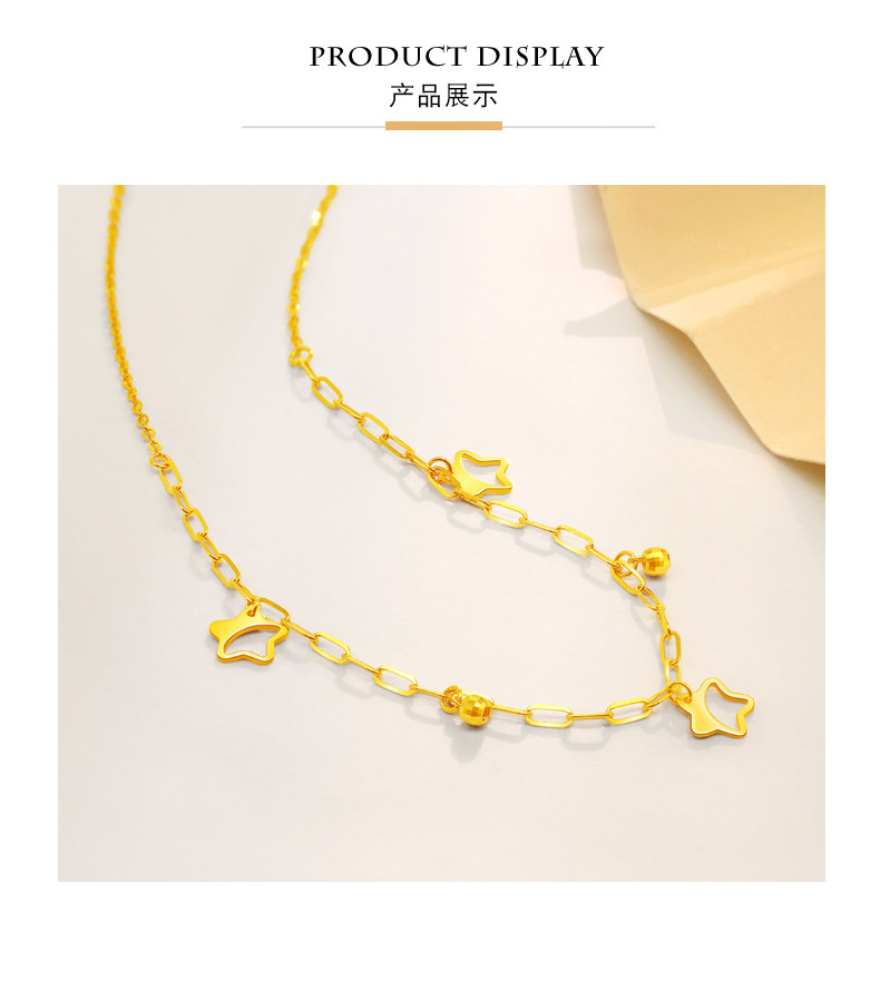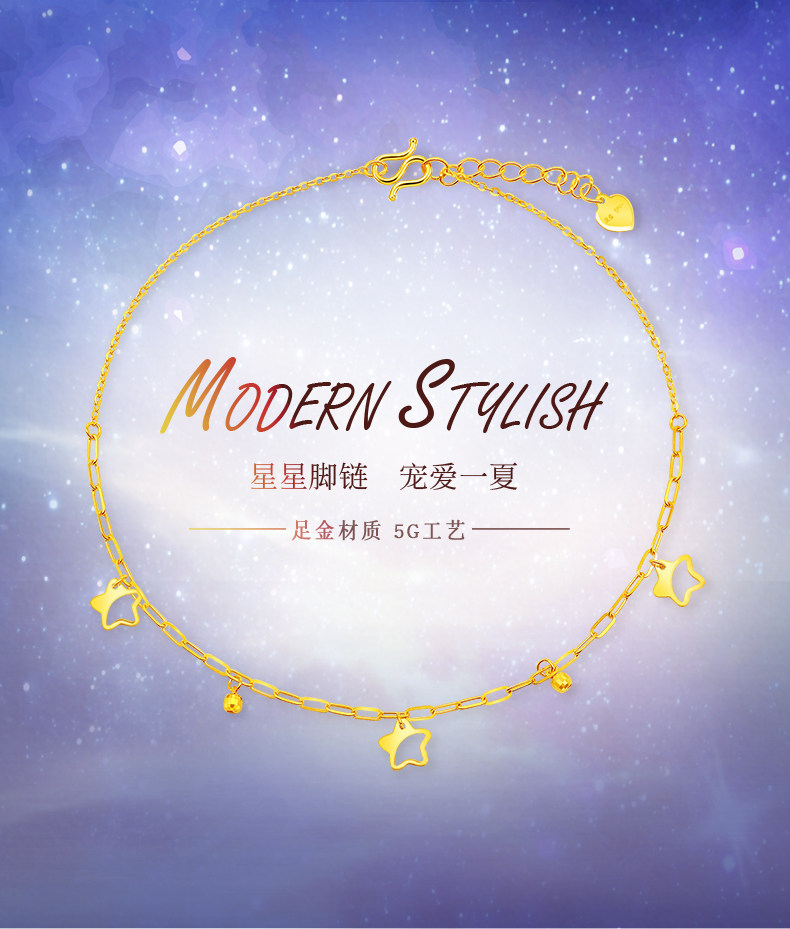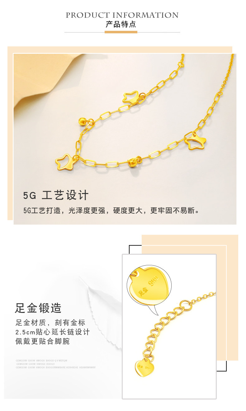 Joyería Zhongxin, tobillera dorada con estrella de cinco puntas, cadena de tobillo de oro puro 999 para mujer, cadena de tarjeta estilo ab artesanal 5G, tobillera auténtica
