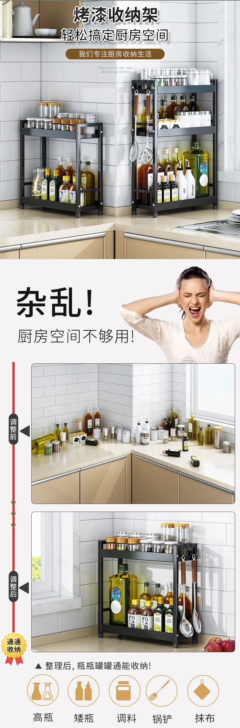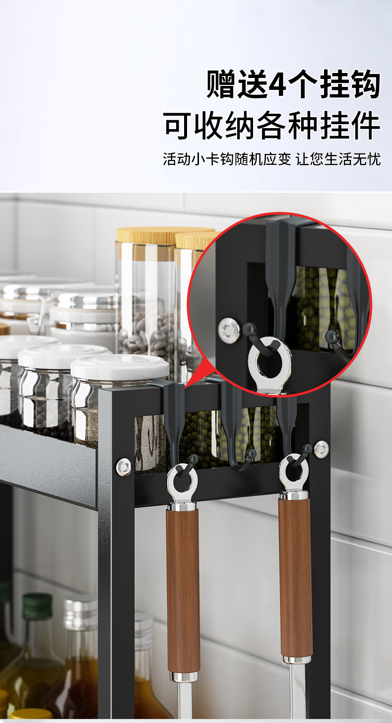 Stainless Steel Kitchen Spice Storage Rack Countertop Narrow Small Size Multifunctional Condiment Oil Salt Sauce Vinegar Storage Shelf