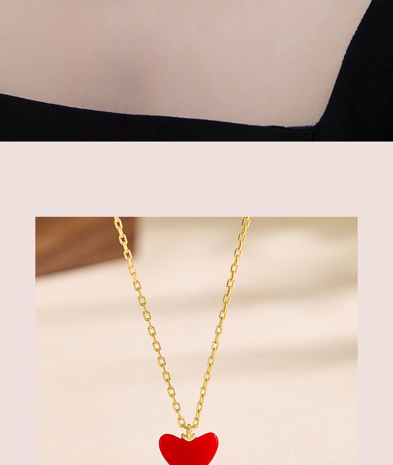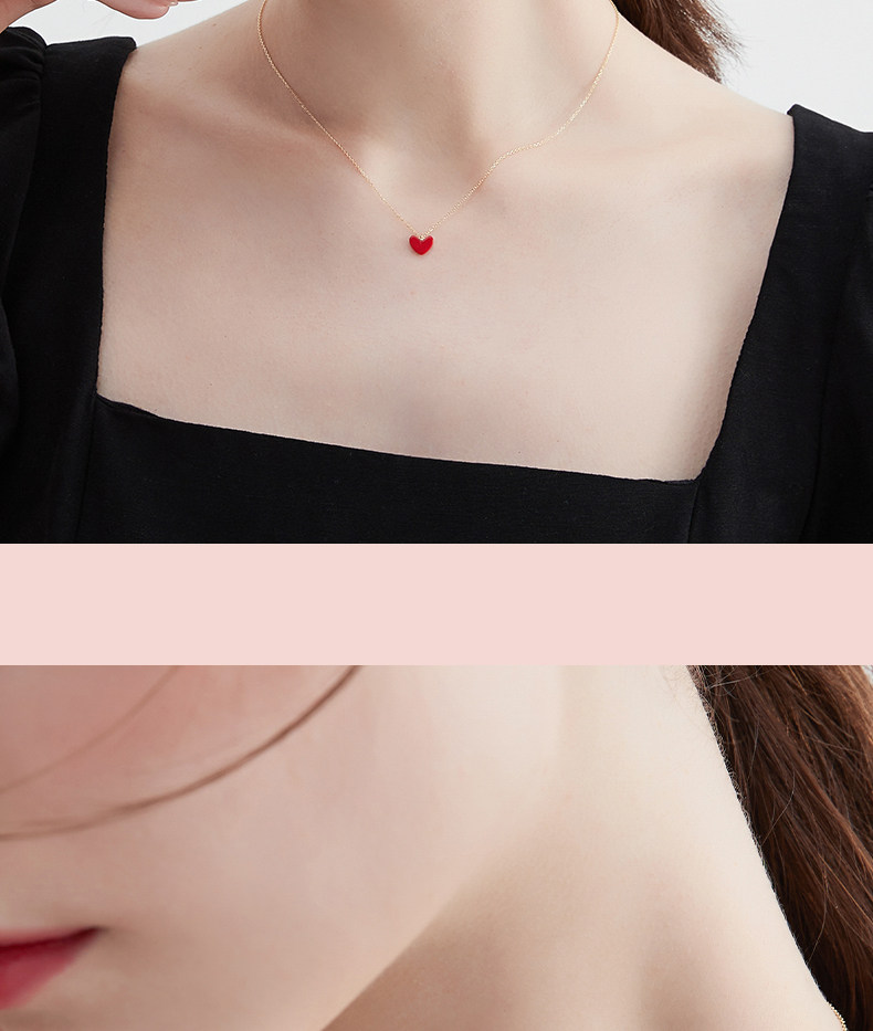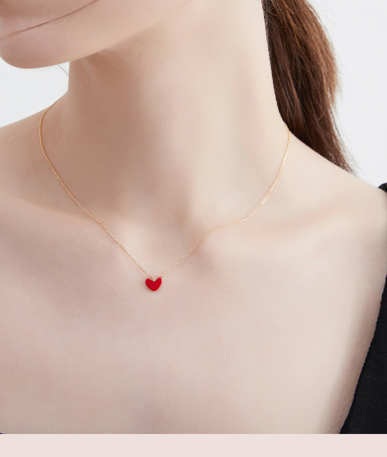 Little red heart necklace women's S925 silver light luxury high-end temperament red love clavicle chain 2026 New Year accessories