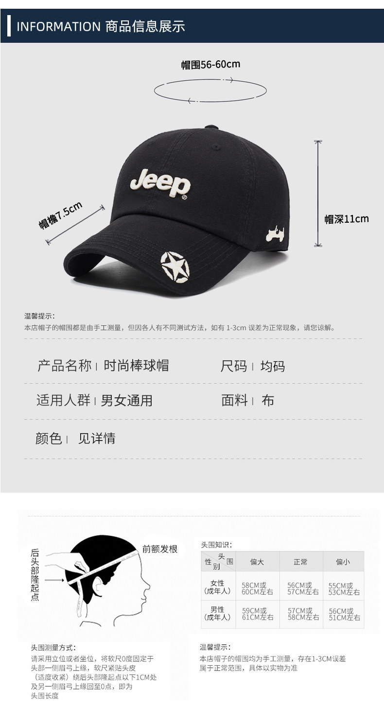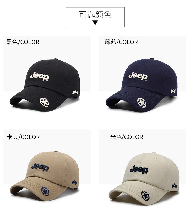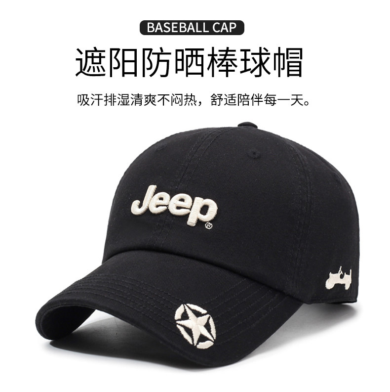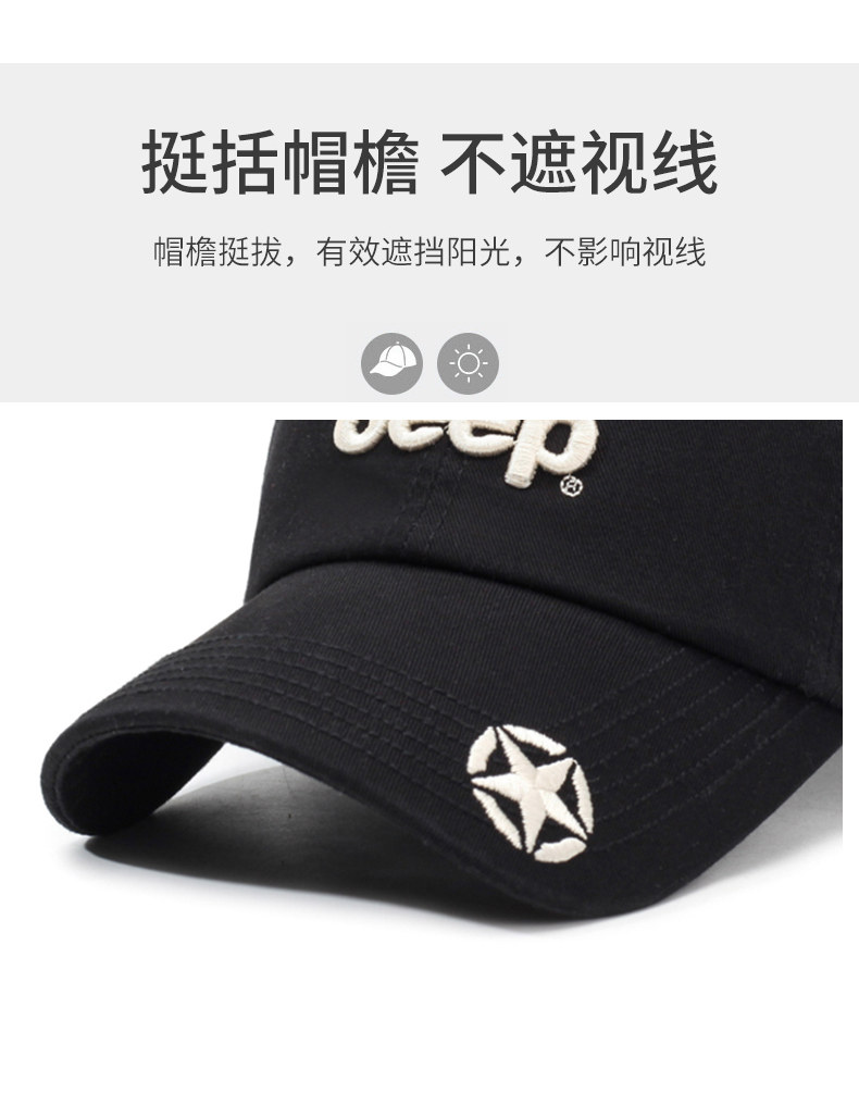 Jeep jeep baseball cap for men and women large head circumference embroidered letter cap versatile outdoor hat sun protection hat