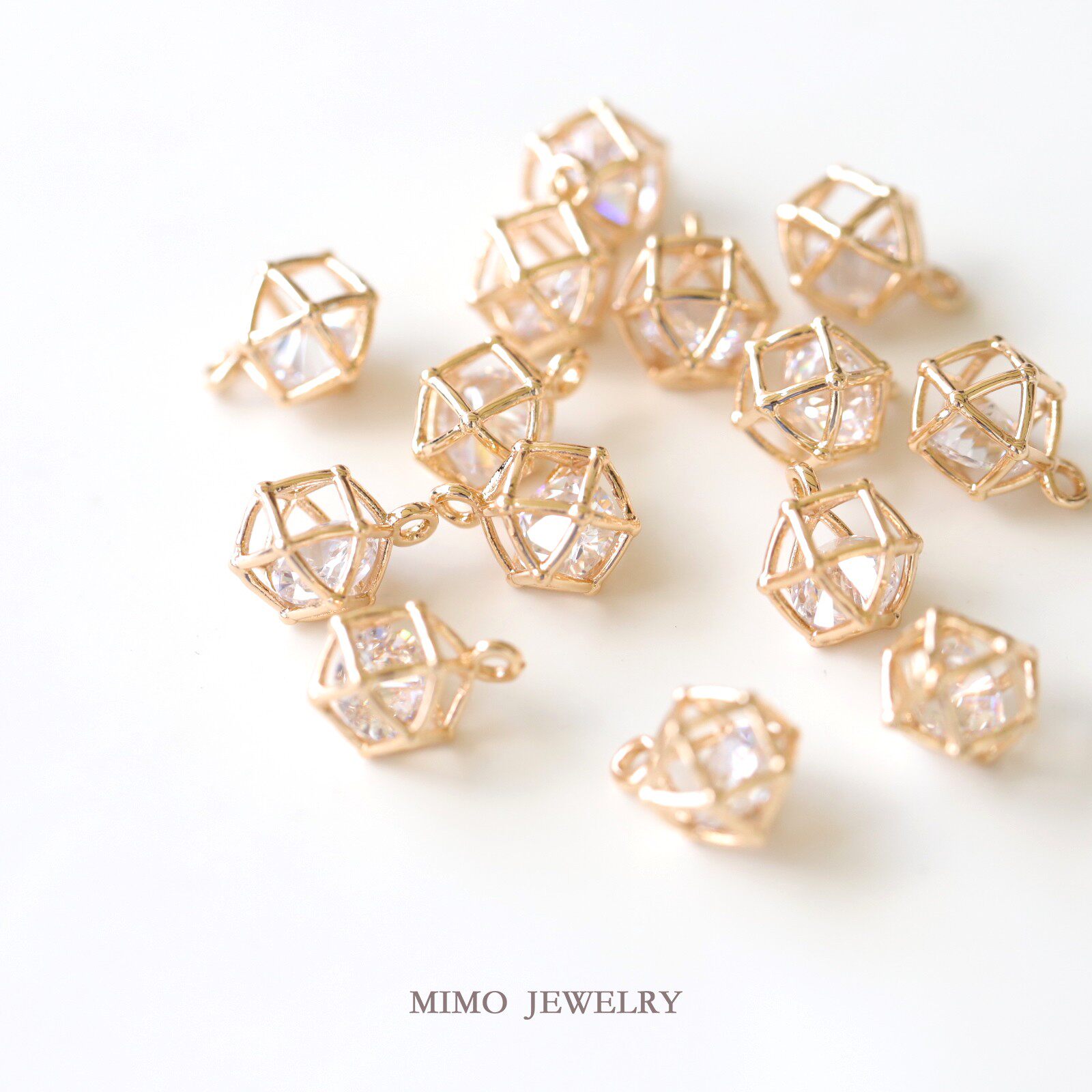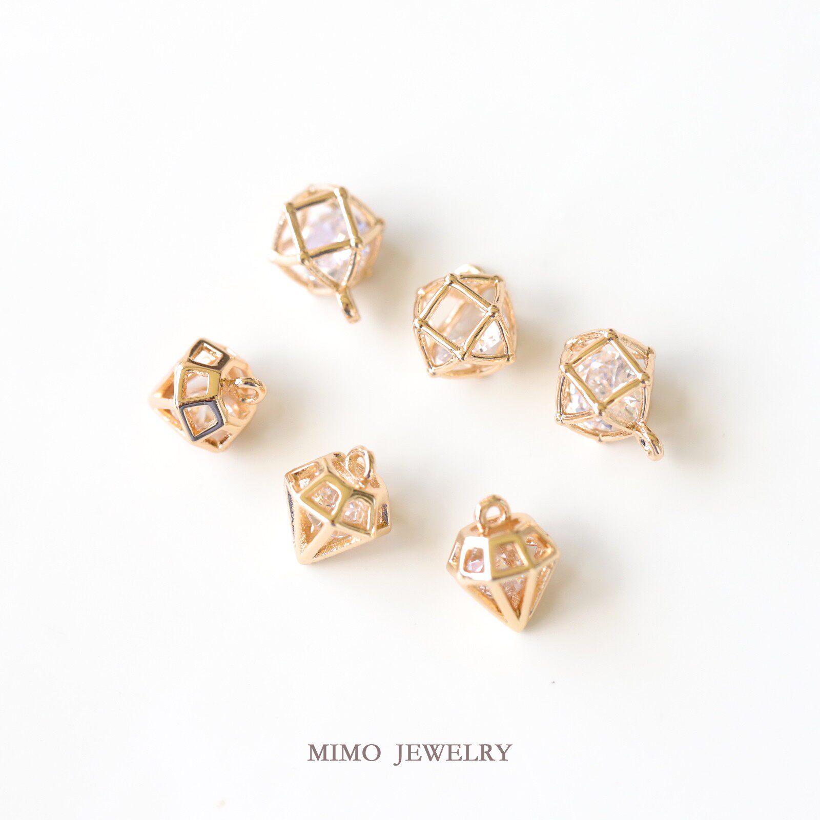 Mimo accessories color-preserving copper-plated real gold hollow zircon diamond-shaped multi-faceted hydrangea pendant diy handmade accessories