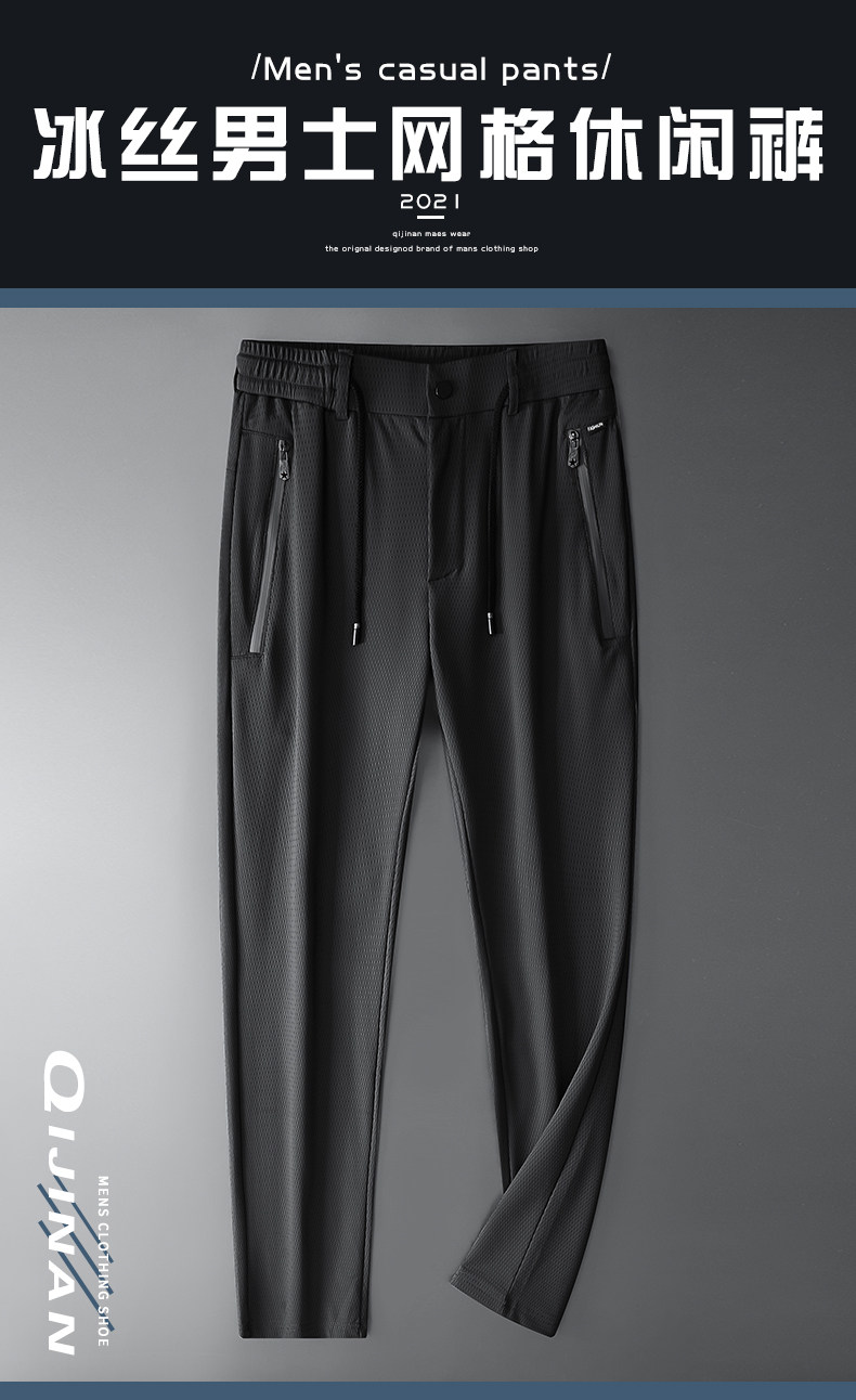 夏季丝滑休闲裤男宽松超薄款速干裤子男士运动裤冰丝男裤直筒长裤