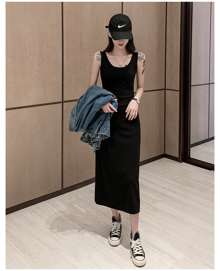 Black suspender skirt high-end skirt 2025 new women's sleeveless vest dress slim suspender dress long autumn