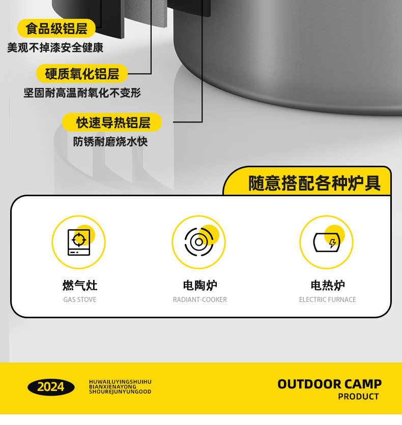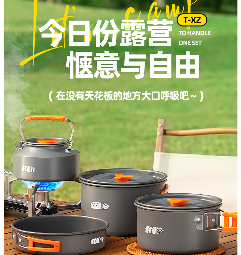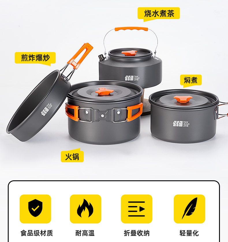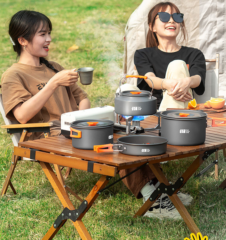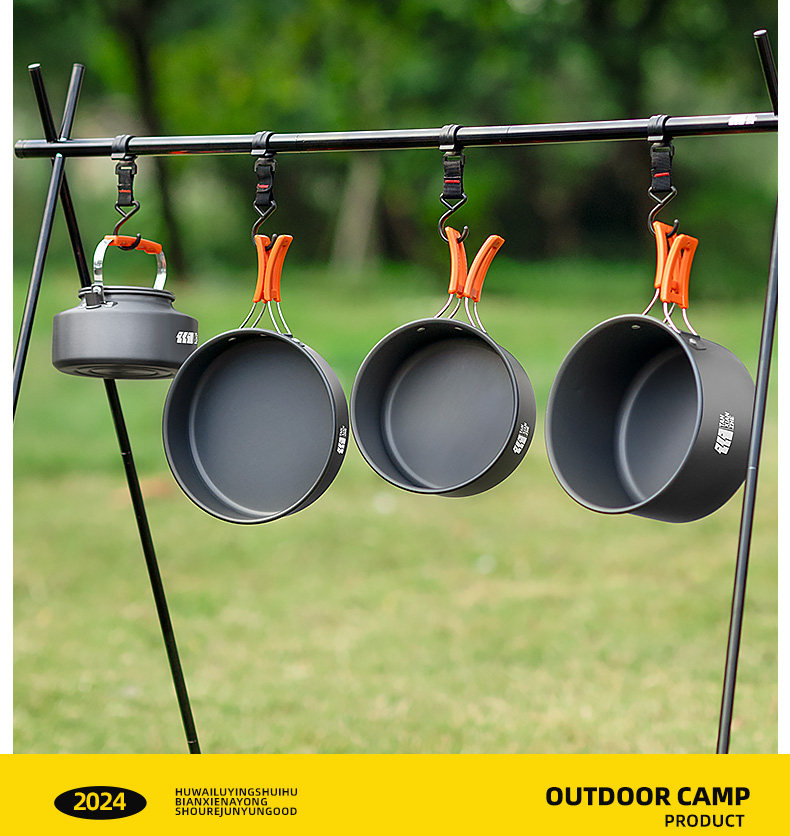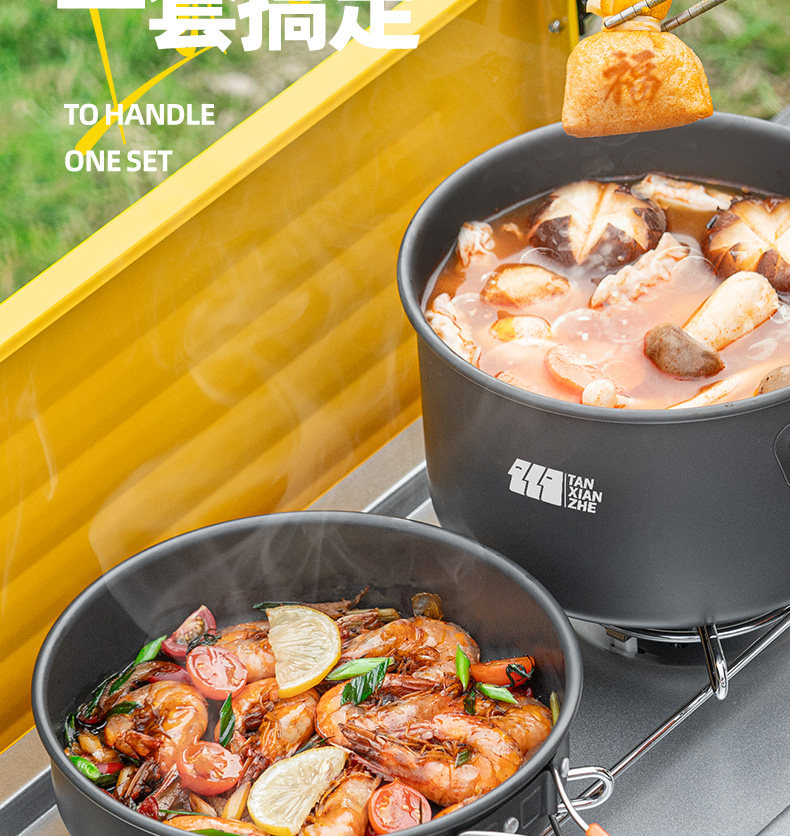 Outdoor pots, stoves, kettles, camping and picnic equipment, full set of pots, camping and cooking utensils, outdoor hot pot pots