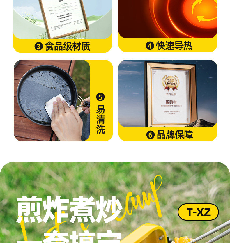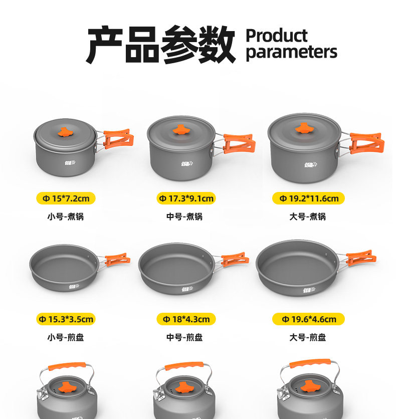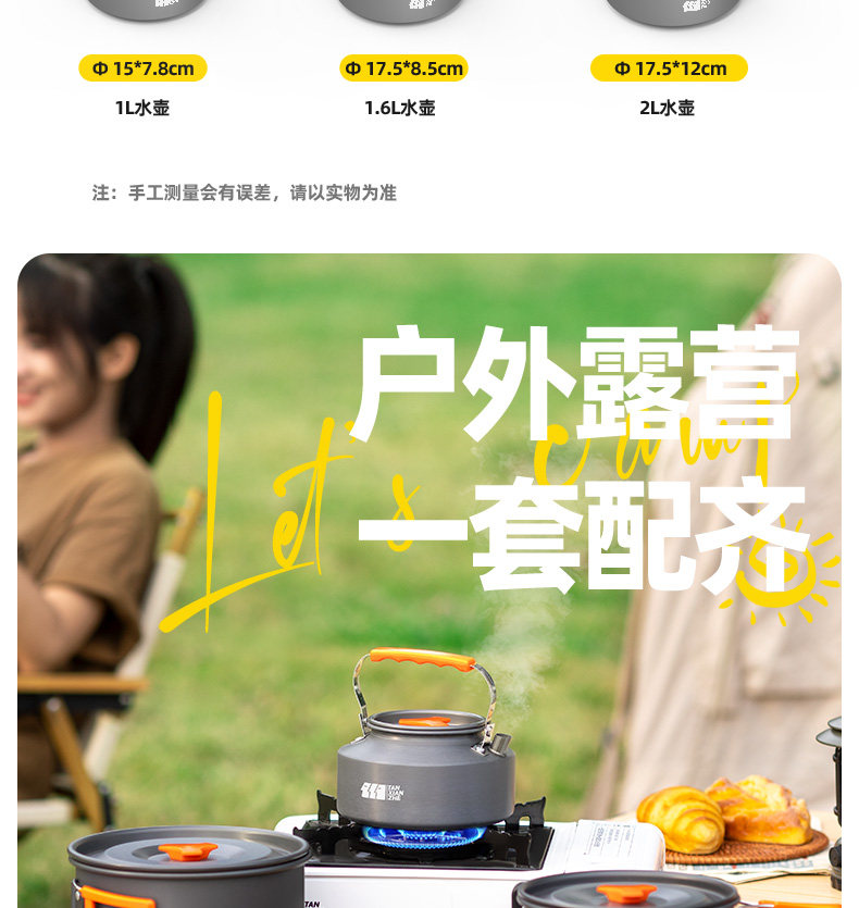 Sort by color 3-4-person kettle set combination (1.1L kettle + medium cooking pot + medium frying pan + accessories),3-4-person kettle set combination + thickened storage bag,4-5-person kettle set combination (1.6L kettle + large cooking pot + large frying pan + accessories),4-7 people kettle set combination (2 cooking pots + 1 frying pan + 1 kettle + accessories),4-7-person kettle set combination + thickened storage bag,Clearance Benefits Wood grain frying pan deliver storage bag,Clearance Benefit Medium-sized frying pan delivery storage bag,Clearance Benefits Wood grain medium frying pan delivery storage bag,Medium size 2L cooking pot + net bag,Large 3L cooking pot + net bag,Small frying pan + net bag,Medium frying pan + net bag,0.8L small kettle + net bag,1.1L small kettle + net bag,1.6L large kettle + net bag,2L larger size kettle + net bag,304 stainless steel outdoor tea set,Storage bag + 3 pots and 1 pot (tables),Cylinder stove + 3 pots and 1 pot + windshield plate (dished utensils),Cylinder furnace + 3 pots 1 pot + windshield plate + upgraded storage box (dished utensils),1.6L kettle + cassette furnace + windshield,Full set of storage bags, storage pots and card stoves, etc.,Non-stick pan khaki small frying pan,Non-stick pan khaki medium frying pan,Non-stick pan khaki medium cooking pot,Khaki 1.1L kettle,Khaki 1.4L kettle,Khaki 1.6L kettle,Non-stick pan khaki 3-4 people camping set,Non-stick pan khaki 4-7 people camping set,Add to favorites 1