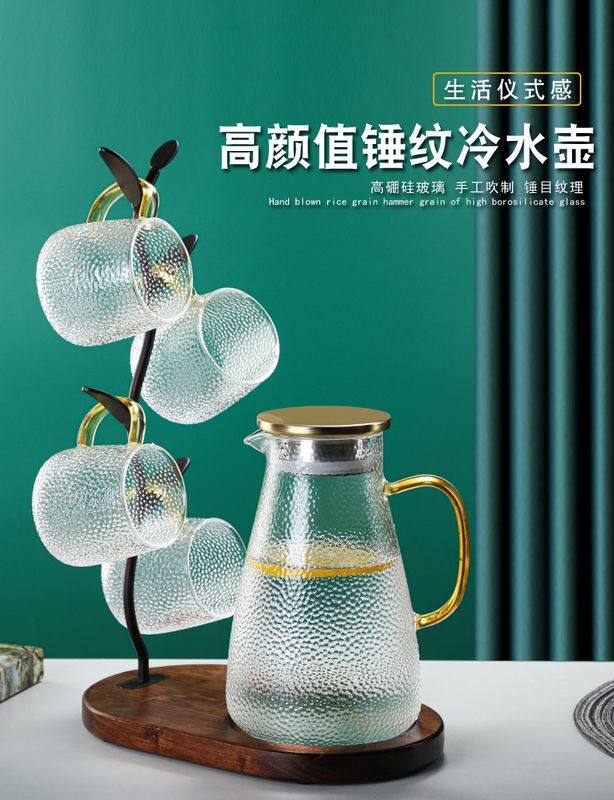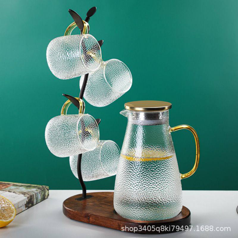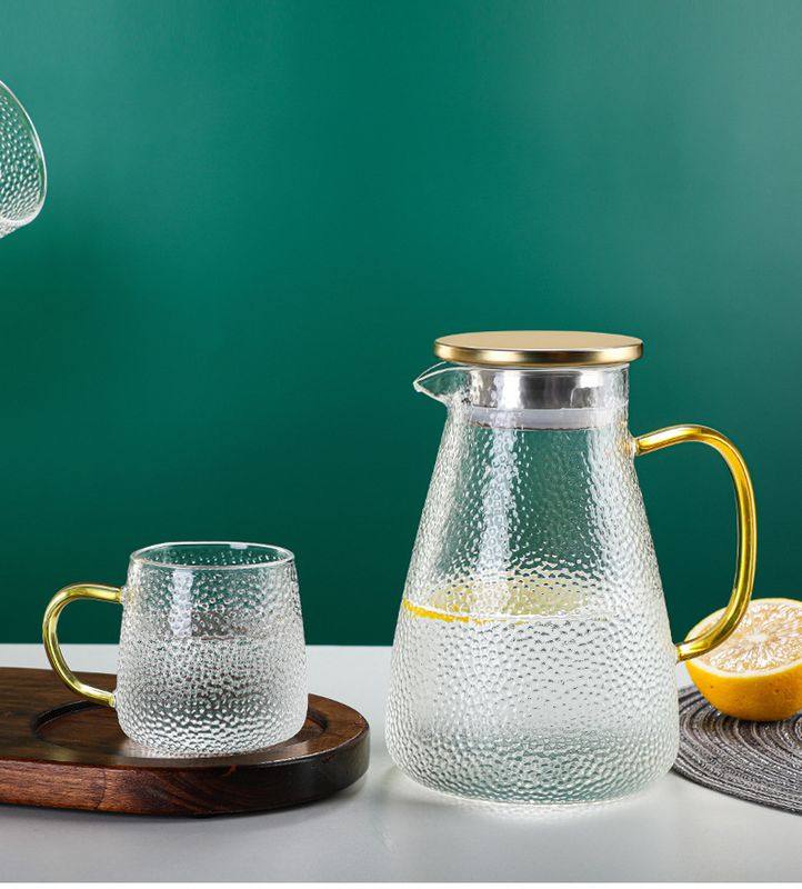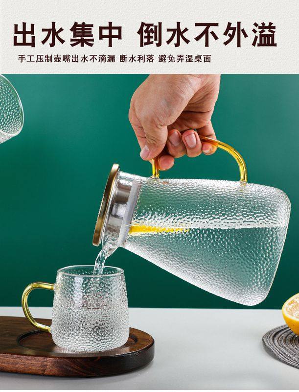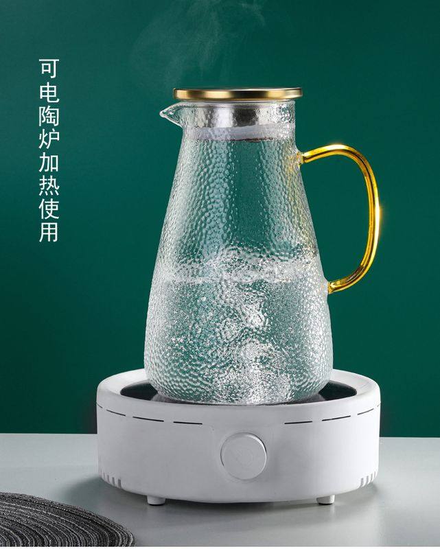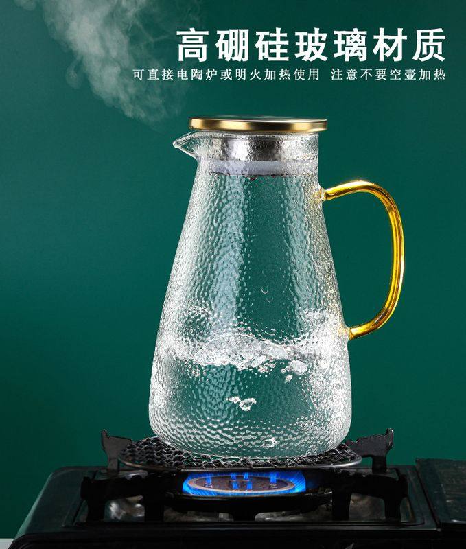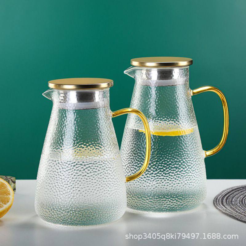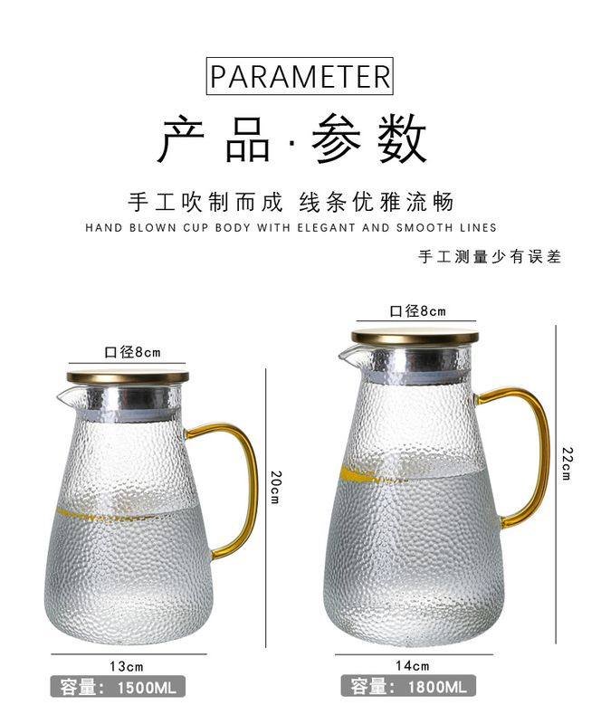 Heat-resistant glass kettle, cold kettle, tea kettle, high temperature resistance, large capacity, hammered gold lid, home hospitality water set
