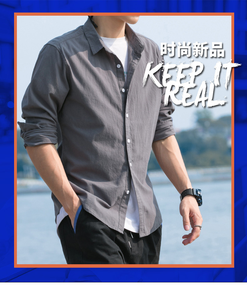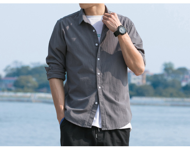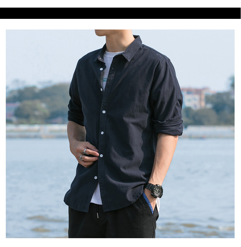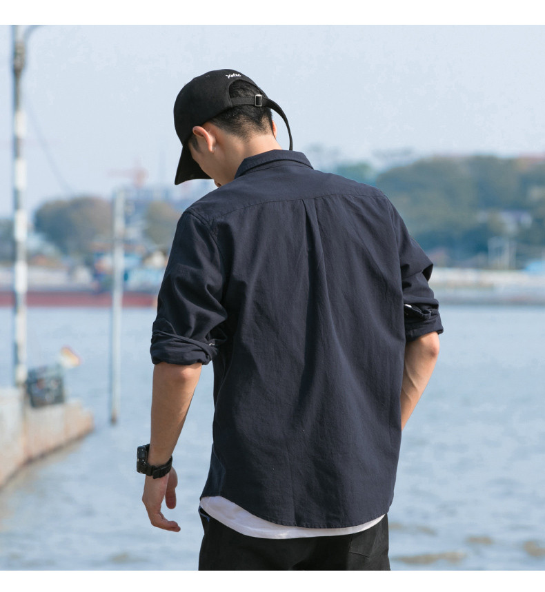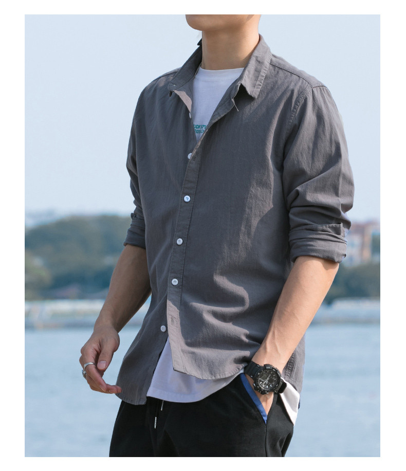 Shirt men's spring and autumn gray long-sleeved velvet Japanese pure cotton men's jacket loose casual outer wear work shirt size