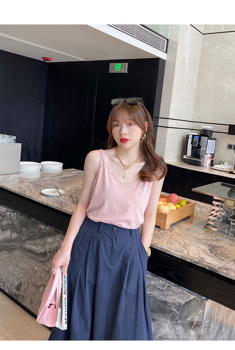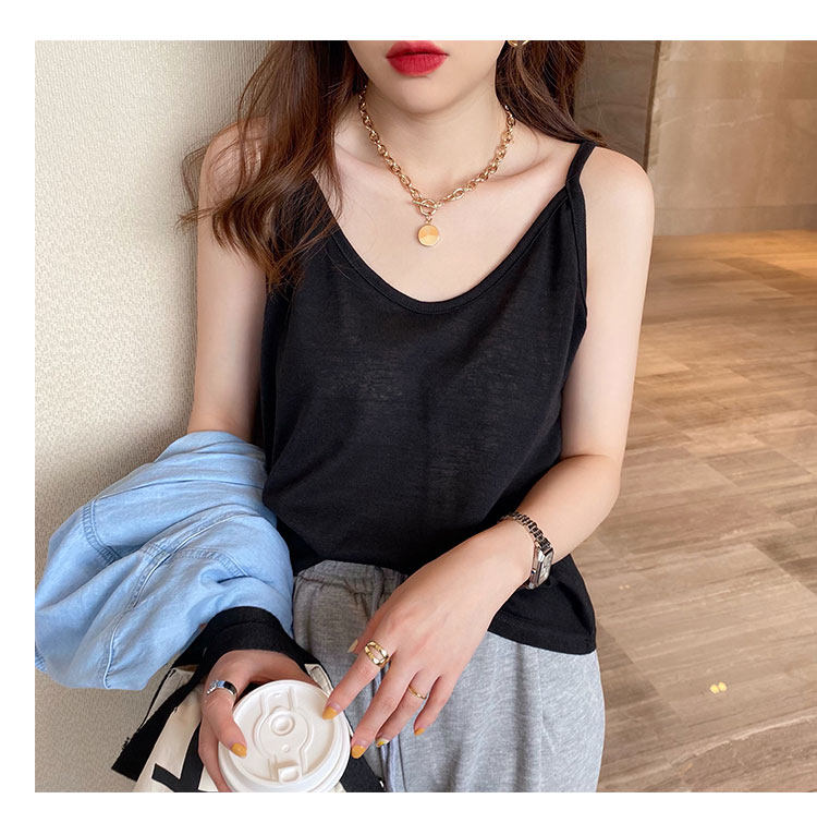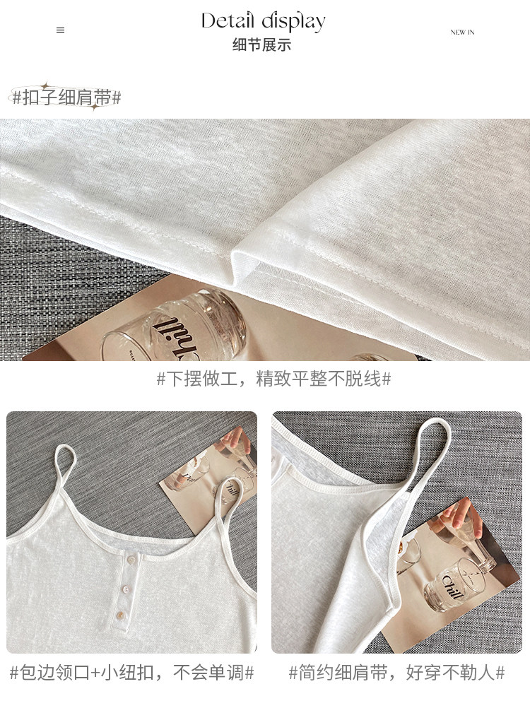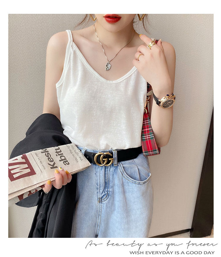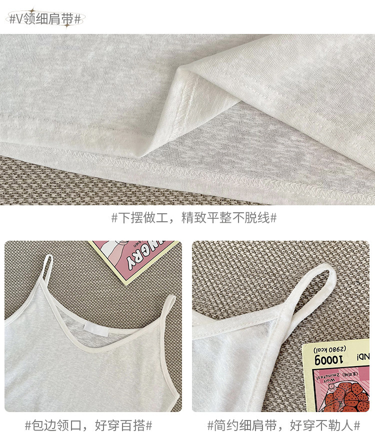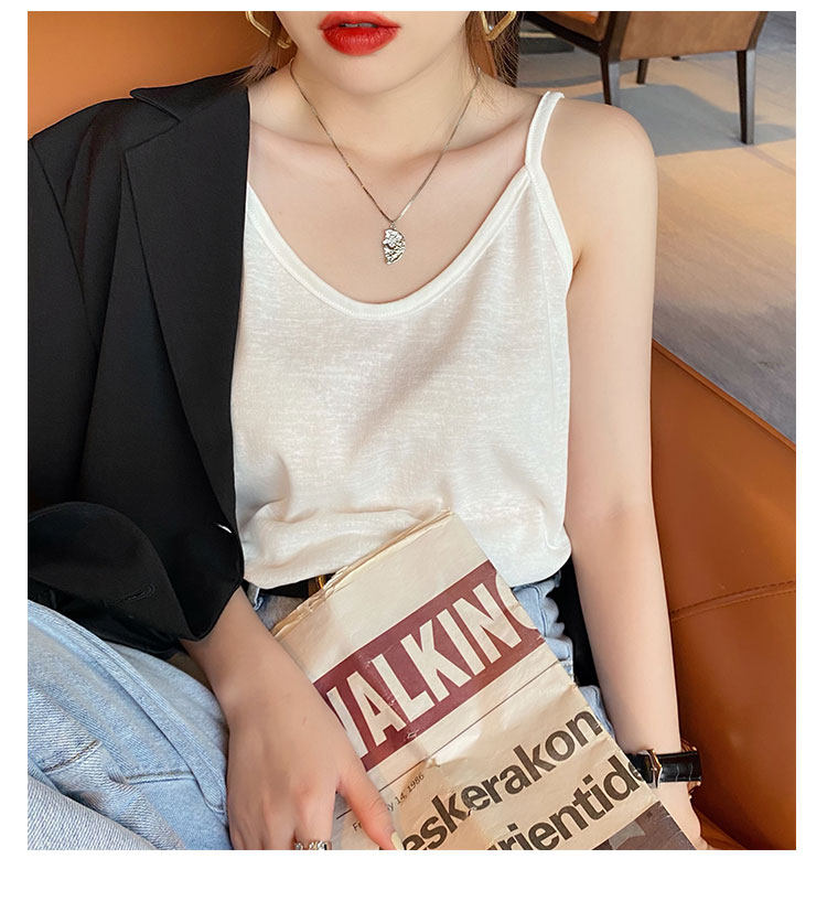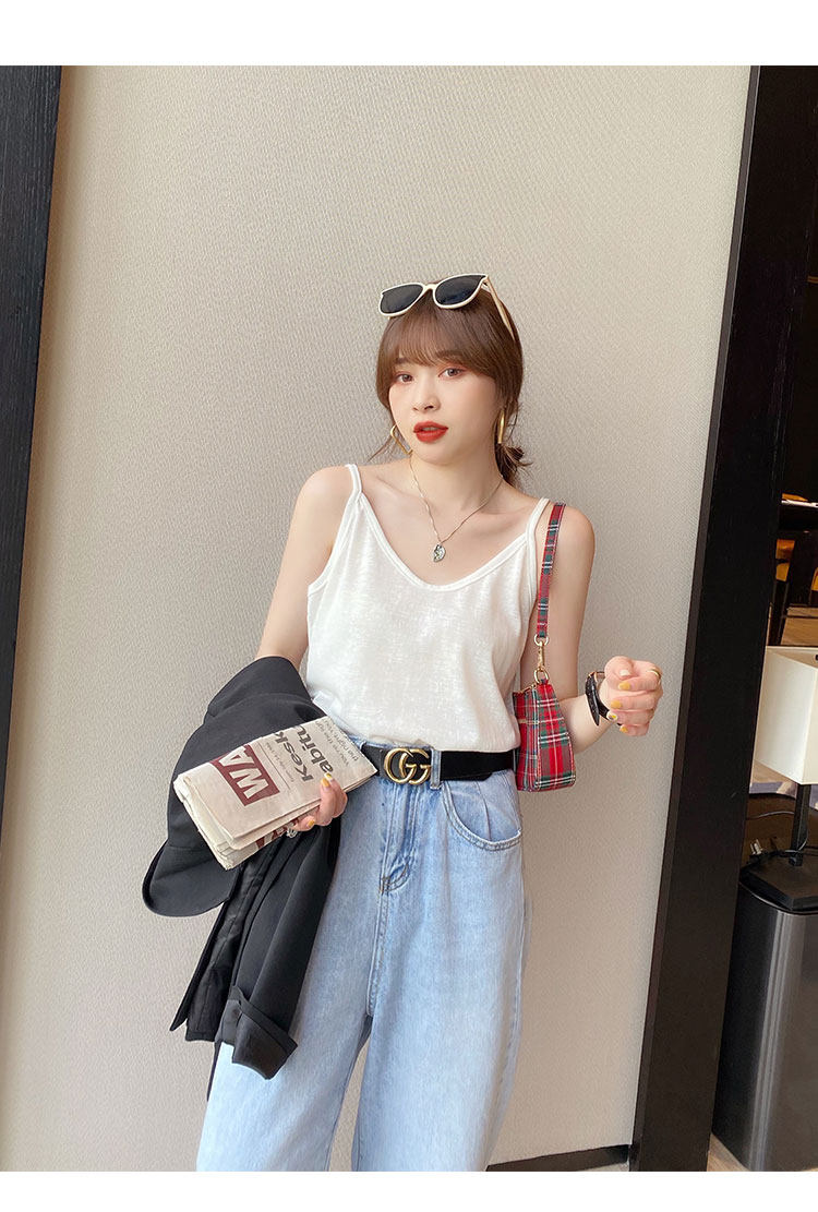 V-neck suspender women's summer inner wear ice silk vest outer cover side breasts black loose white cotton and linen top