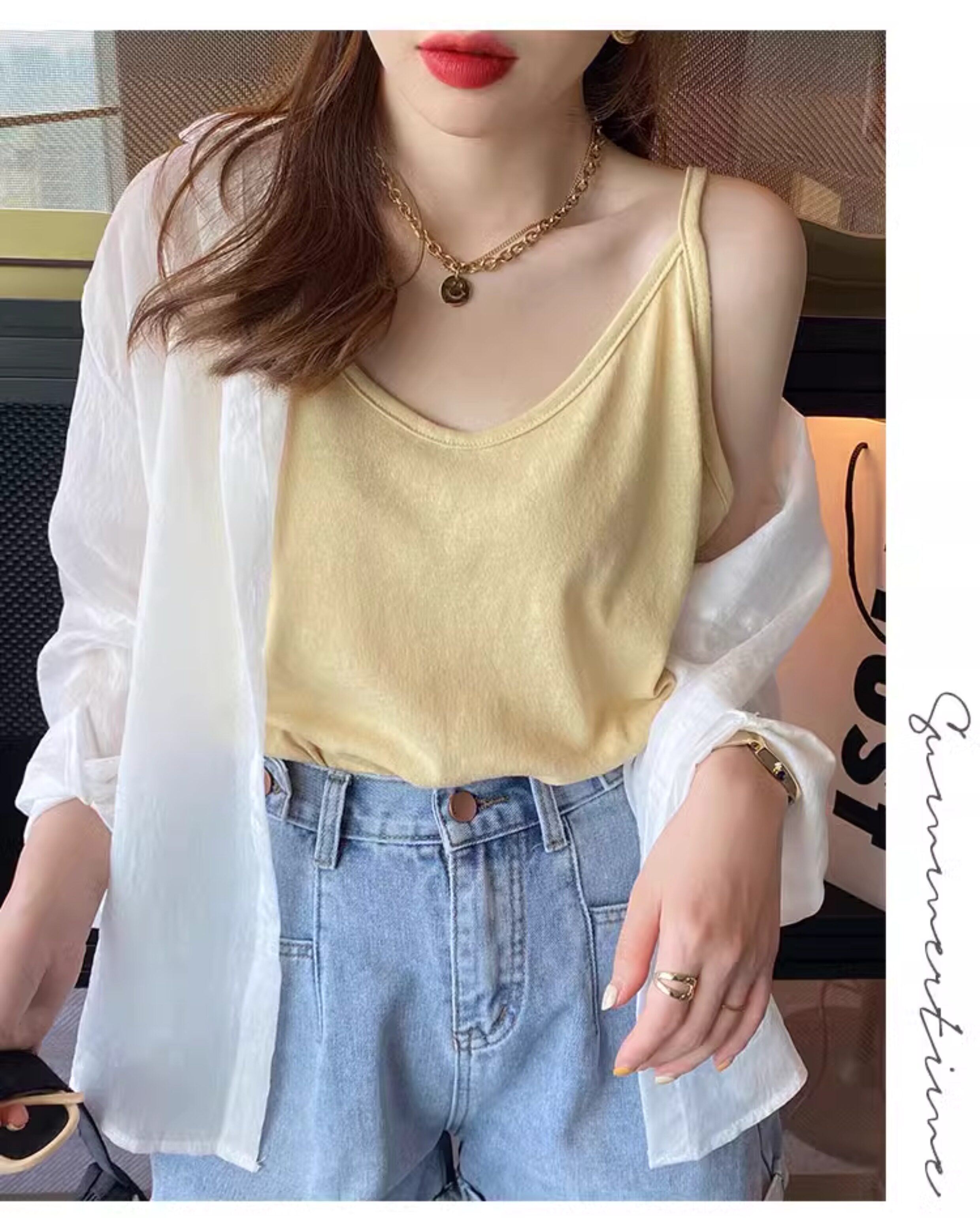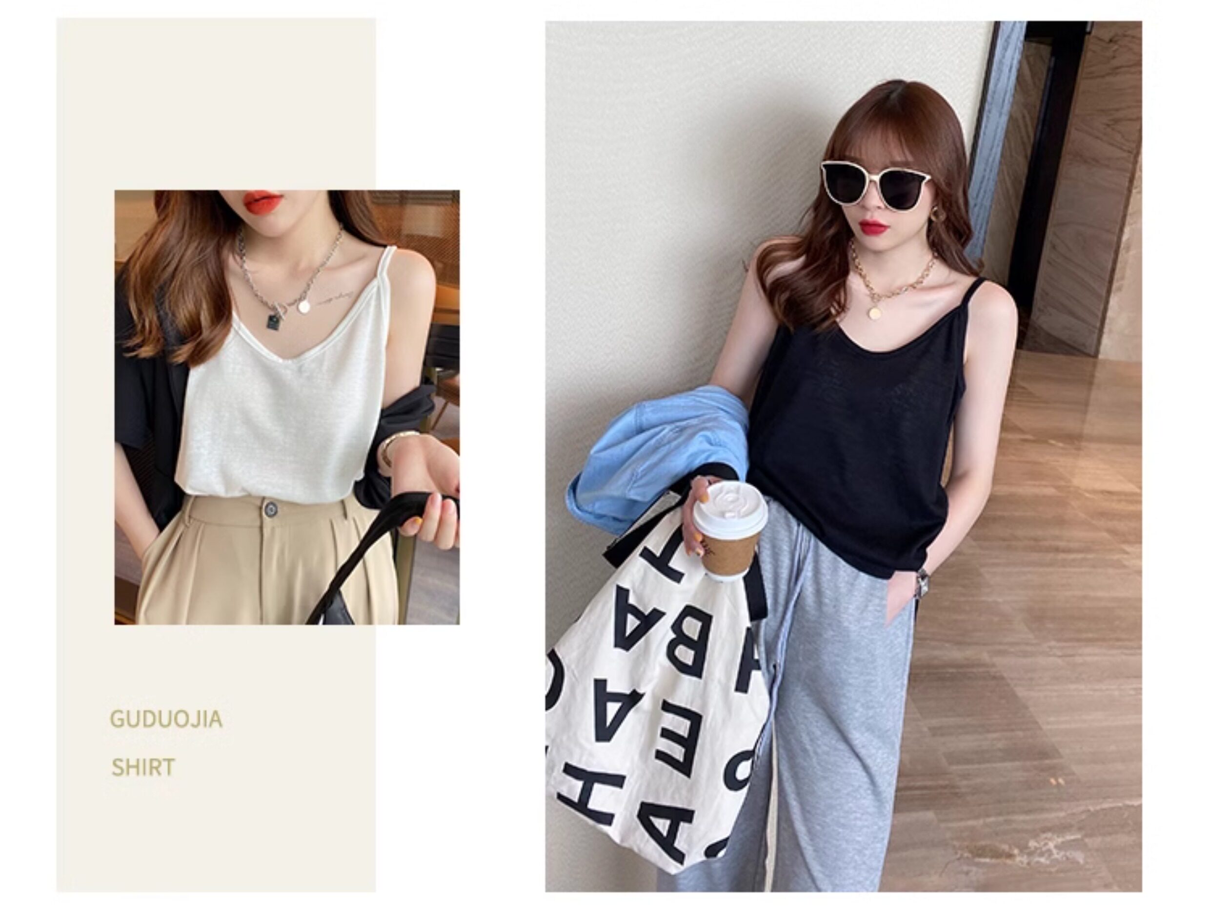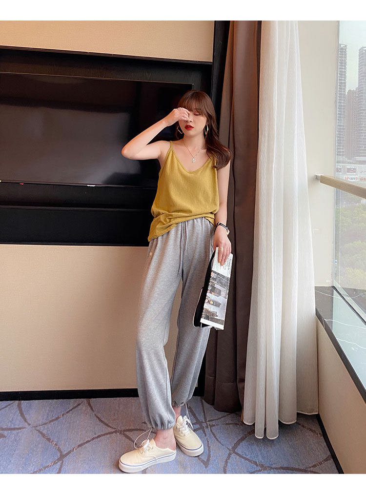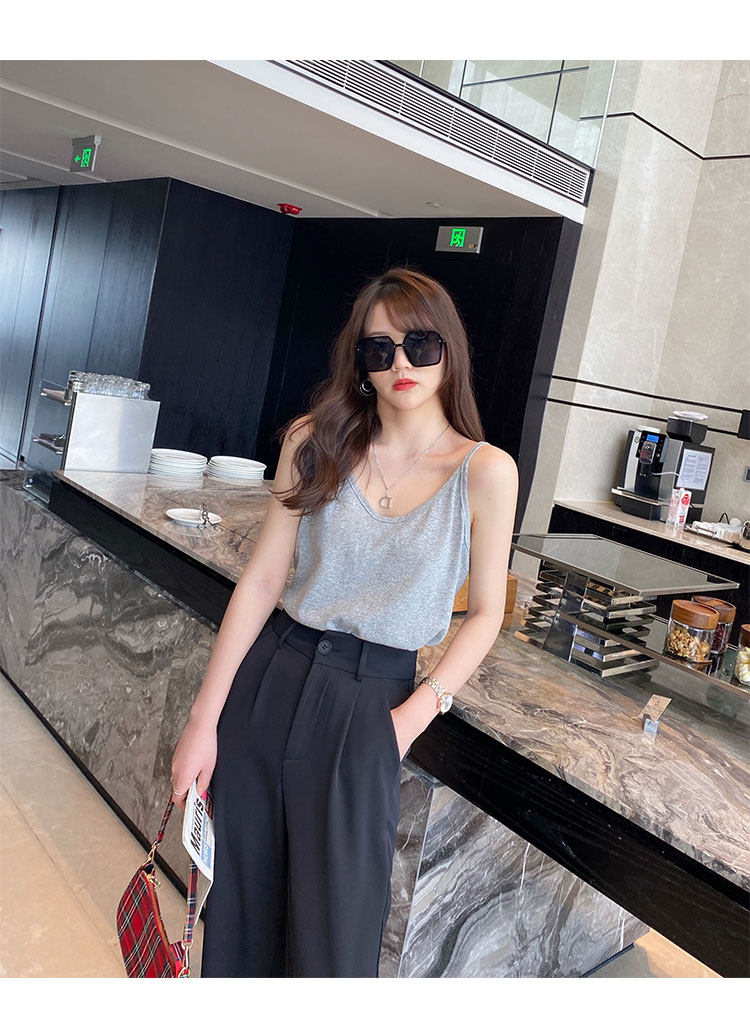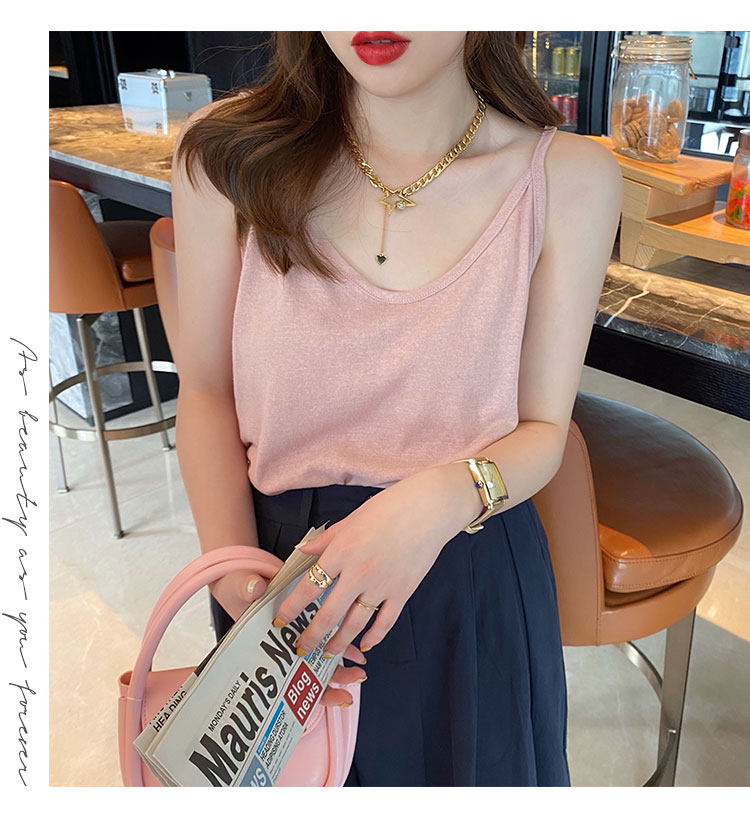 V-neck suspender women's summer inner wear ice silk vest outer cover side breasts black loose white cotton and linen top