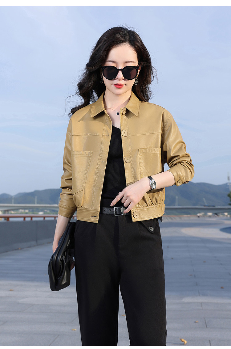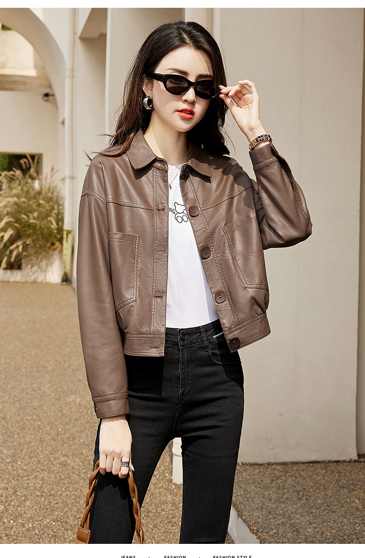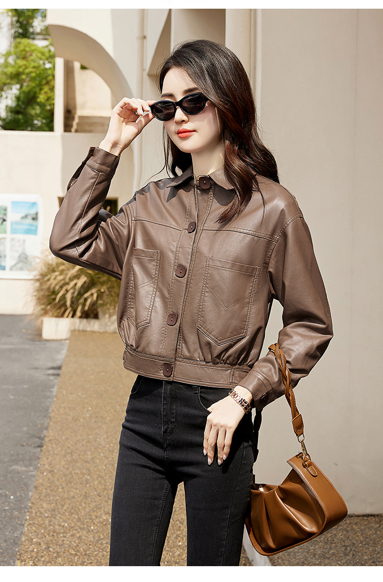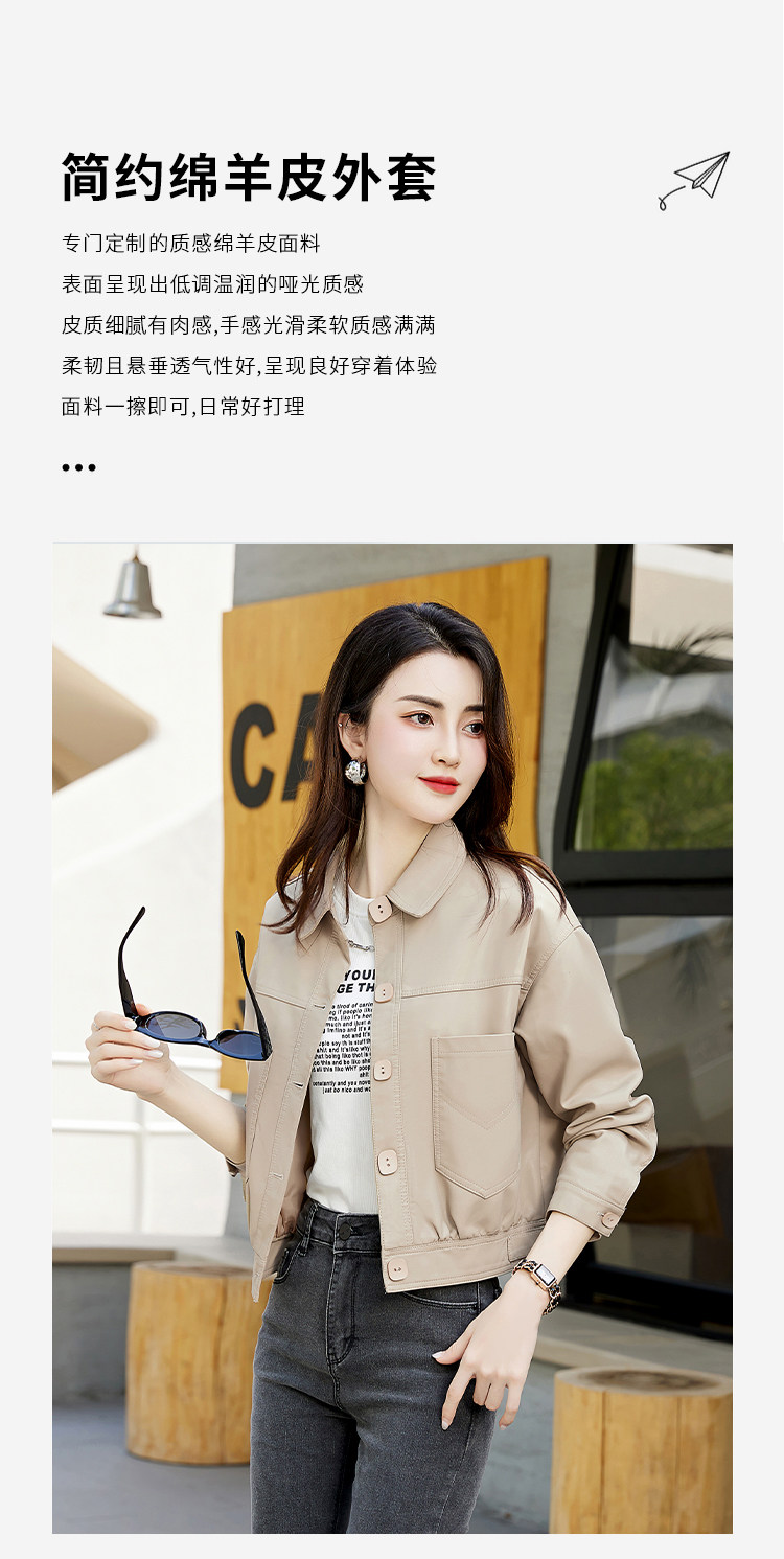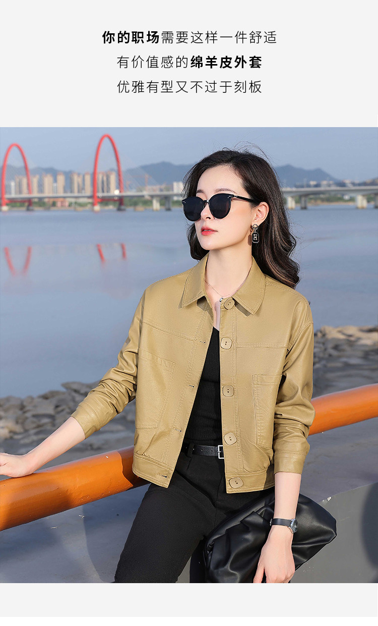 Leather jacket women's 2024 autumn new loose and popular maillard motorcycle short sheepskin jacket casual top