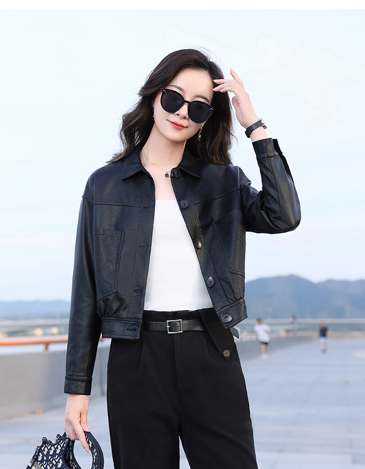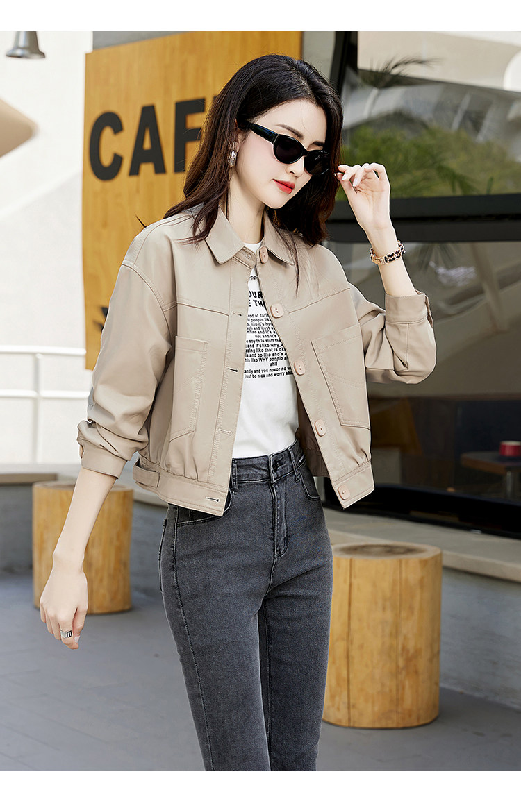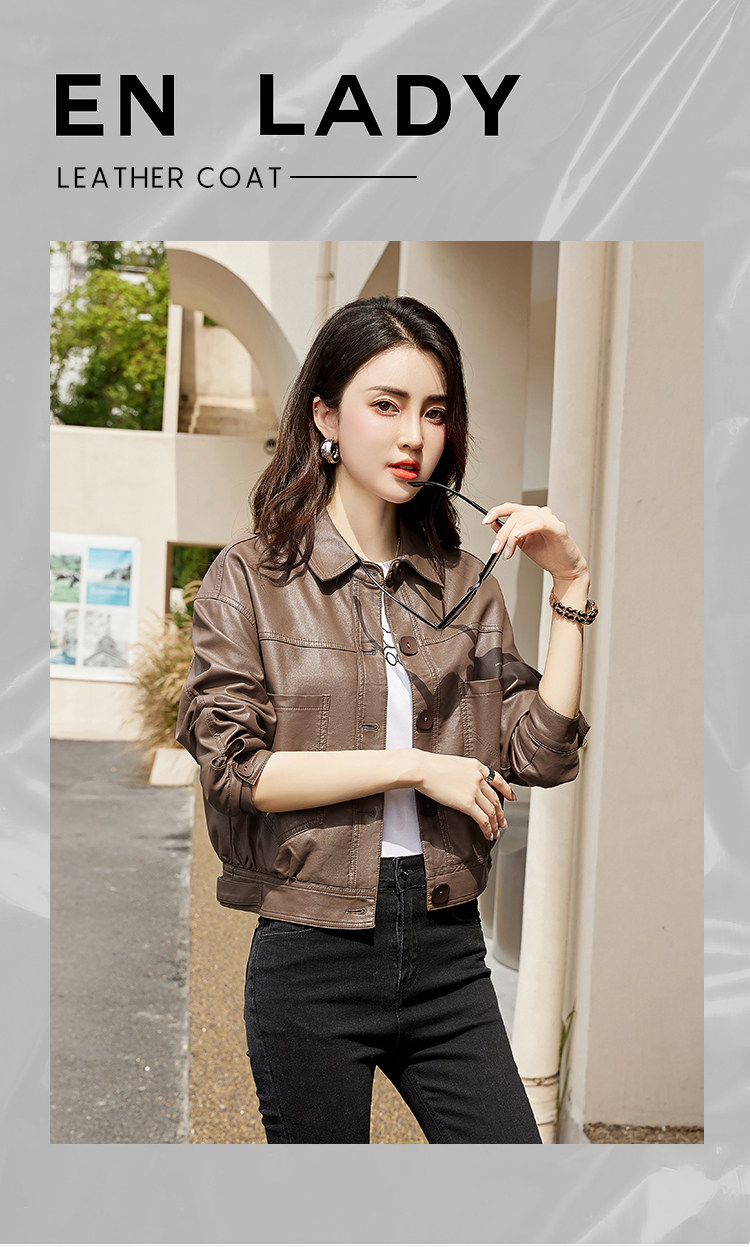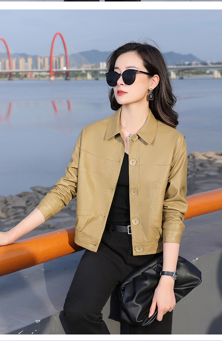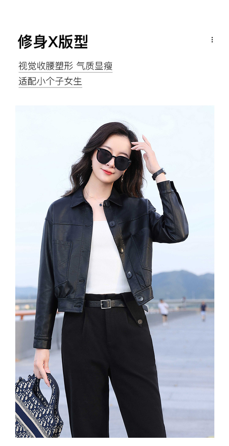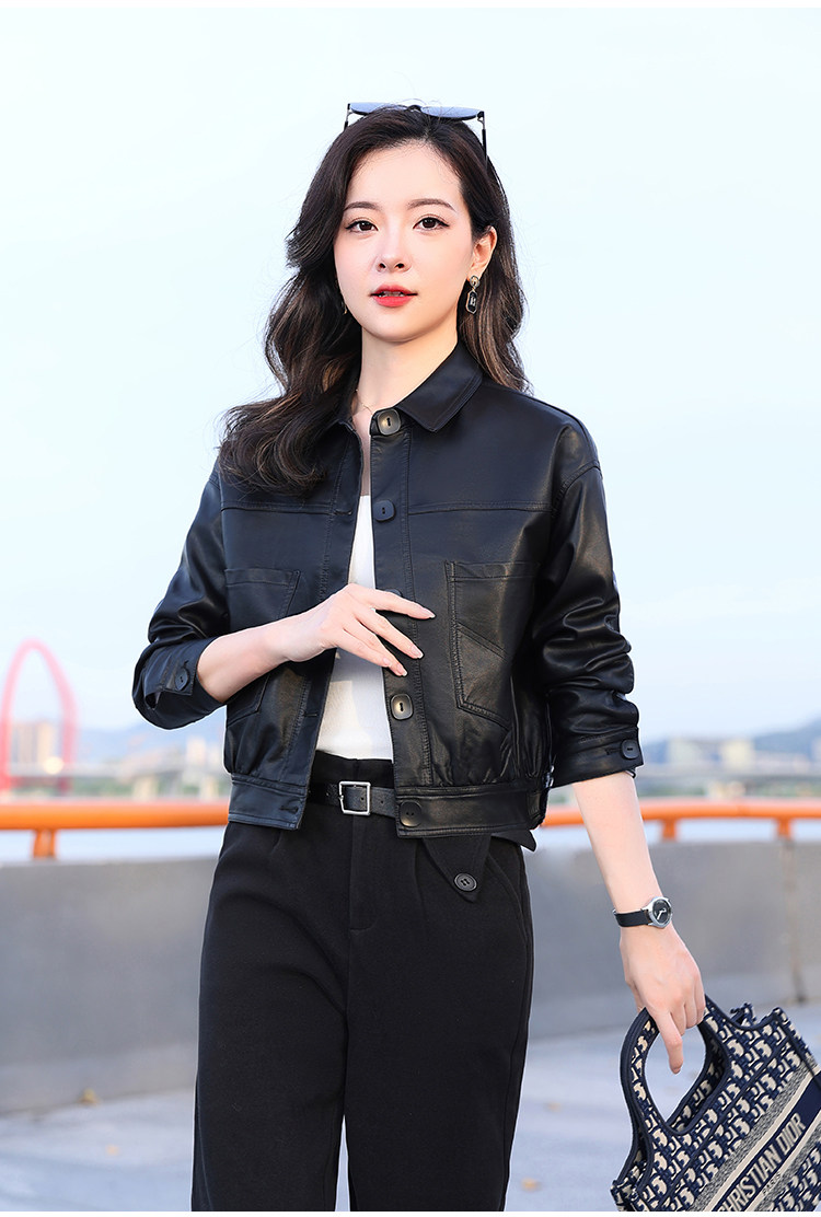 Leather jacket women's 2024 autumn new loose and popular maillard motorcycle short sheepskin jacket casual top